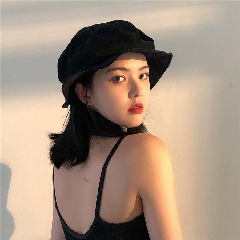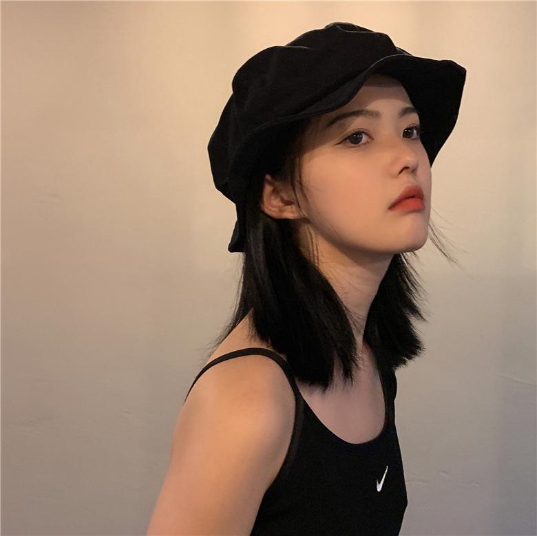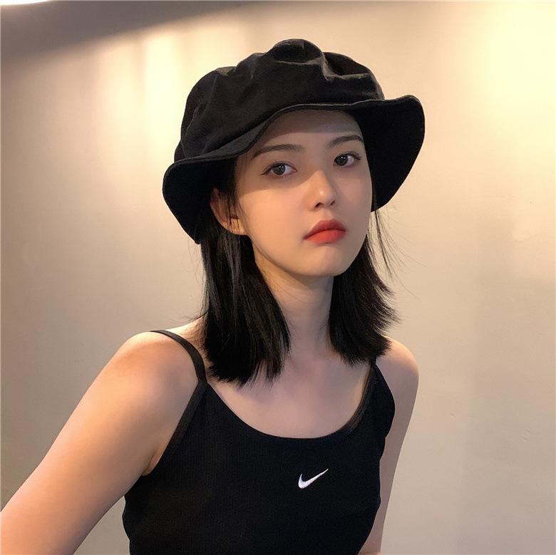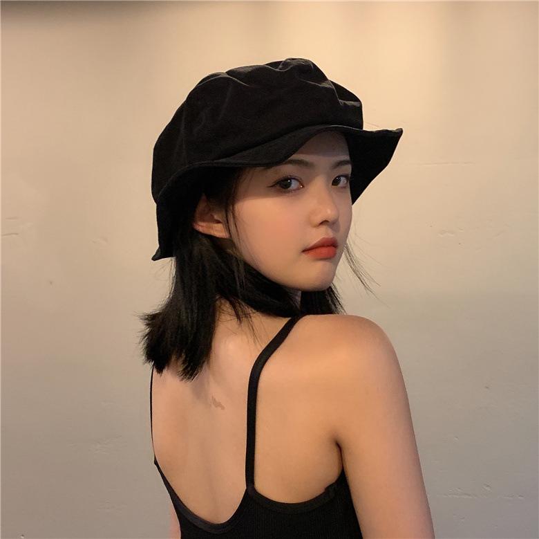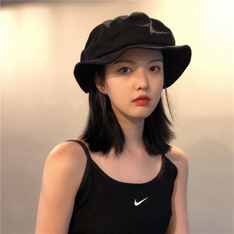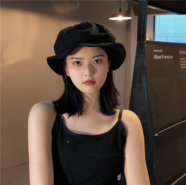 Sombrero Nube de Personalidad Nicho Primavera y Otoño Sombrero Japonés Negro Oscuro Sombrero de Pescador Pequeño que Muestra la Cara Sombrero de Medusa Sombrero Cubo Parasol