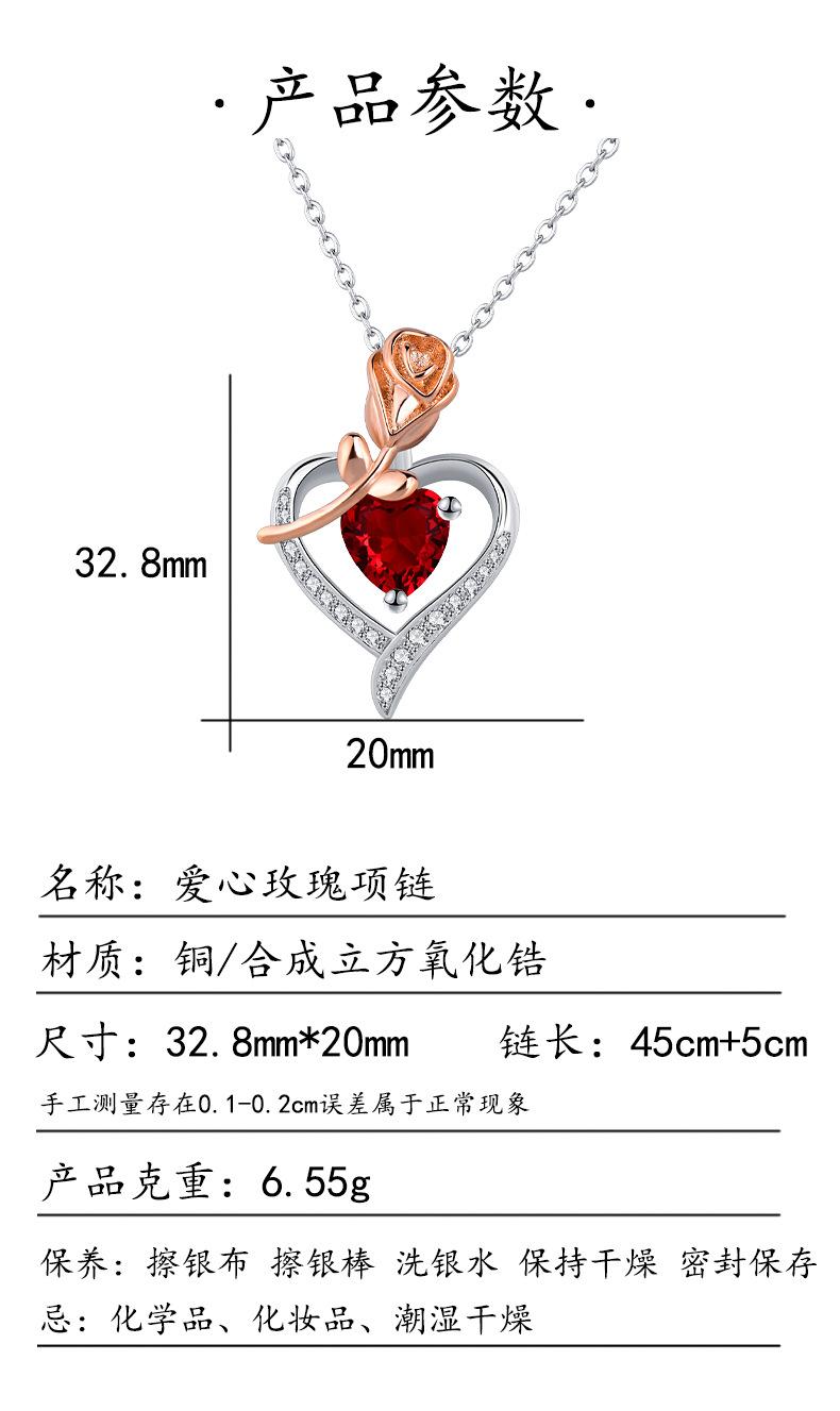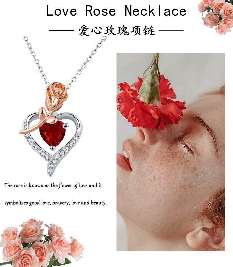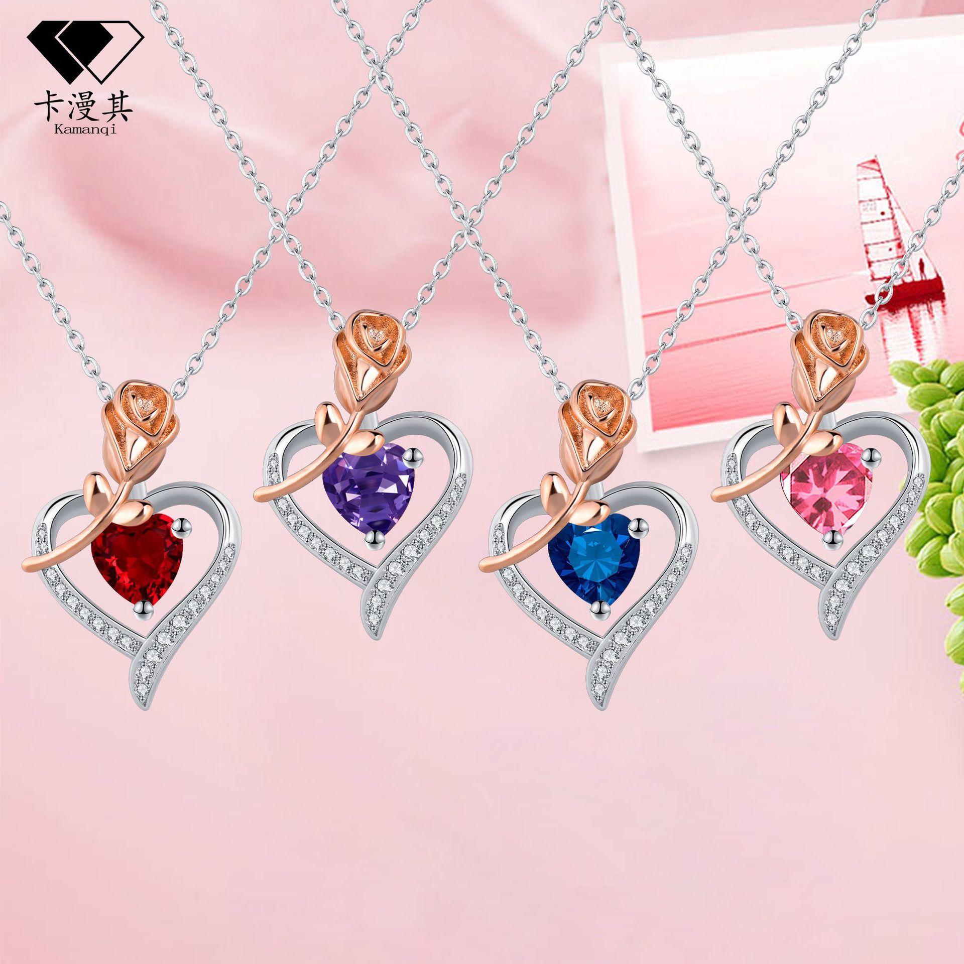Ka Manqi Comercio Electrónico Transfronterizo Collar Popular de Amazon Moda Rosa Amor Joyería Romántica Joyería para Mujeres