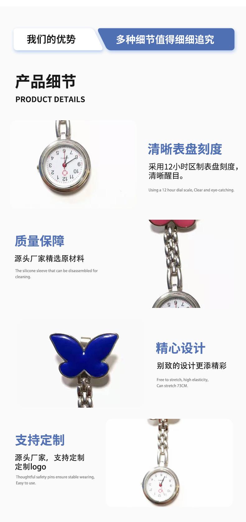 Compra Reloj de bolsillo para hombre y mujer, bonito reloj de pecho con diseño de mariposa para enfermera, reloj creativo para examen de estudiante, reloj de cuarzo de moda. al por mayor en Joom.pro