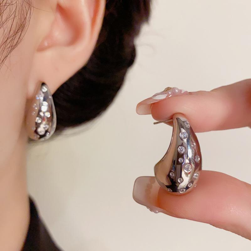 Gold-metal drop earrings (thick gold plating), silver-metal drop earrings (thick gold plating)