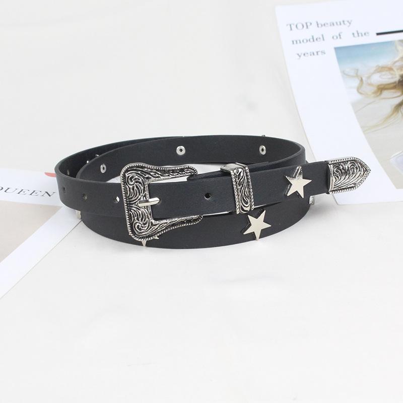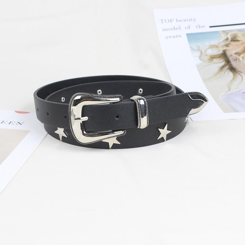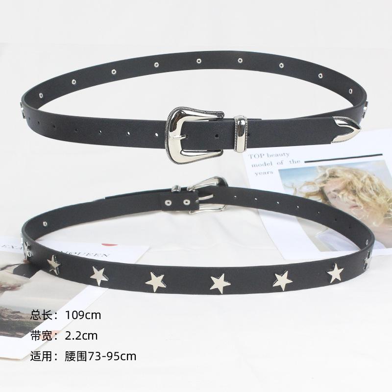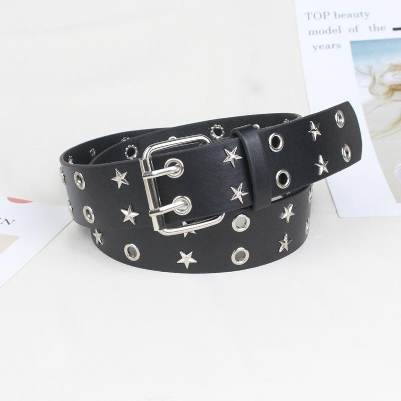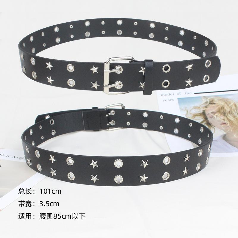 Cinturón con remaches de estrella de cinco puntas, estilo europeo y americano, con ojales de metal, para hombres y mujeres, con herrajes punk, para vaqueros.