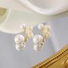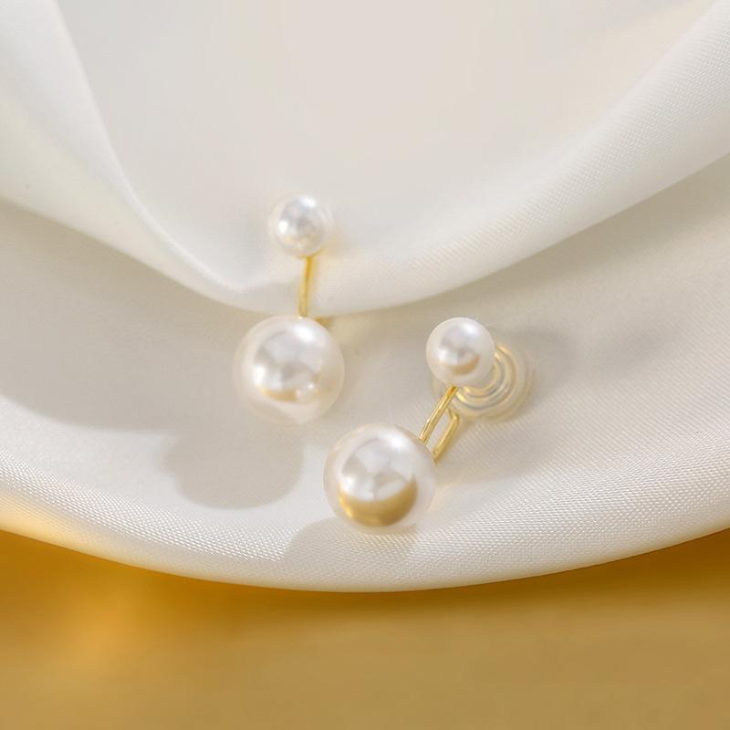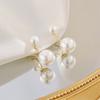 Clip para oreja de perlas grandes y pequeñas para mujer, diseño de nicho de alta gama, aretes sin perforación tipo mosquitero, aretes elegantes retro franceses