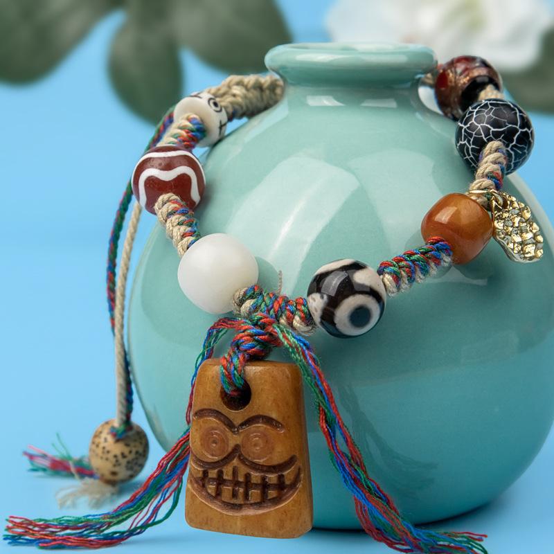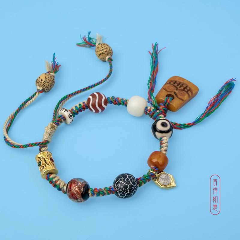 Xizang cuentas de cuerda de algodón frotada a mano colgante de ágata colgante estilo nacional pulseras tejidas a mano para hombres y mujeres al por mayor