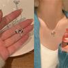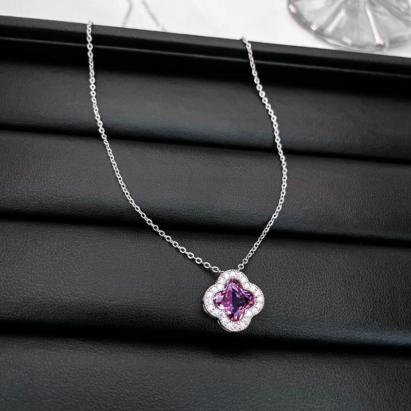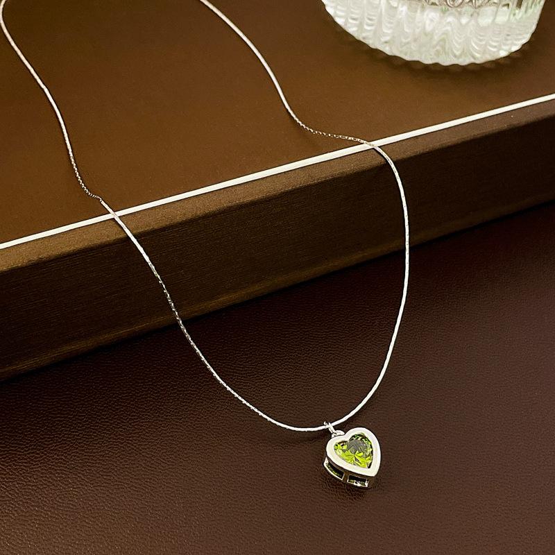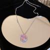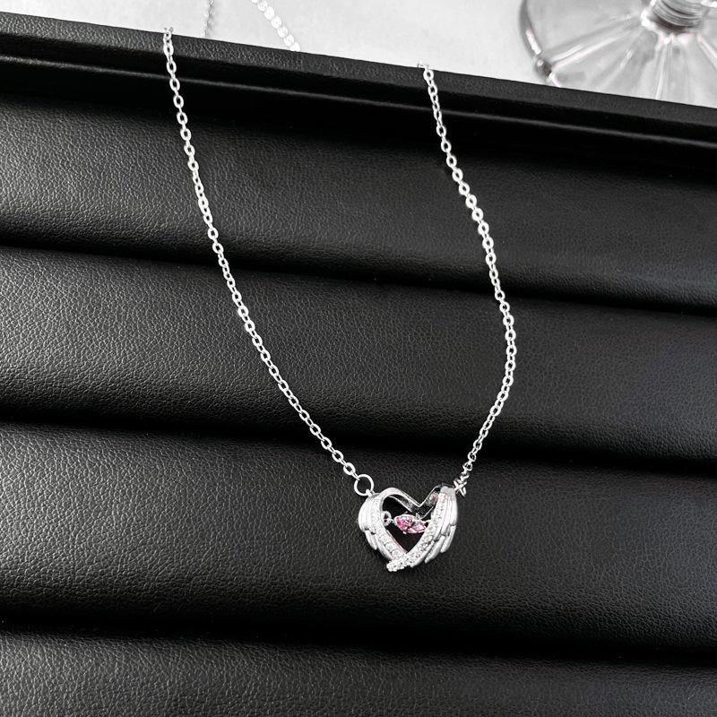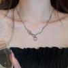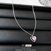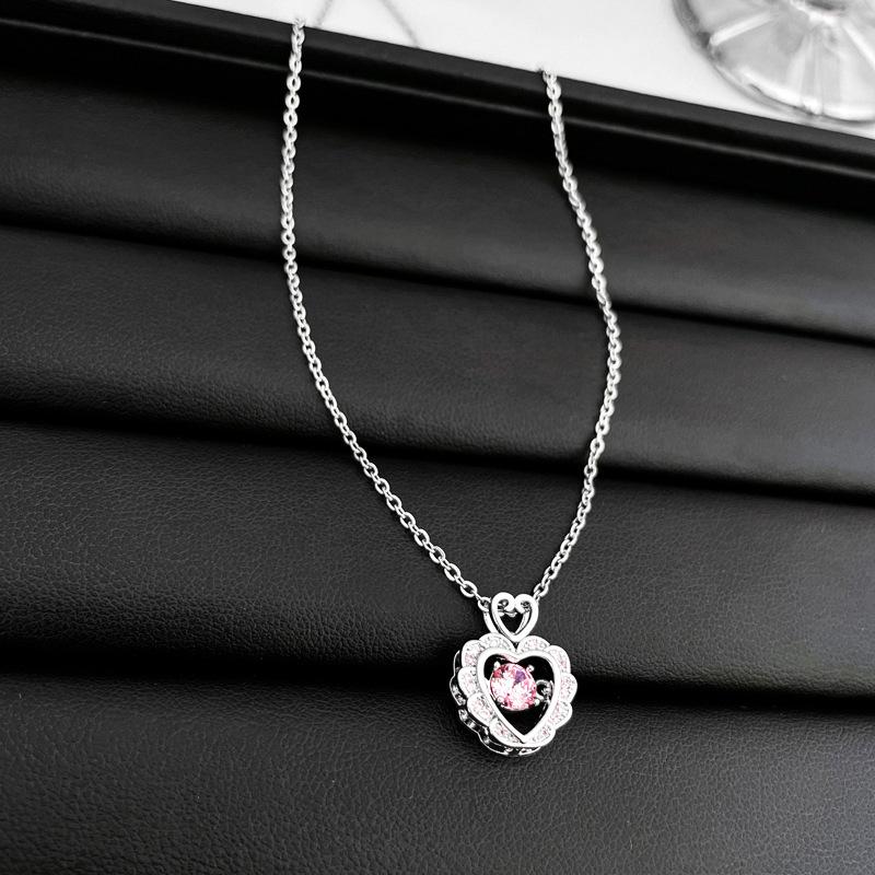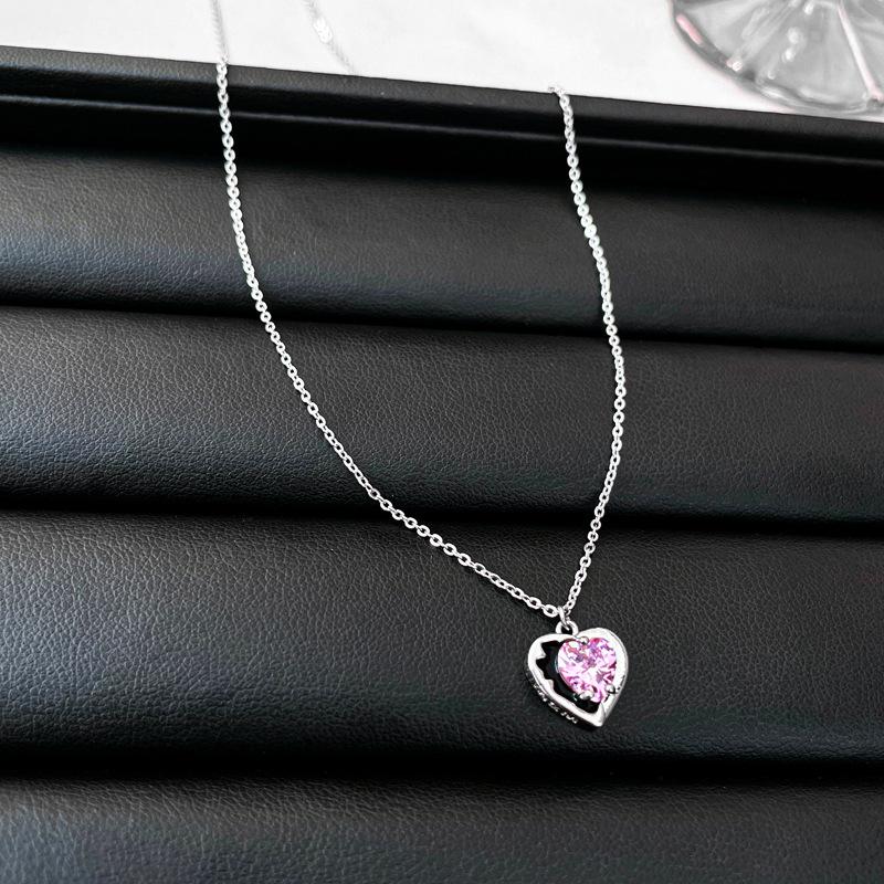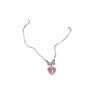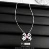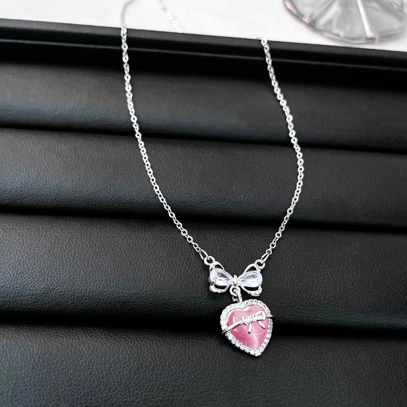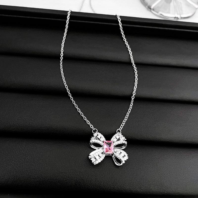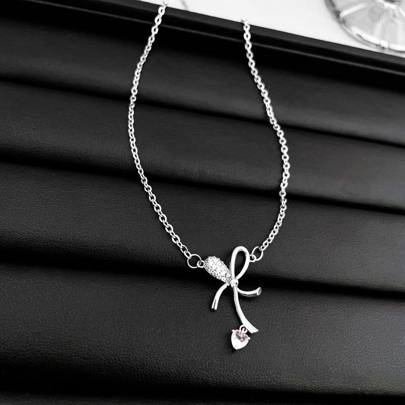 Collar de amor con lazo de circonita rosa, cadena de clavícula de alta gama de nicho de lujo de Corea del Sur, collar dulce al por mayor para mujeres