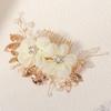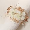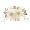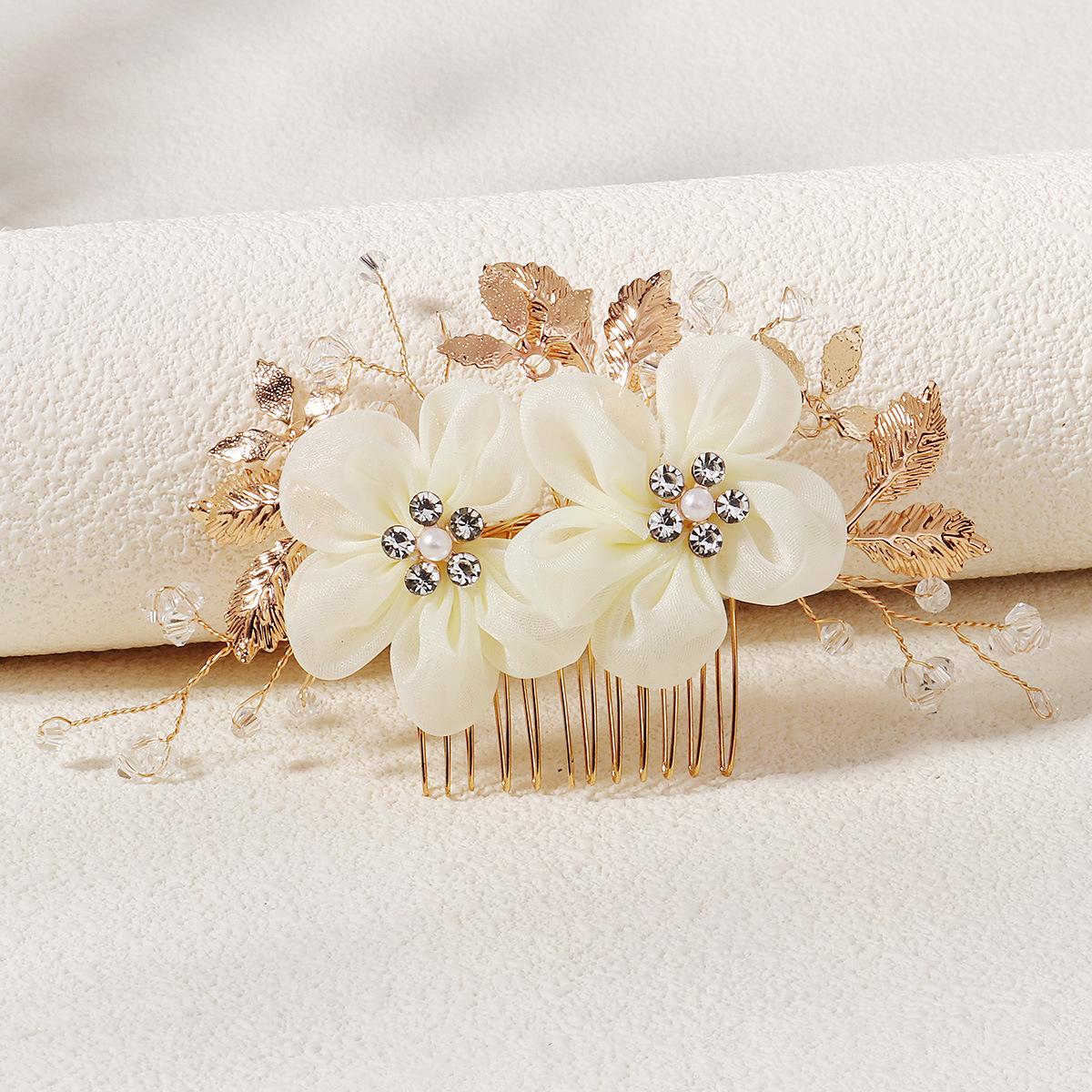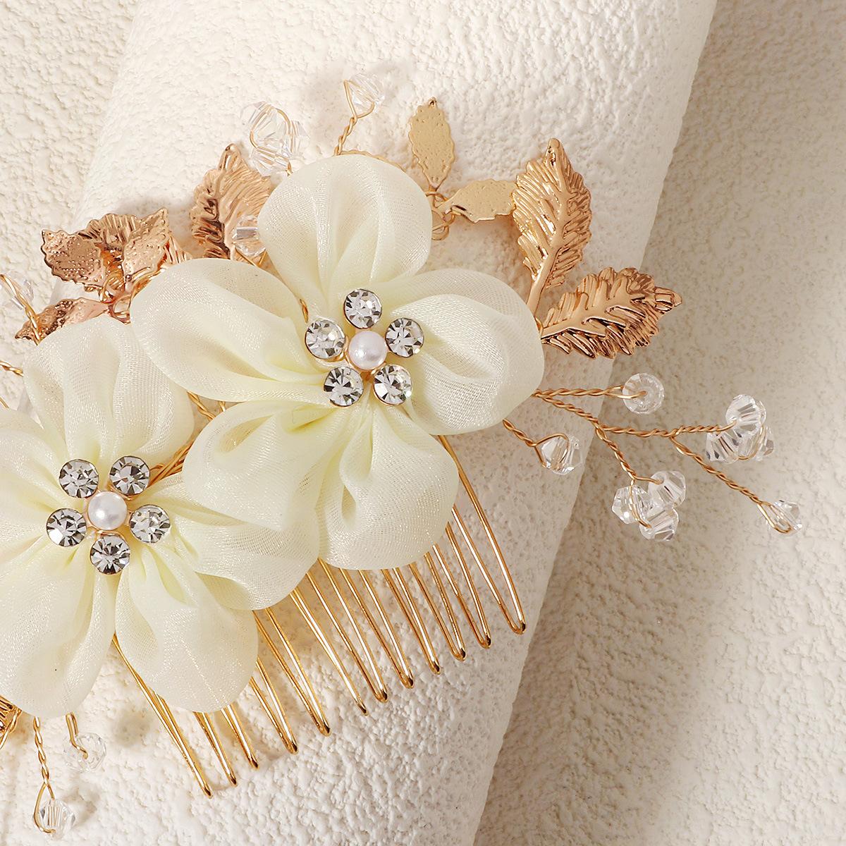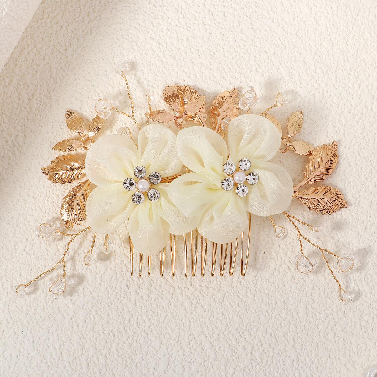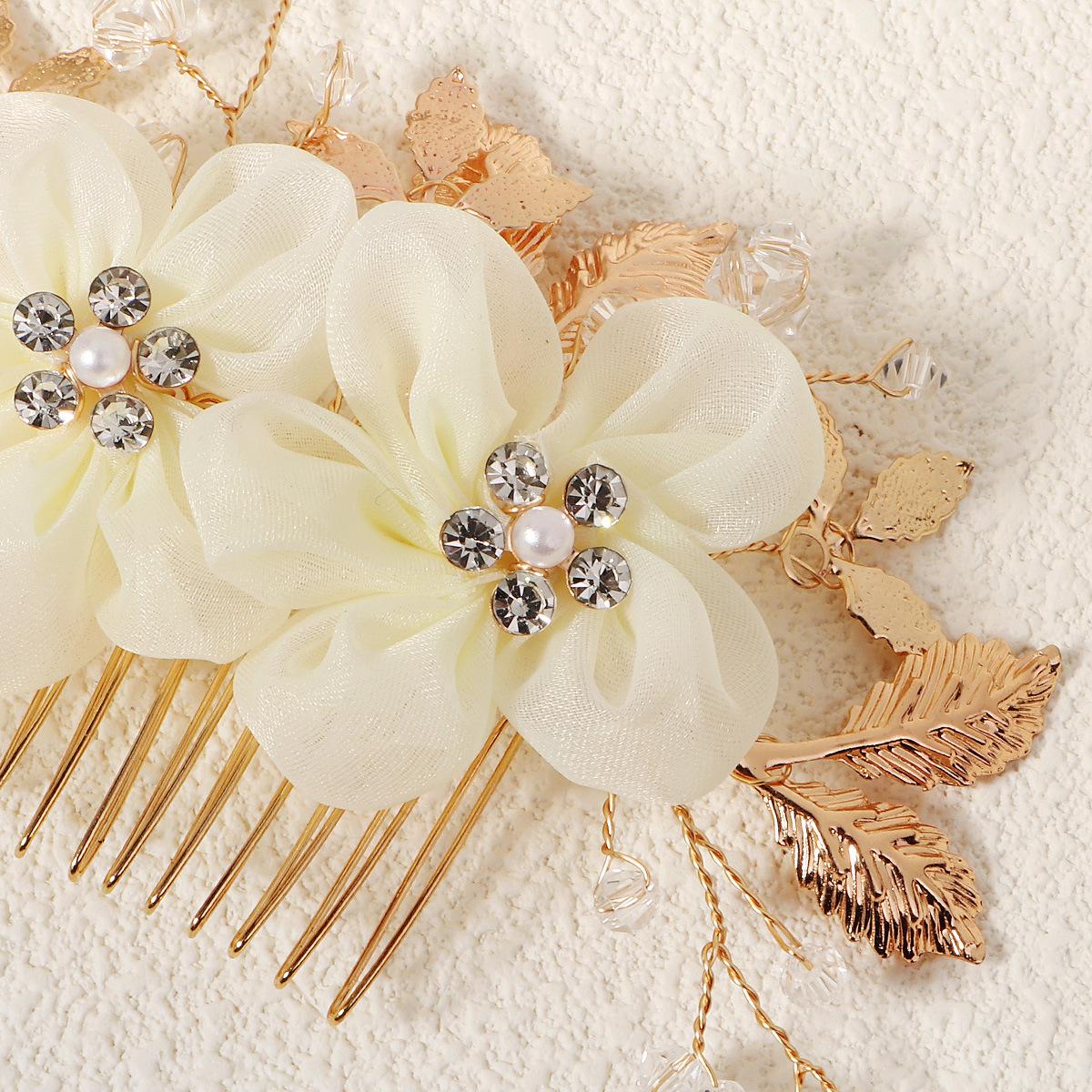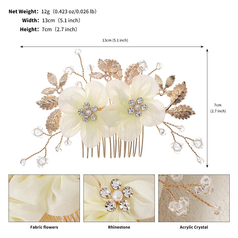 Fabric Flower Golden Leaf Alloy Copper Wire Winding Crystal Handmade Beaded Hair Comb