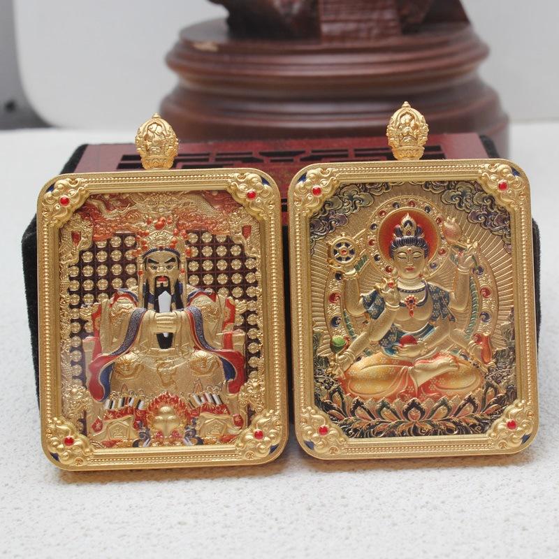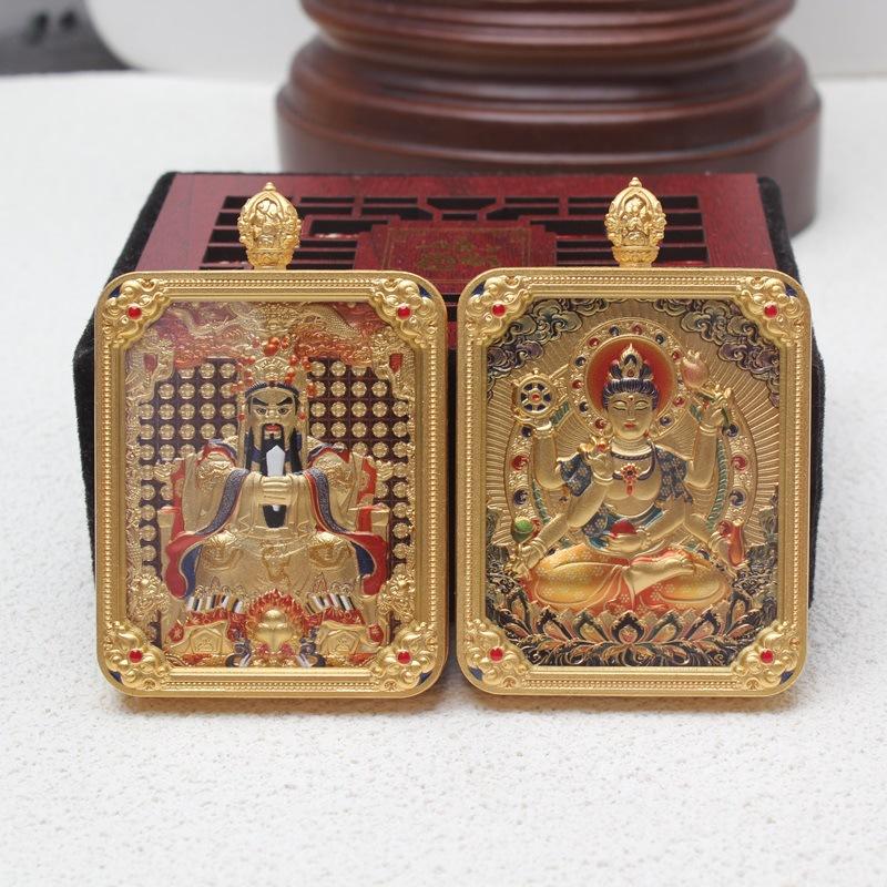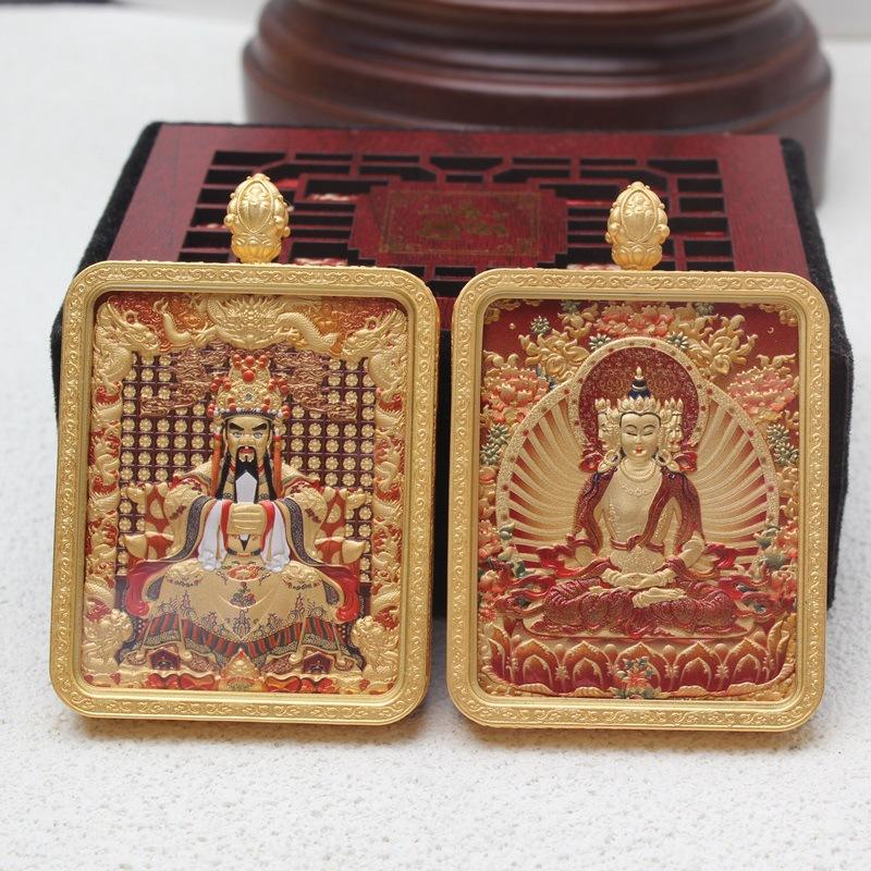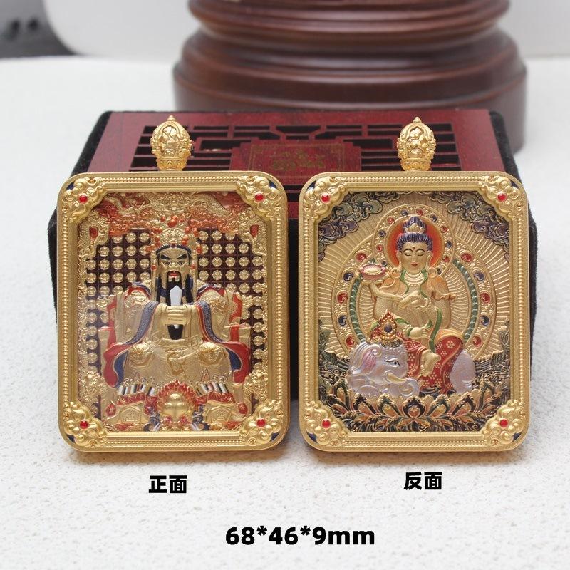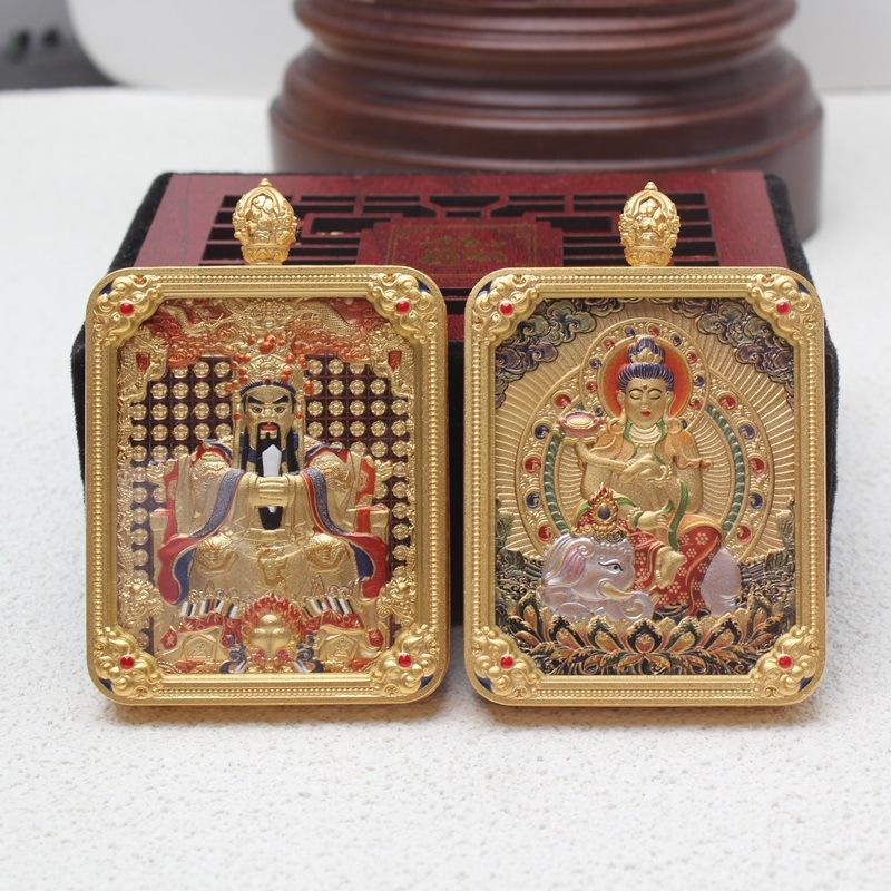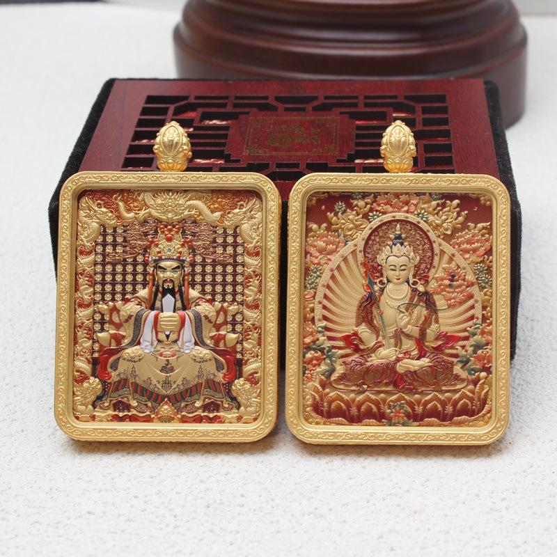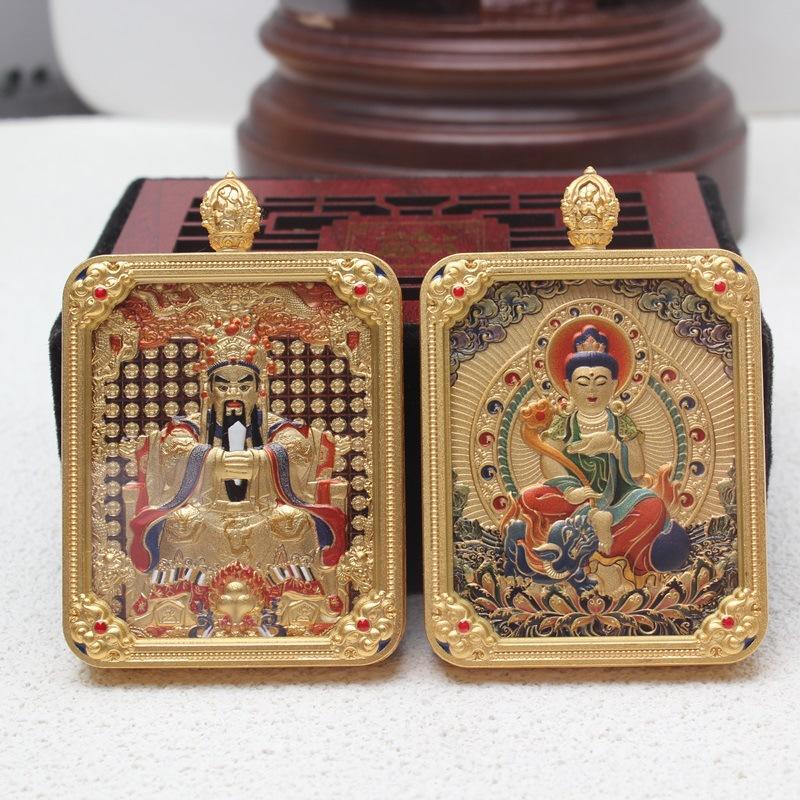 Colgante Xizang Thangka Montaña Wutai Cinco Maestros Ocho Deidades Patronas Latón Chapado en Oro Colgante Cinco Maestros Benmingfo