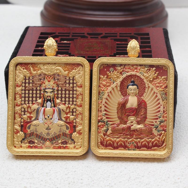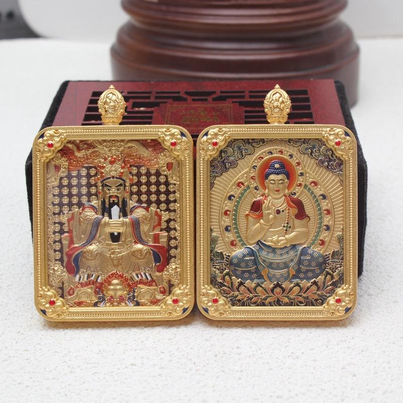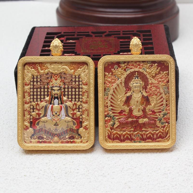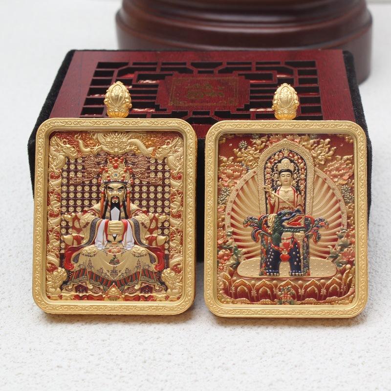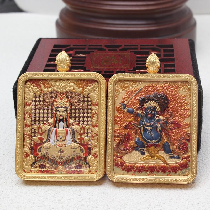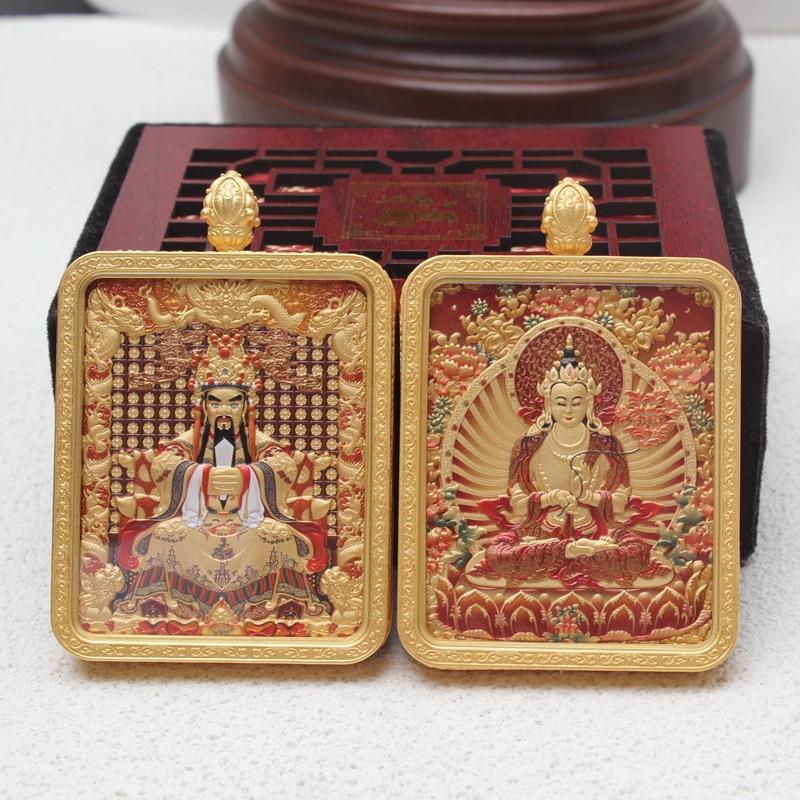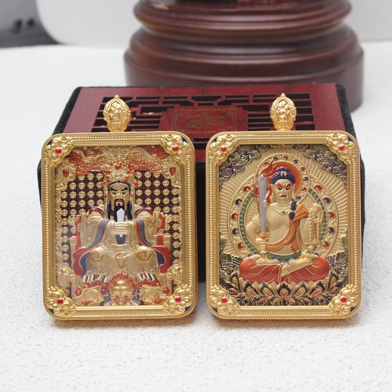 Colgante Xizang Thangka Montaña Wutai Cinco Maestros Ocho Deidades Patronas Latón Chapado en Oro Colgante Cinco Maestros Benmingfo