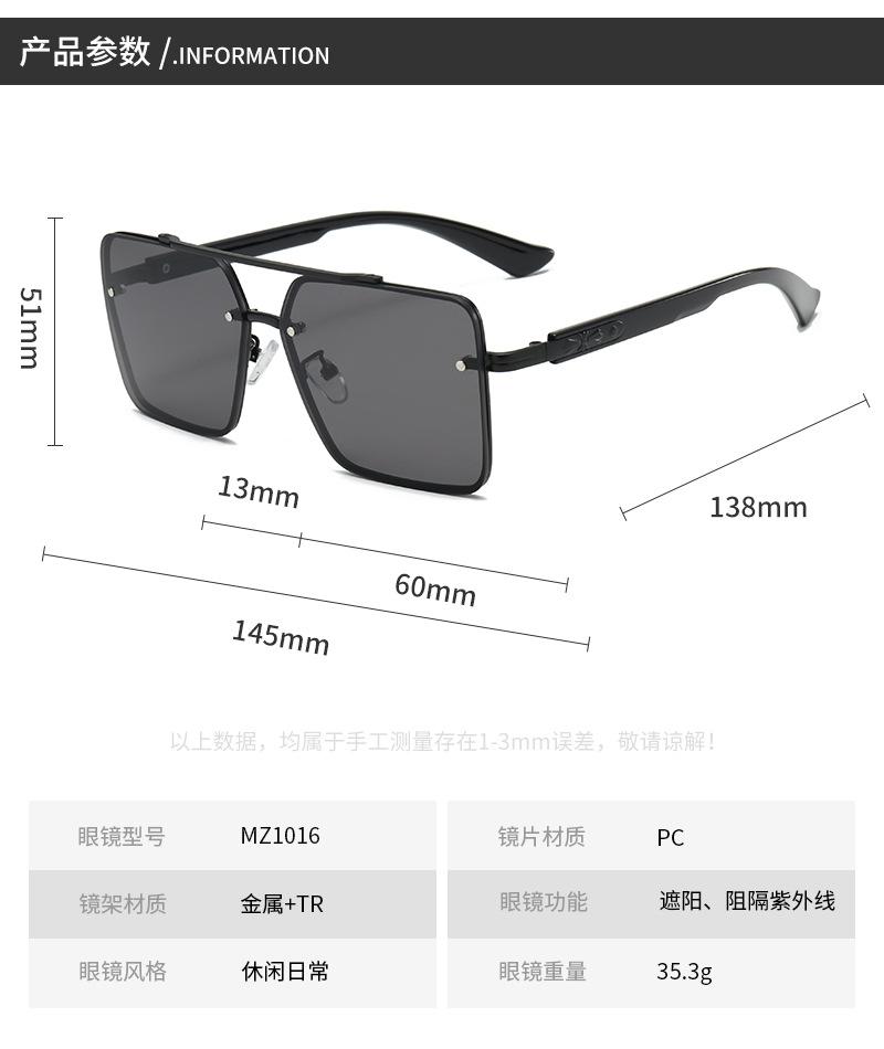 Gafas de sol de metal de doble haz, cuadradas, con montura grande y alta sensibilidad, para hombre, para conducir en el extranjero, 2024