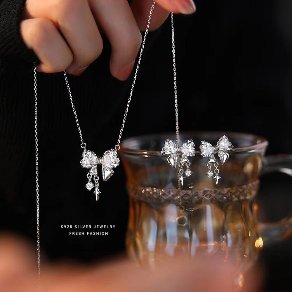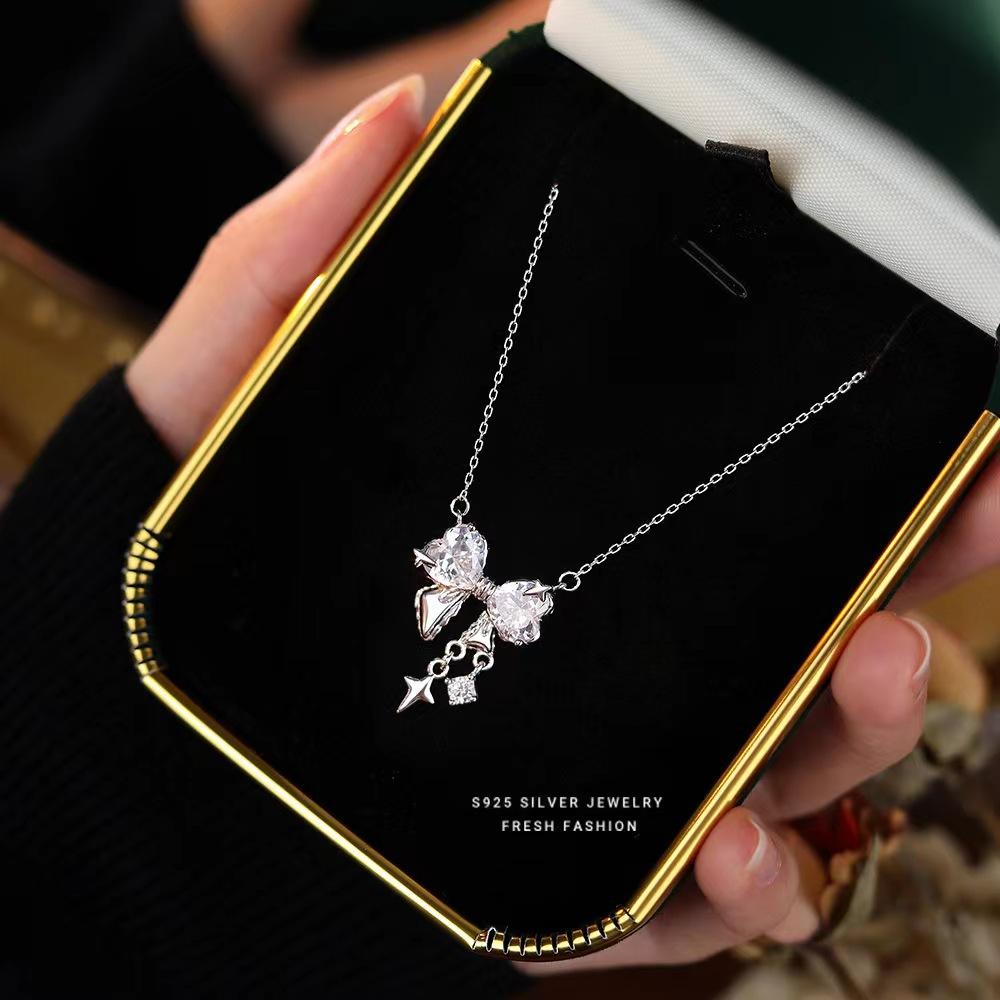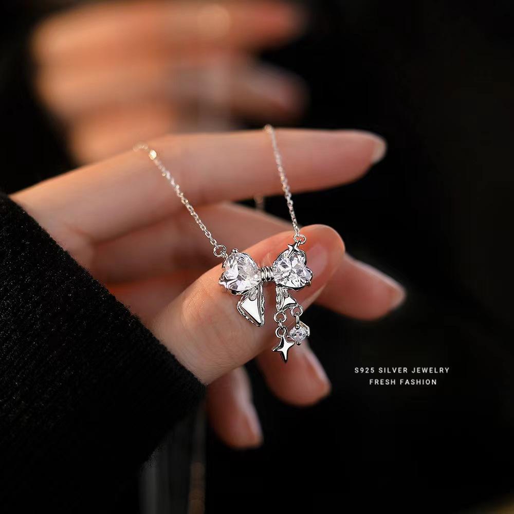 Collar con colgante de lazo dulce de plata 925, diseño de nicho de lujo ligero, cadena de clavícula, colgante pequeño de alta calidad