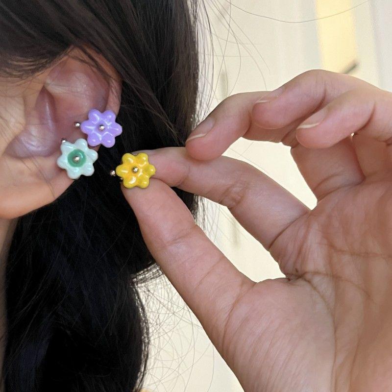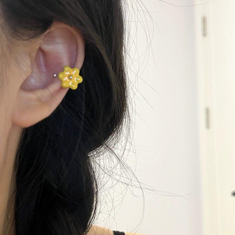 Verano colorido dopamina flor pequeña gota esmalte clip para cartílago de la oreja lindo clip para la oreja sin perforación aretes nicho