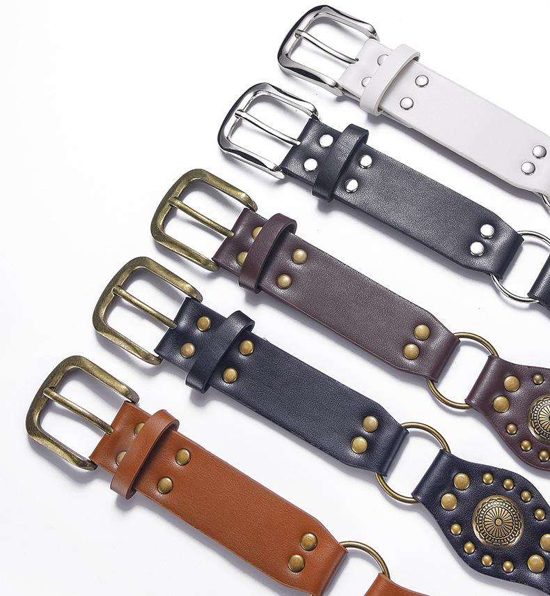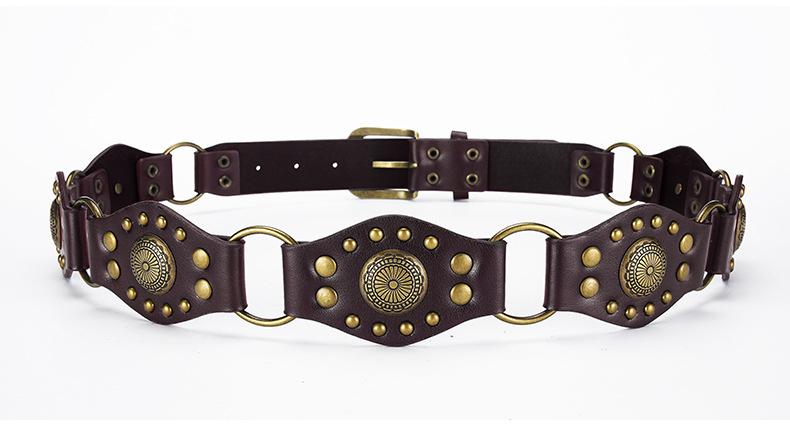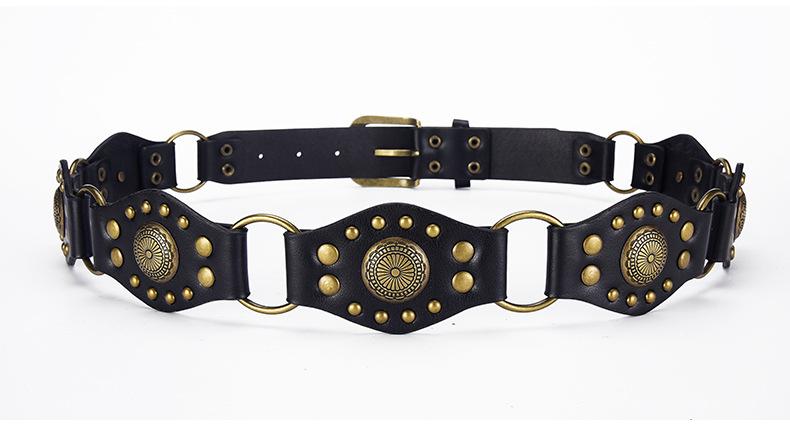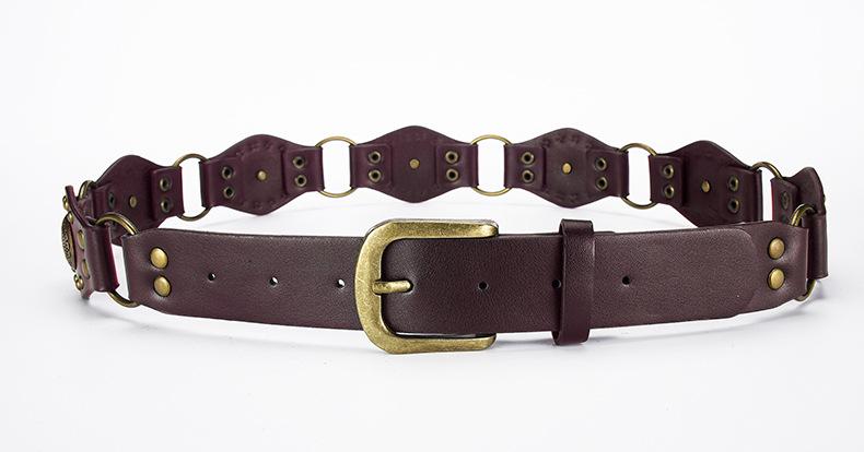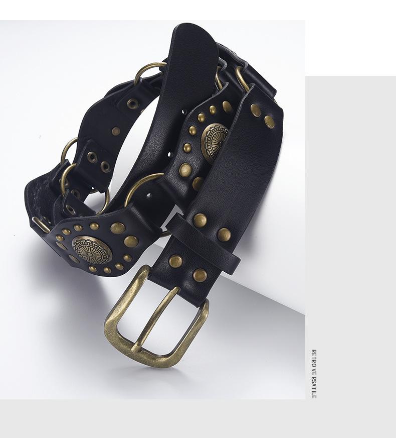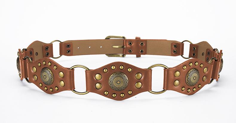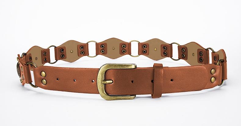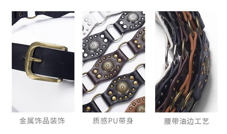 Cinturón Americano Retro Nuevo Empalmado Jeans Marrones Cinturón de Remaches Estilo Chica Caliente Cinturón Calado para Mujer Venta al por Mayor
