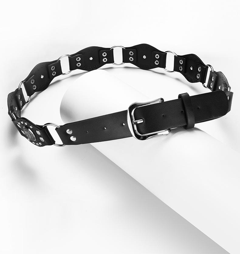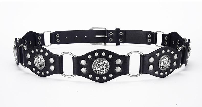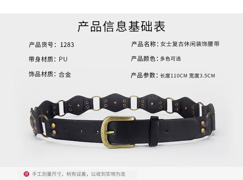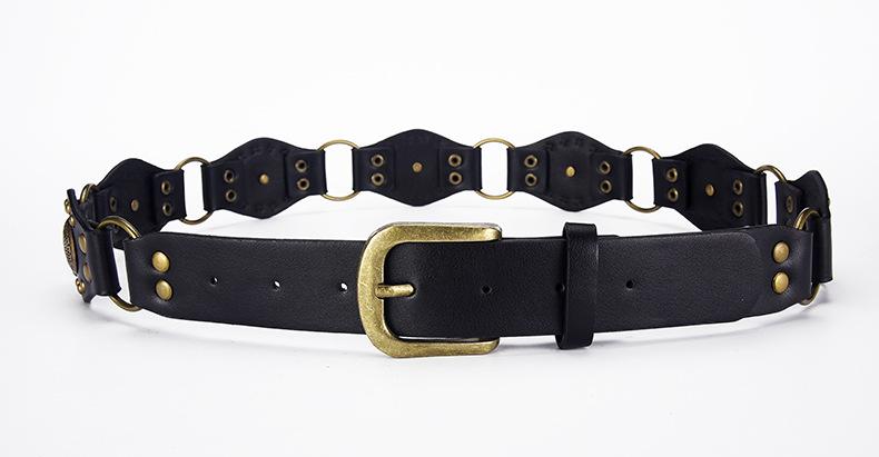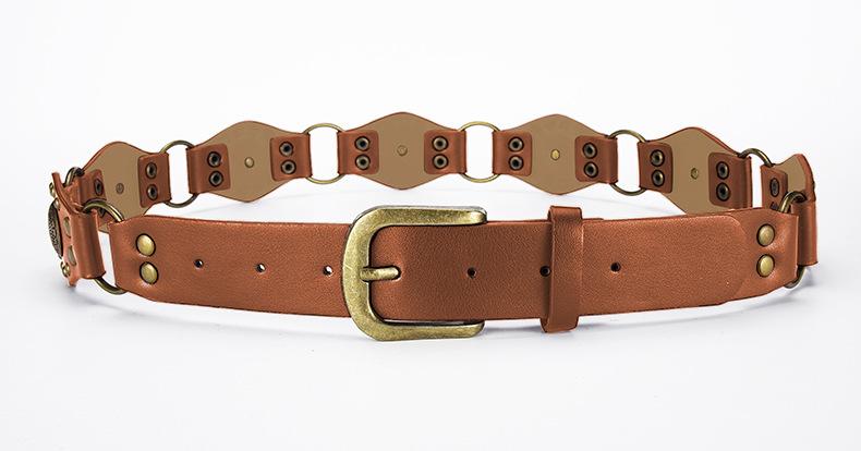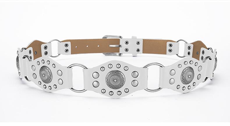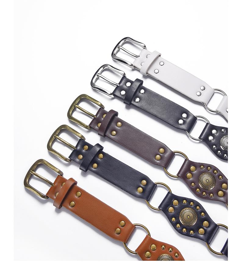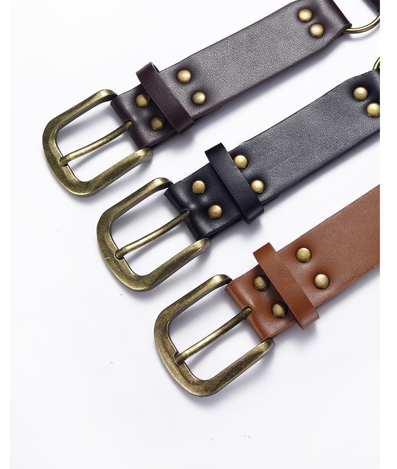 Cinturón Americano Retro Nuevo Empalmado Jeans Marrones Cinturón de Remaches Estilo Chica Caliente Cinturón Calado para Mujer Venta al por Mayor