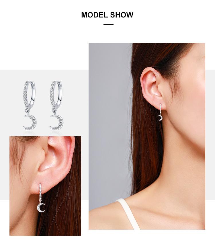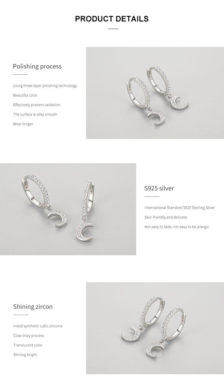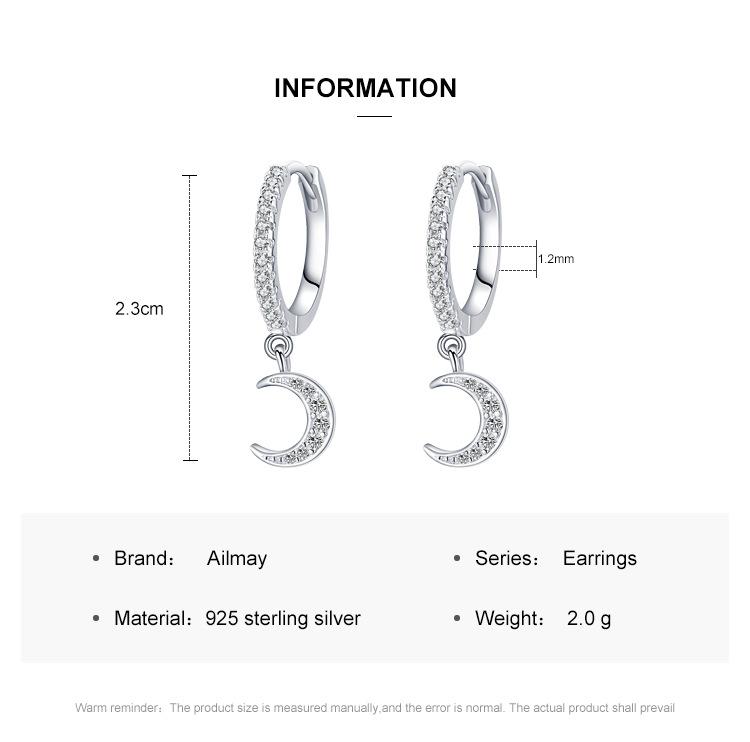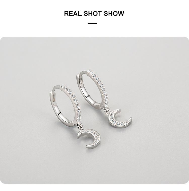 Pendientes de luna de plata s925 para mujer, con temperamento japonés y coreano, de diamantes de alta calidad, populares en Internet.