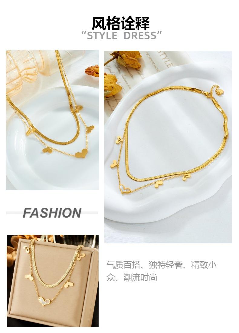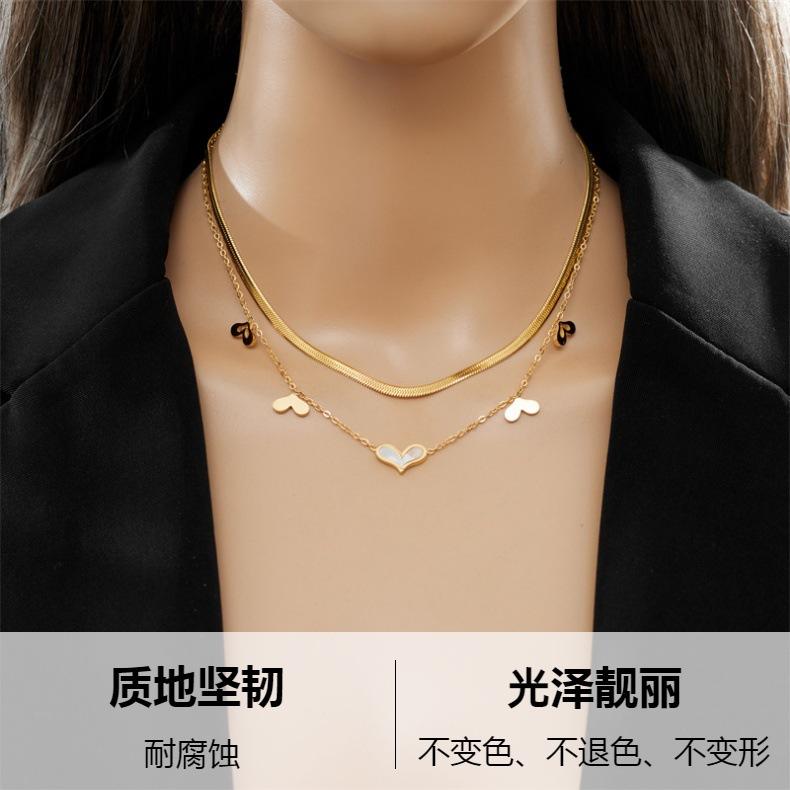 Collar de acero de titanio con colgante de amor apilado de doble capa con temperamento simple y diseño de nicho de moda europeo y americano