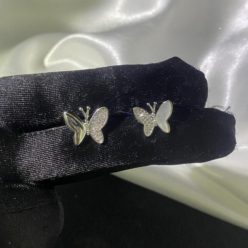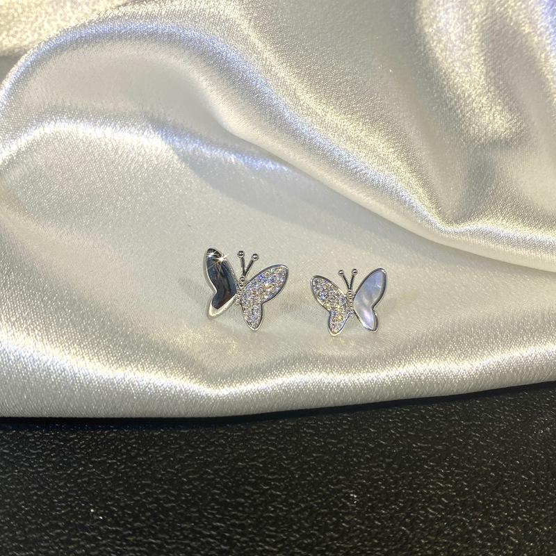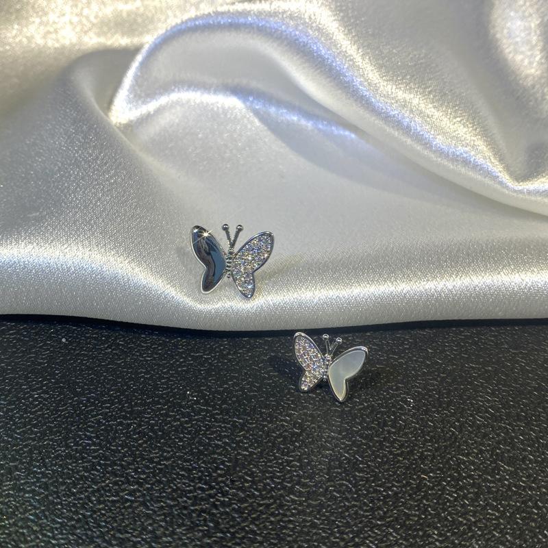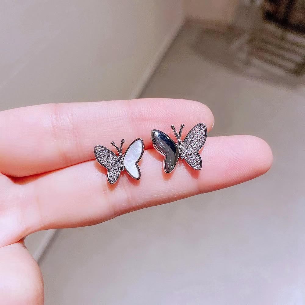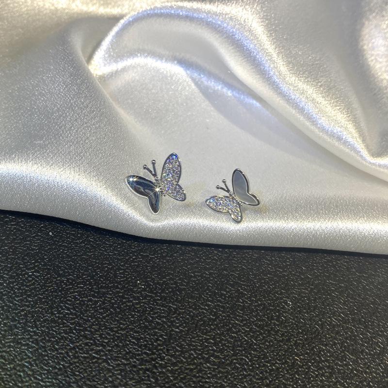 Pendientes pequeños de mariposa de hadas súper AB con diseño de nicho, asimétricos, exquisitos y suaves para mujer.
