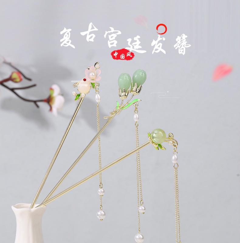 Horquilla de estilo antiguo con forma de disco y perla para el pelo, accesorio diario para el pelo de estilo Hanfu, simple, estilo chino, para mujer.