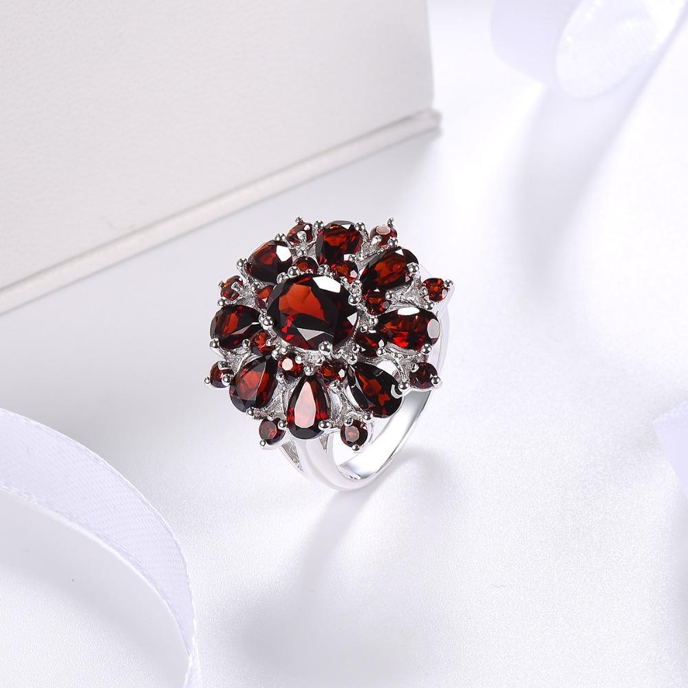 Zhenrong AliExpress nueva venta caliente anillo de rubí granate con incrustaciones anillo de compromiso femenino europeo y americano con incrustaciones de grupo de diamantes completos