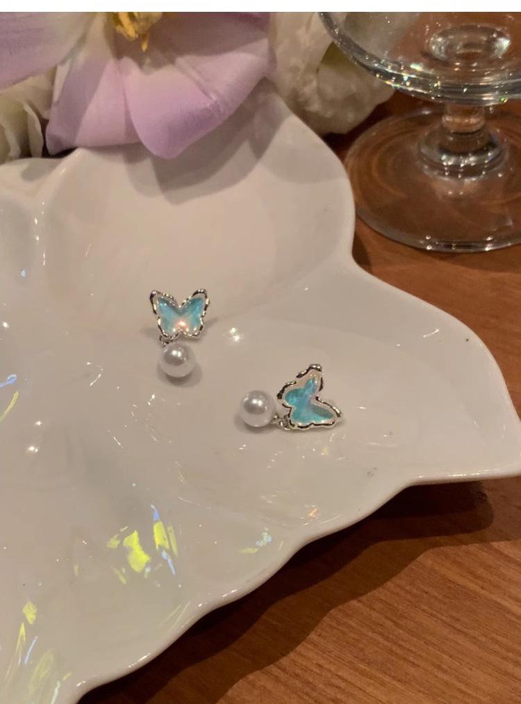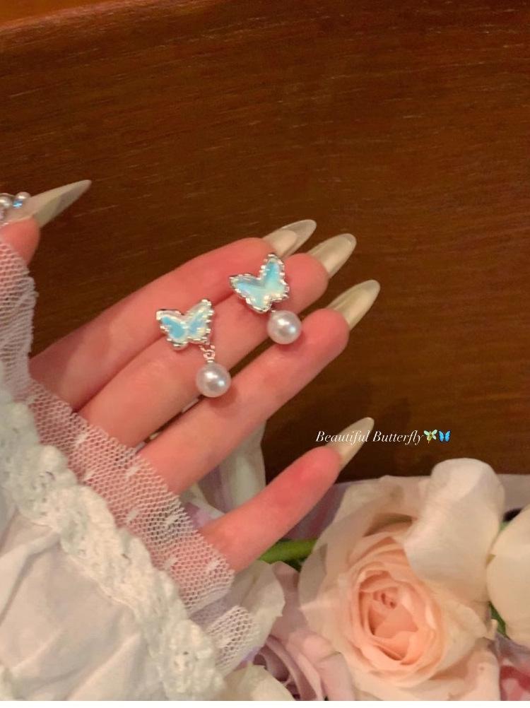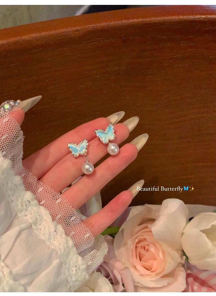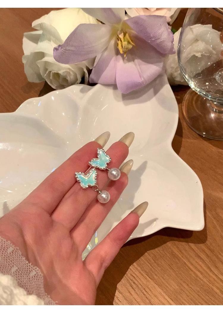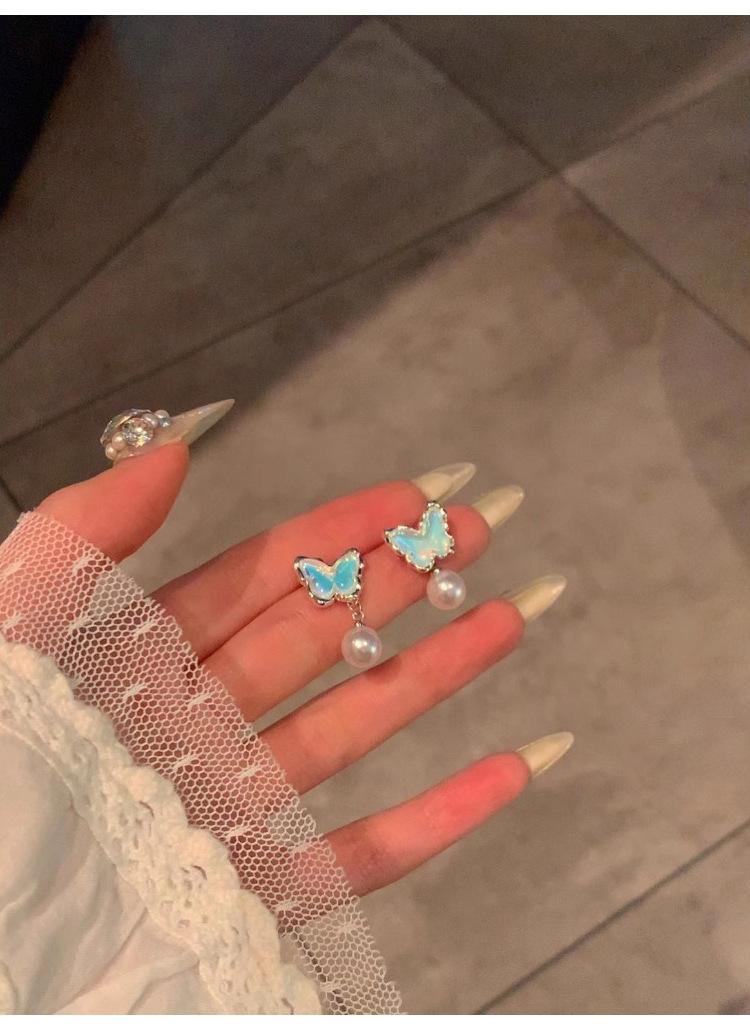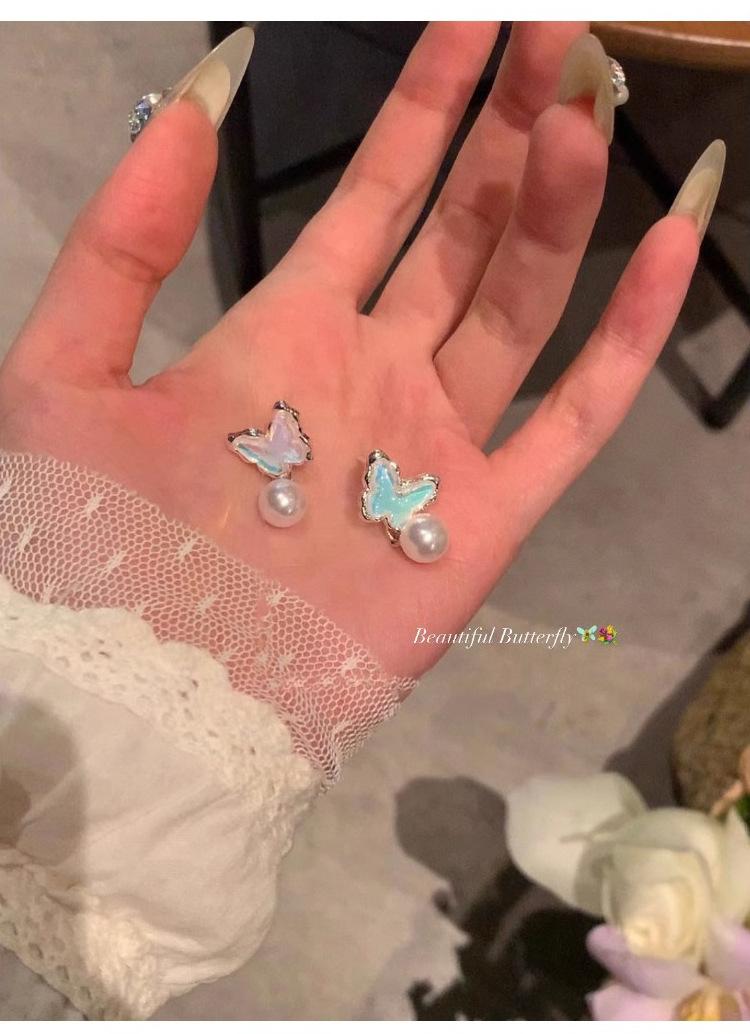 Pendientes de mariposa de colores con diseño de hada súper linda y perla, elegantes y a la moda para mujer.