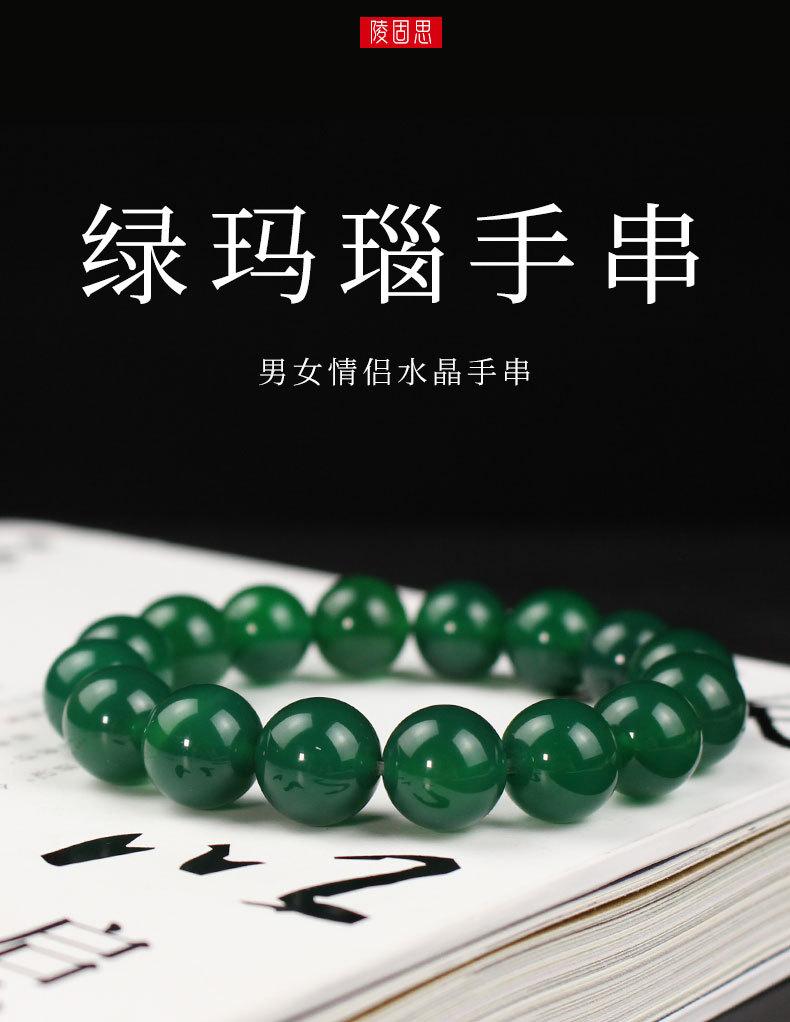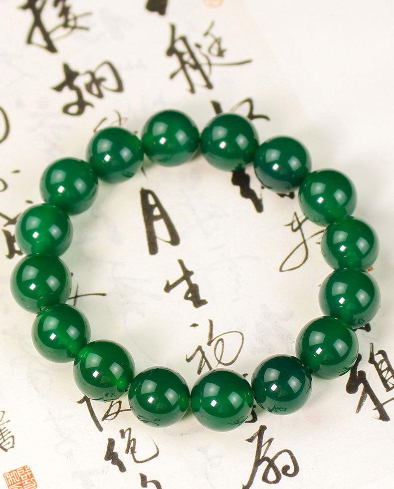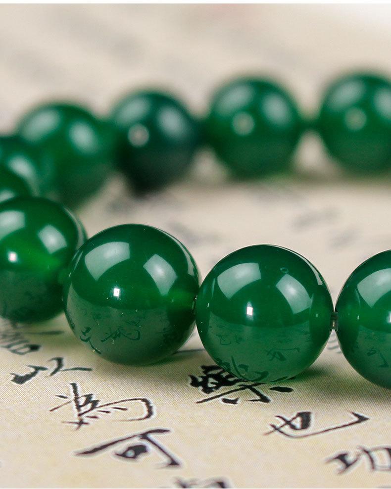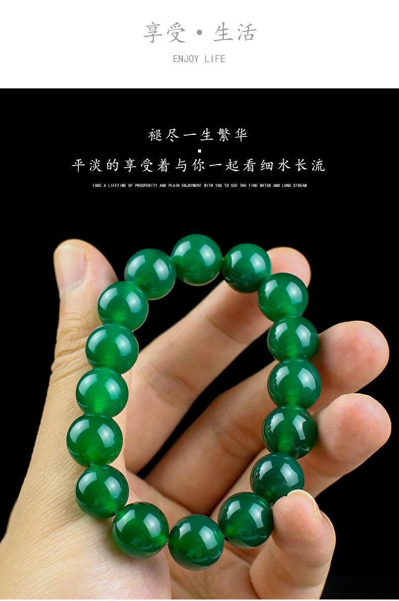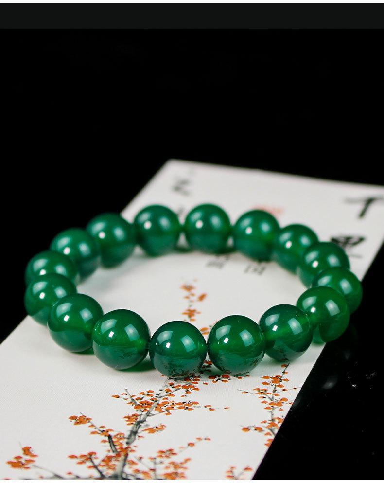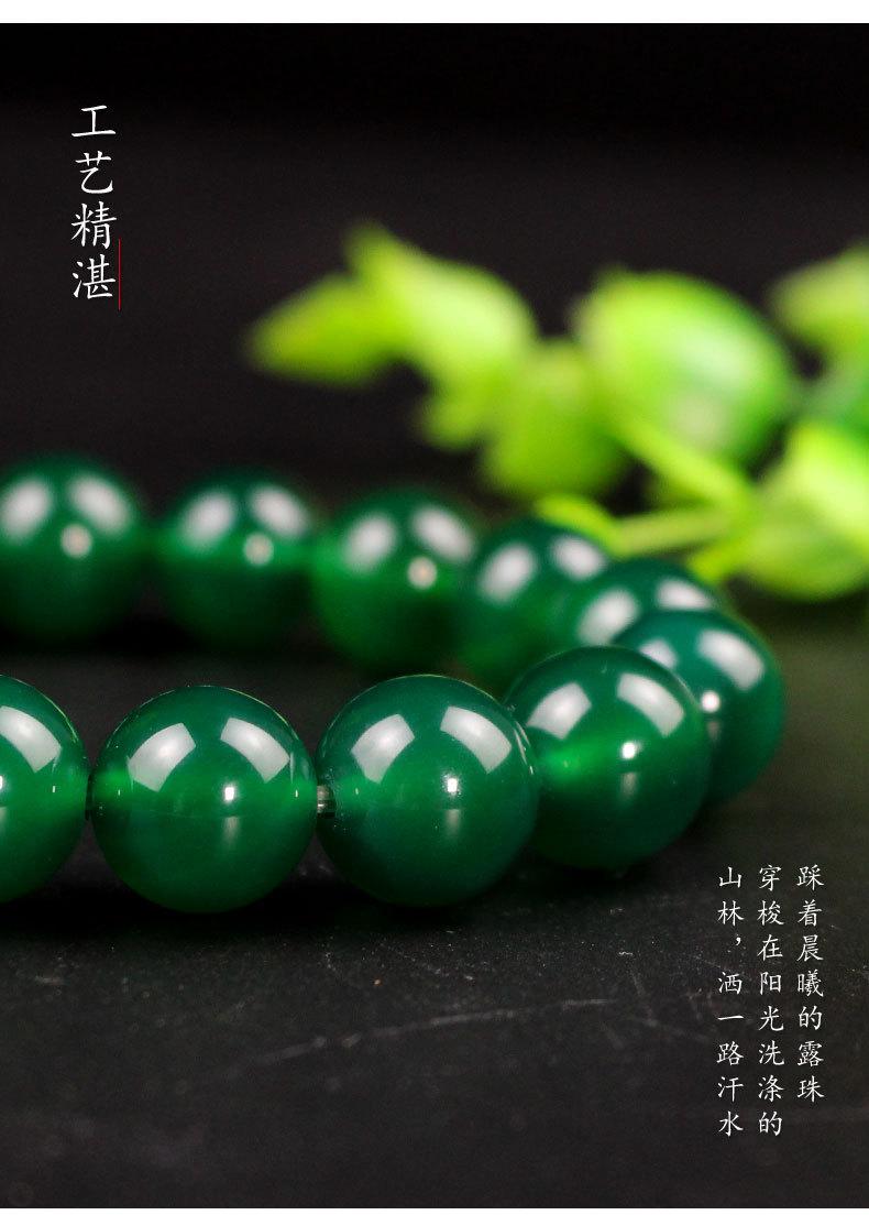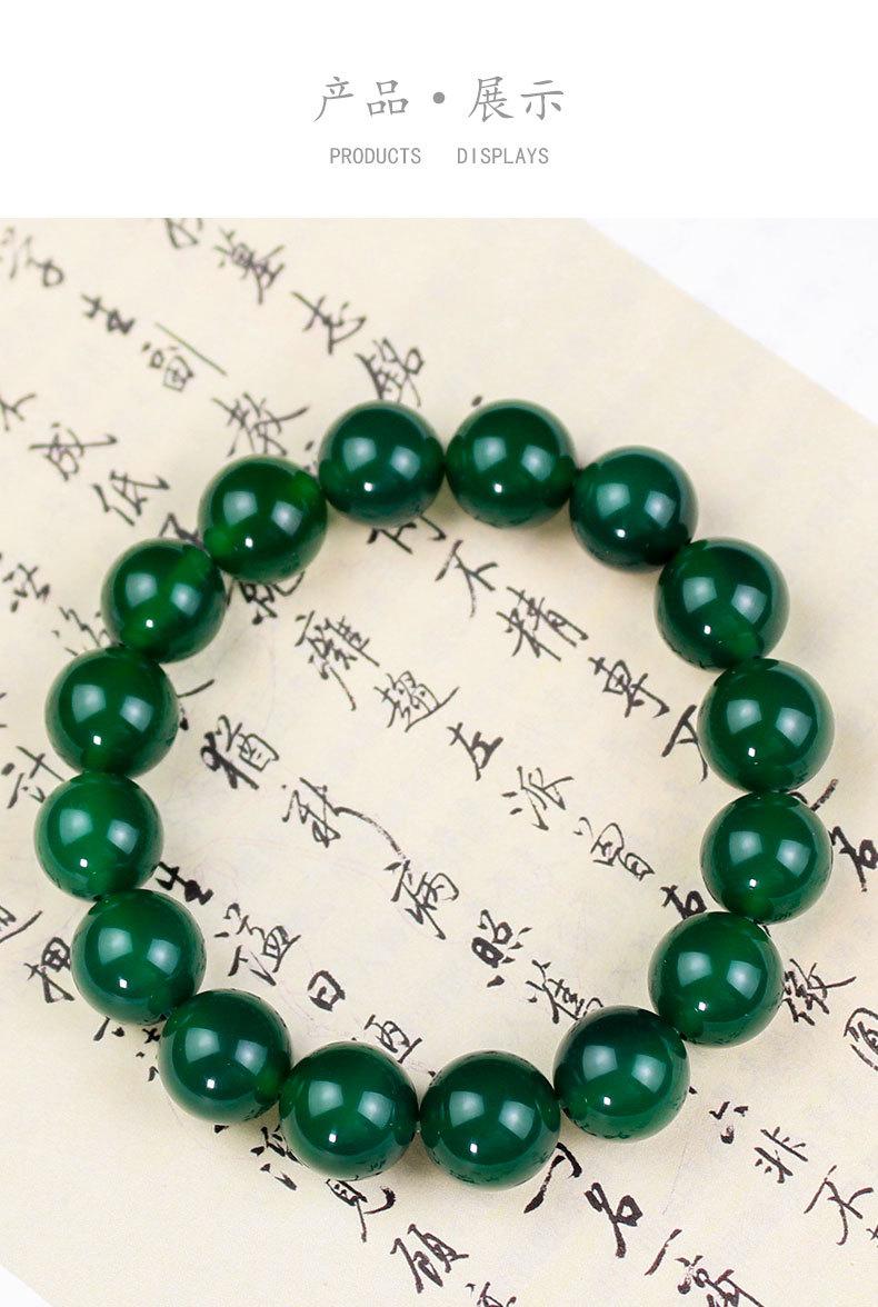 Pulsera de ágata verde al por mayor de fábrica 12 cuentas redondas joyería de jade anillo individual pulsera para pareja hombres y mujeres cuentas cuentas llenas de verde