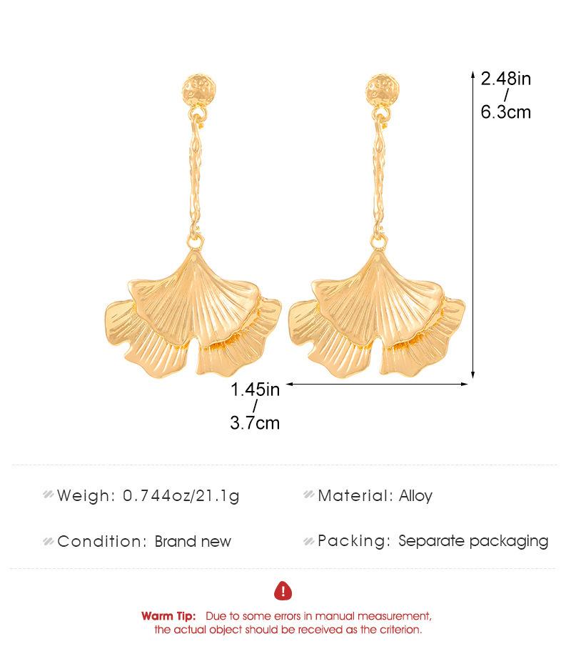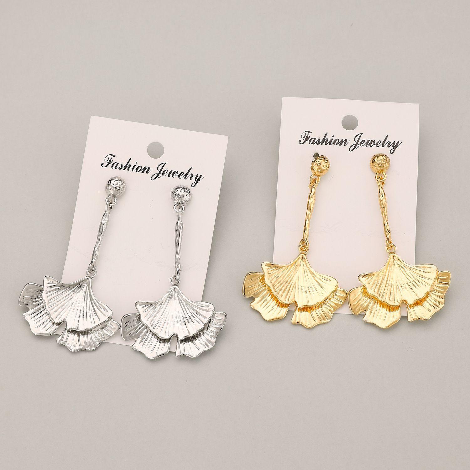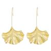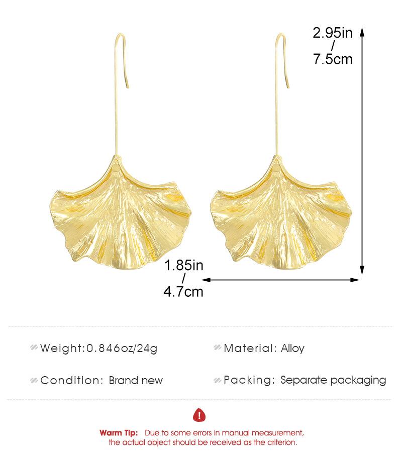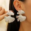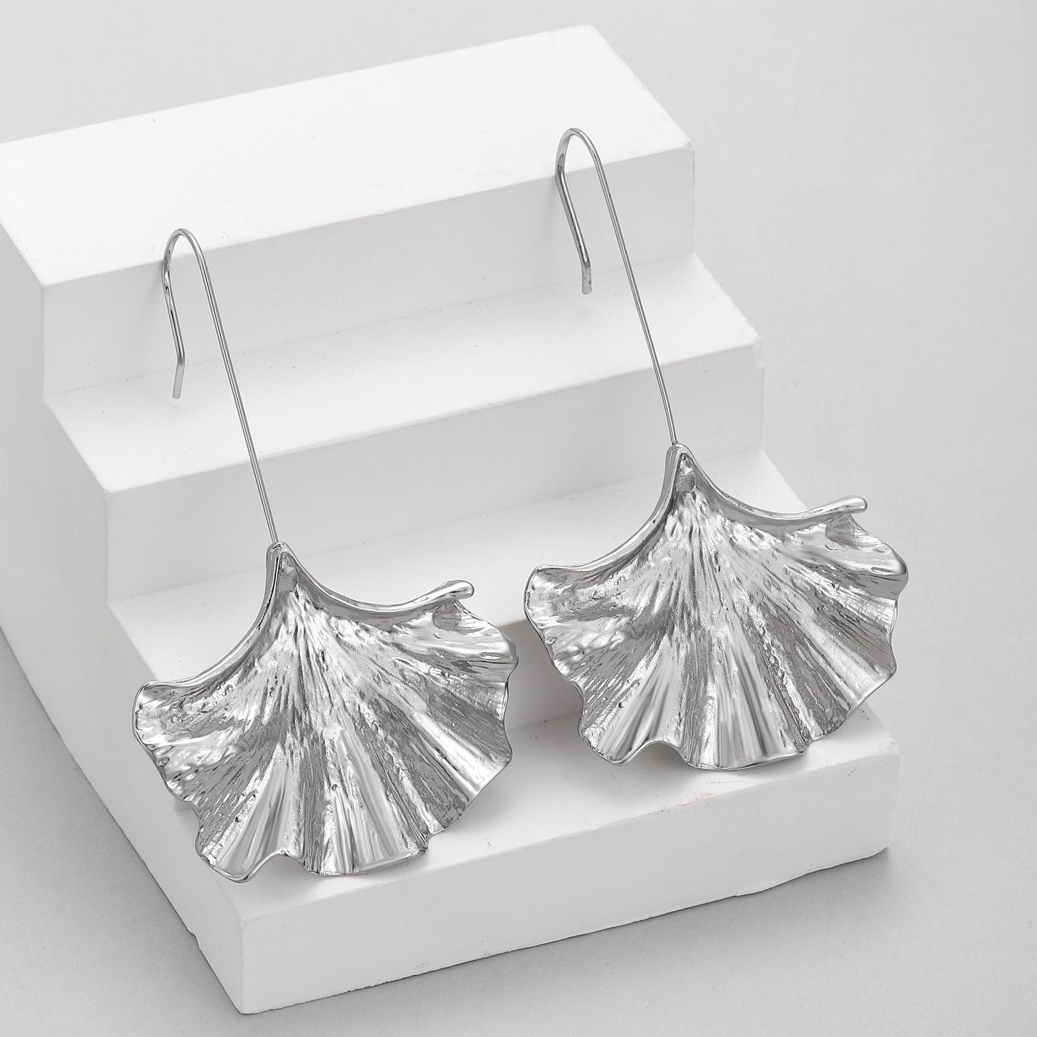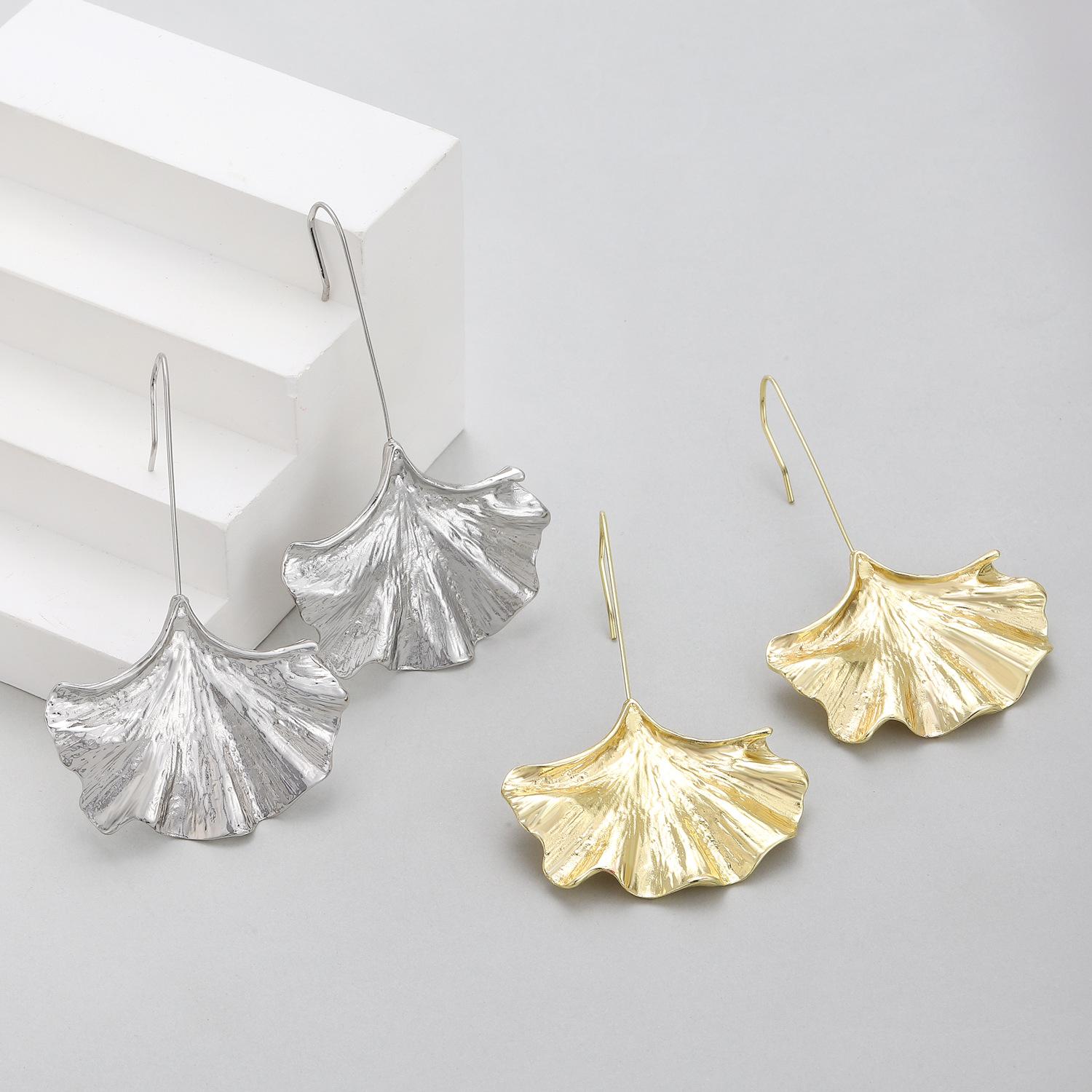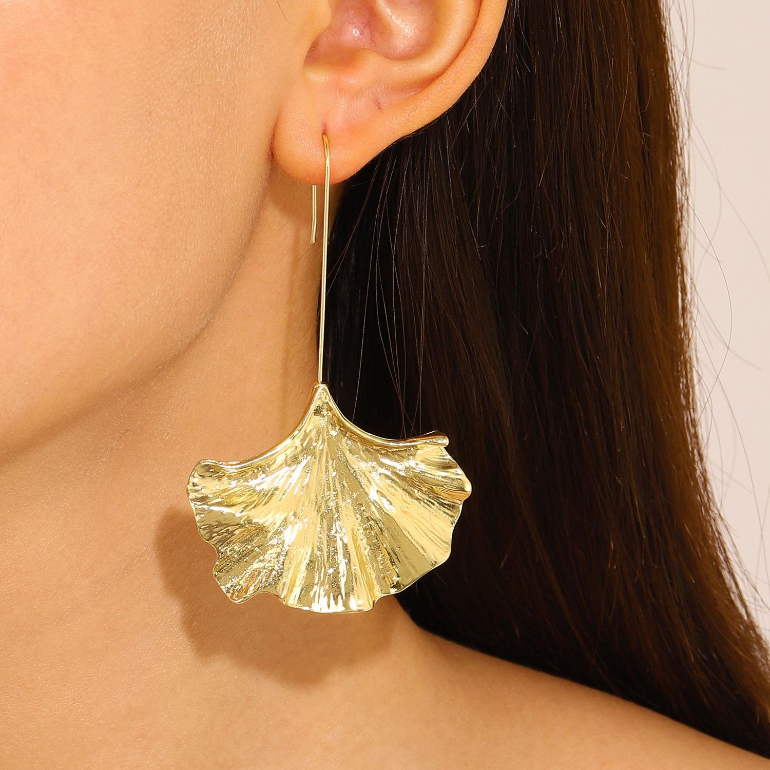Aretes de hoja de ginkgo larga de aleación con textura de hoja europea y americana, personalidad exagerada, moda, aretes de gancho para la oreja de red para mujer