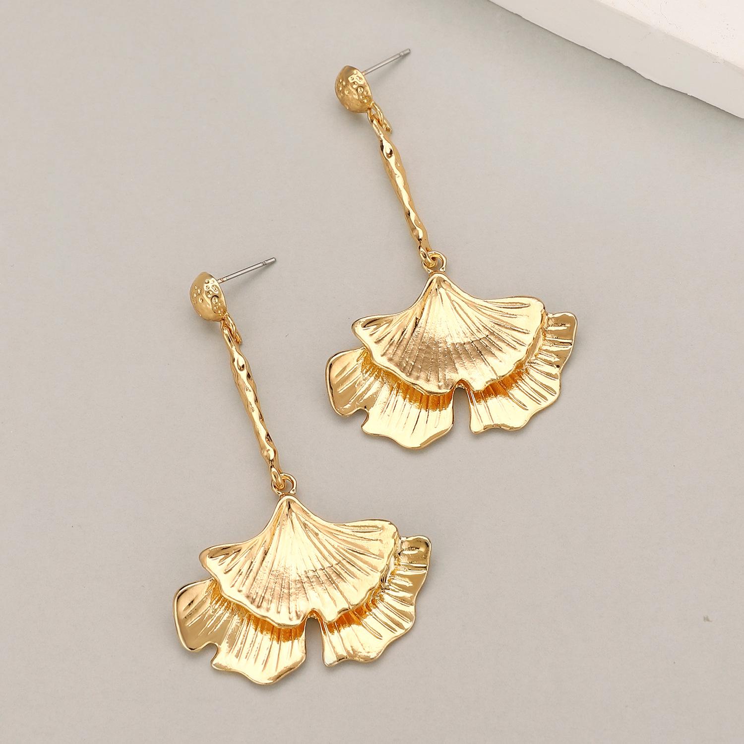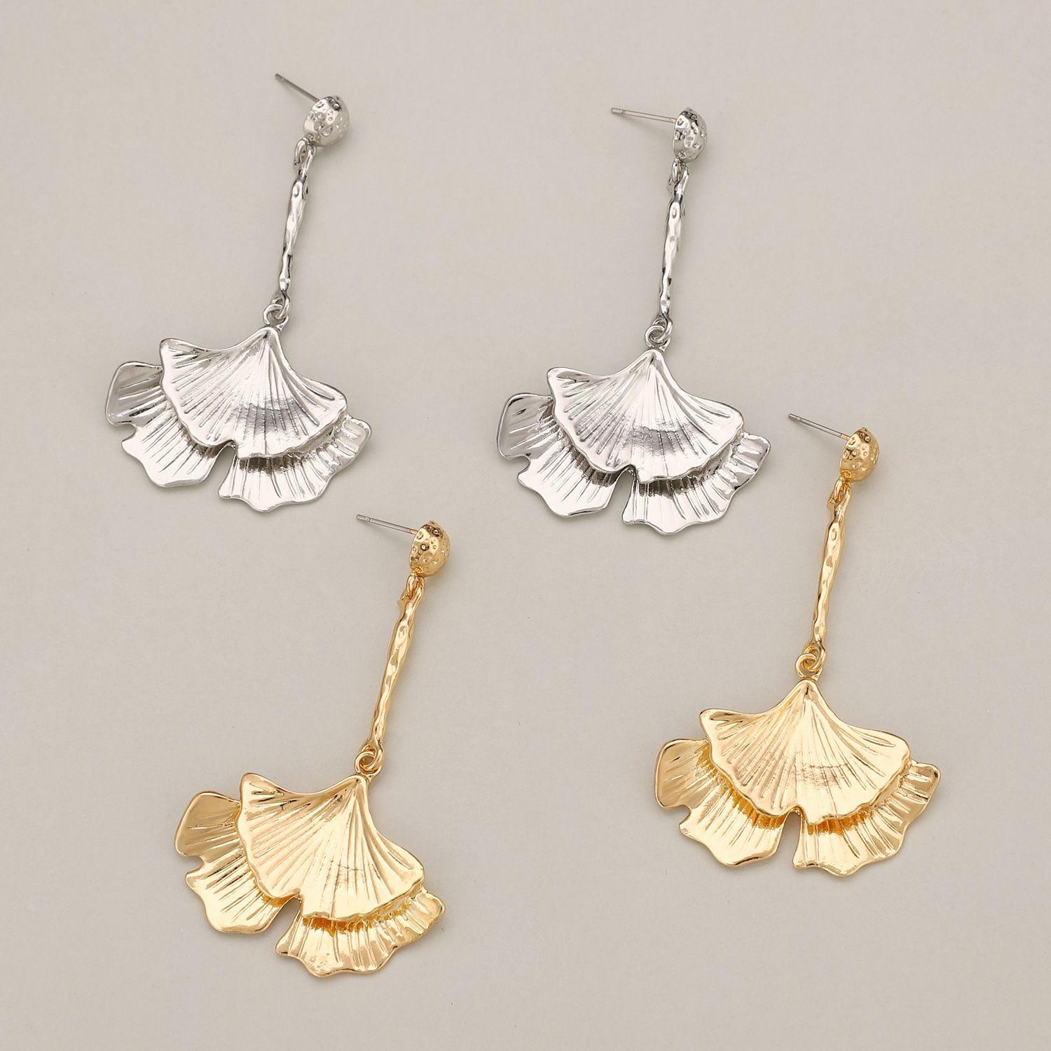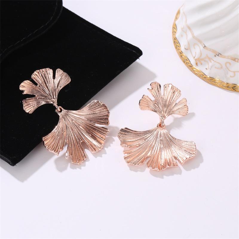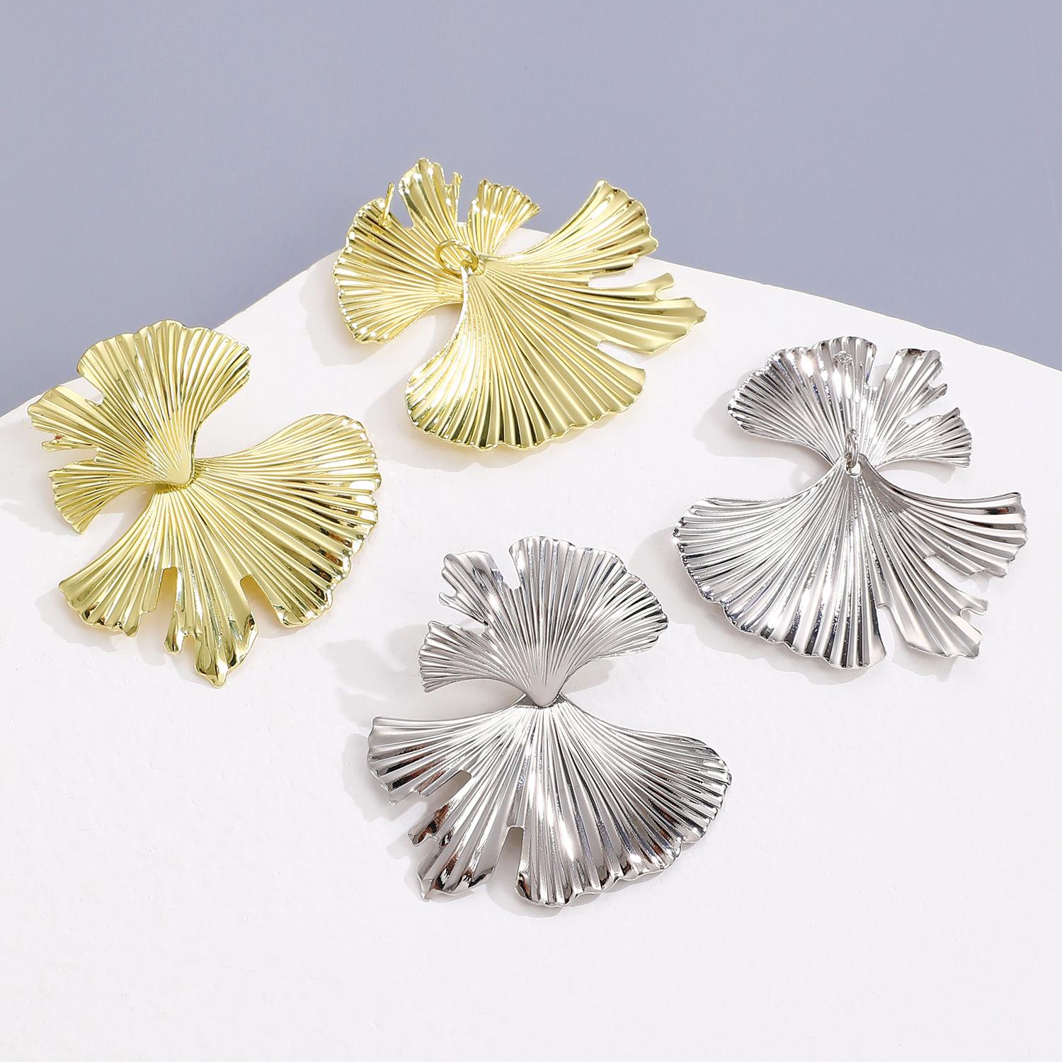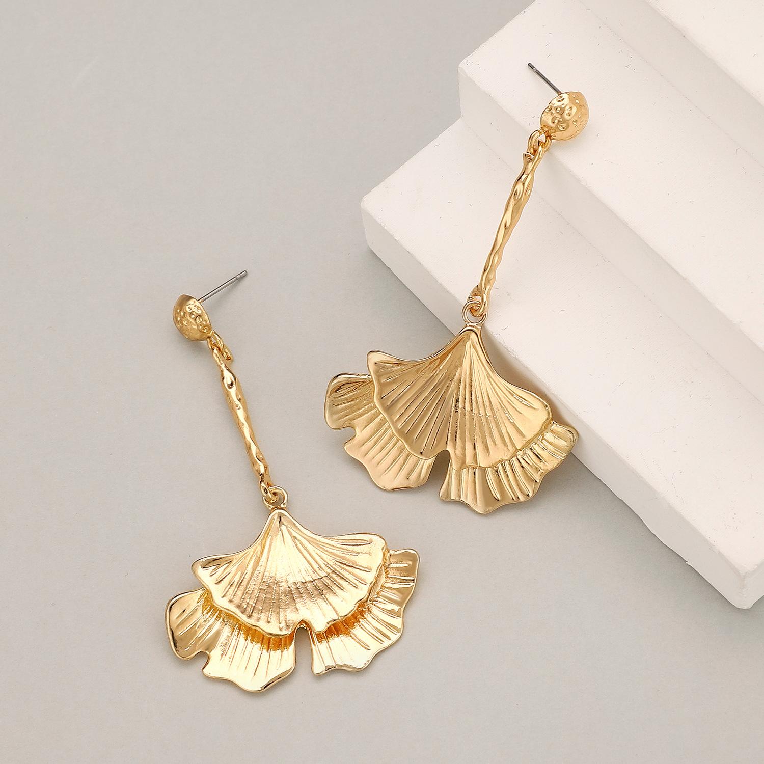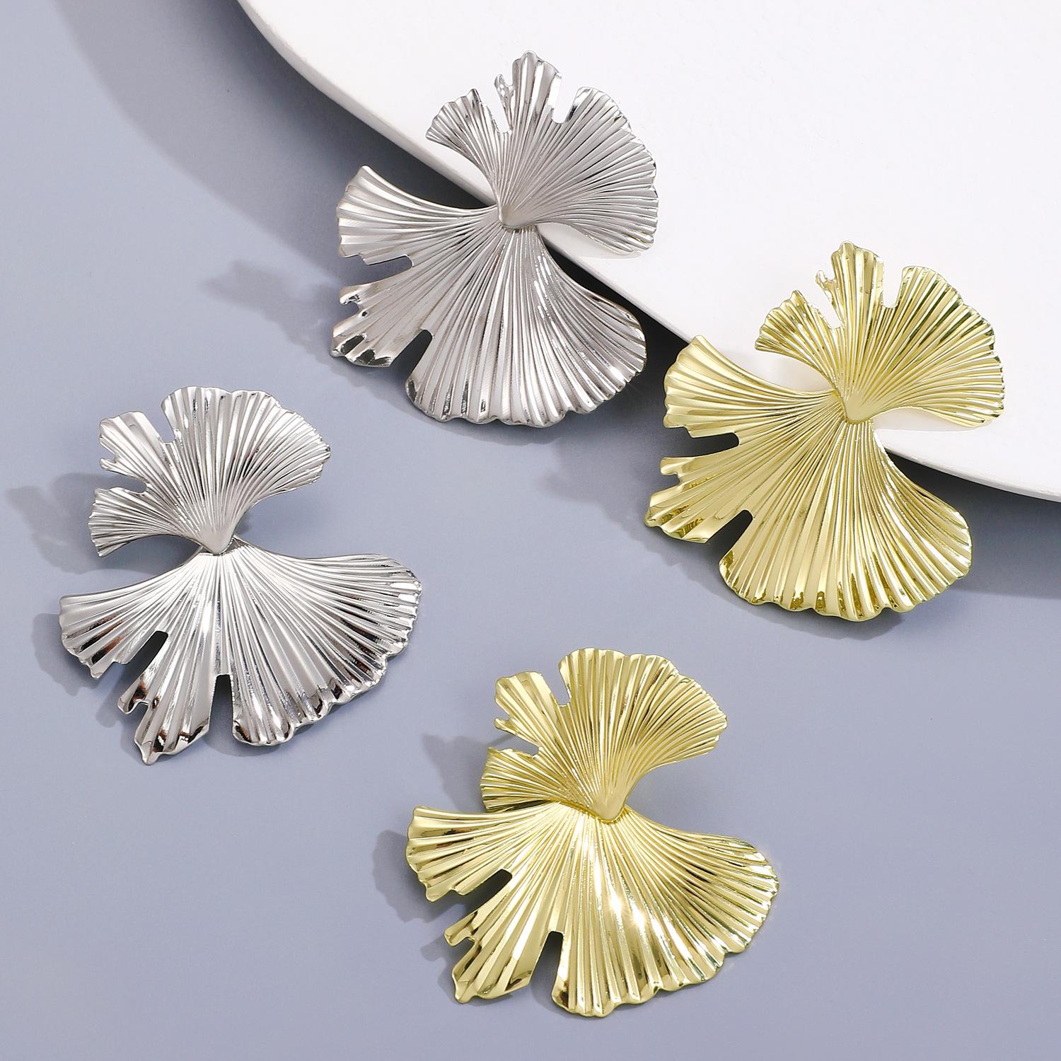Aretes de hoja de ginkgo larga de aleación con textura de hoja europea y americana, personalidad exagerada, moda, aretes de gancho para la oreja de red para mujer