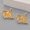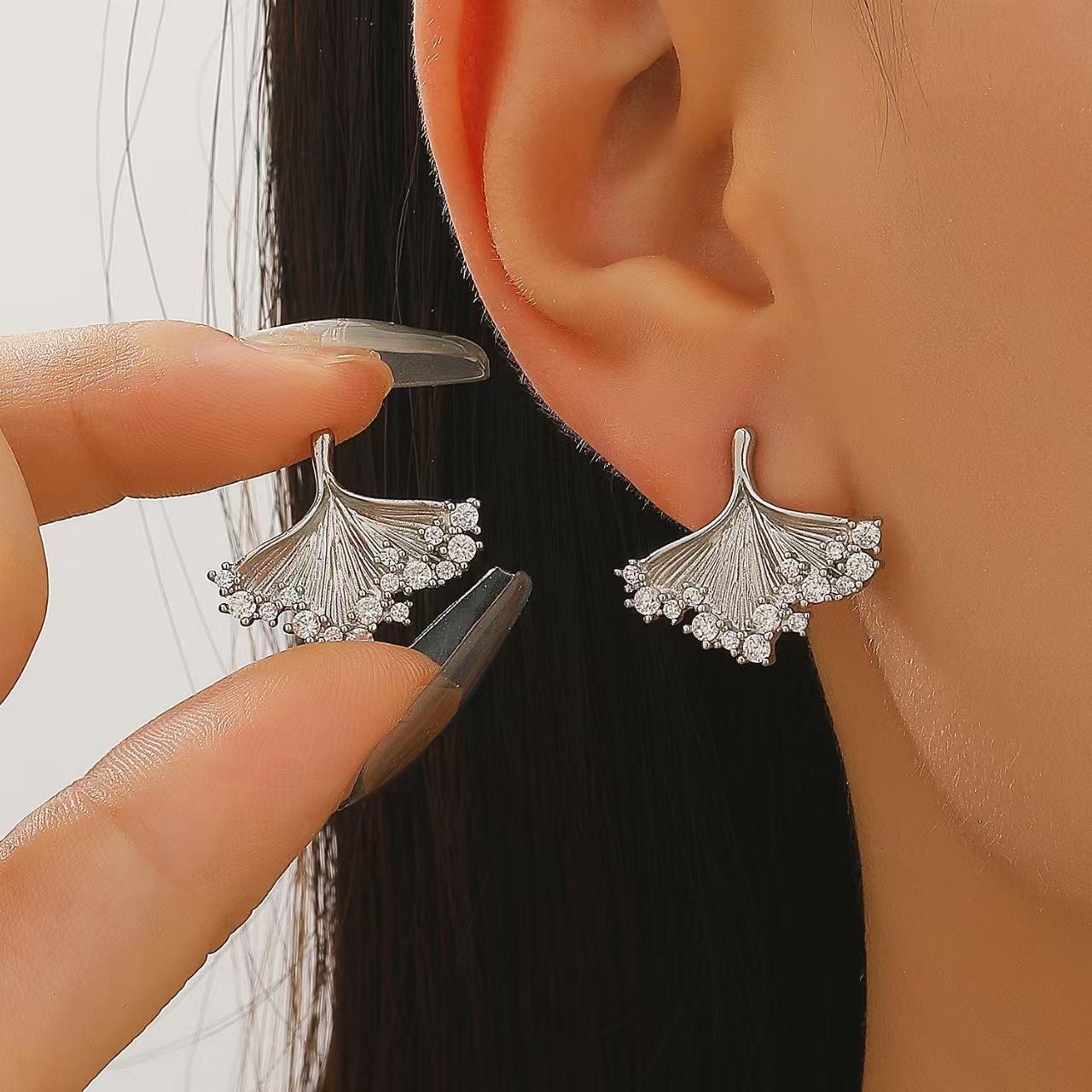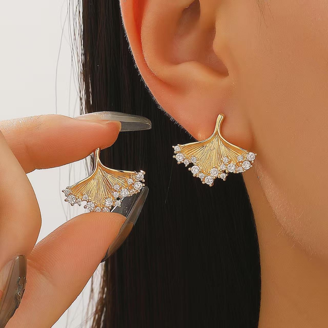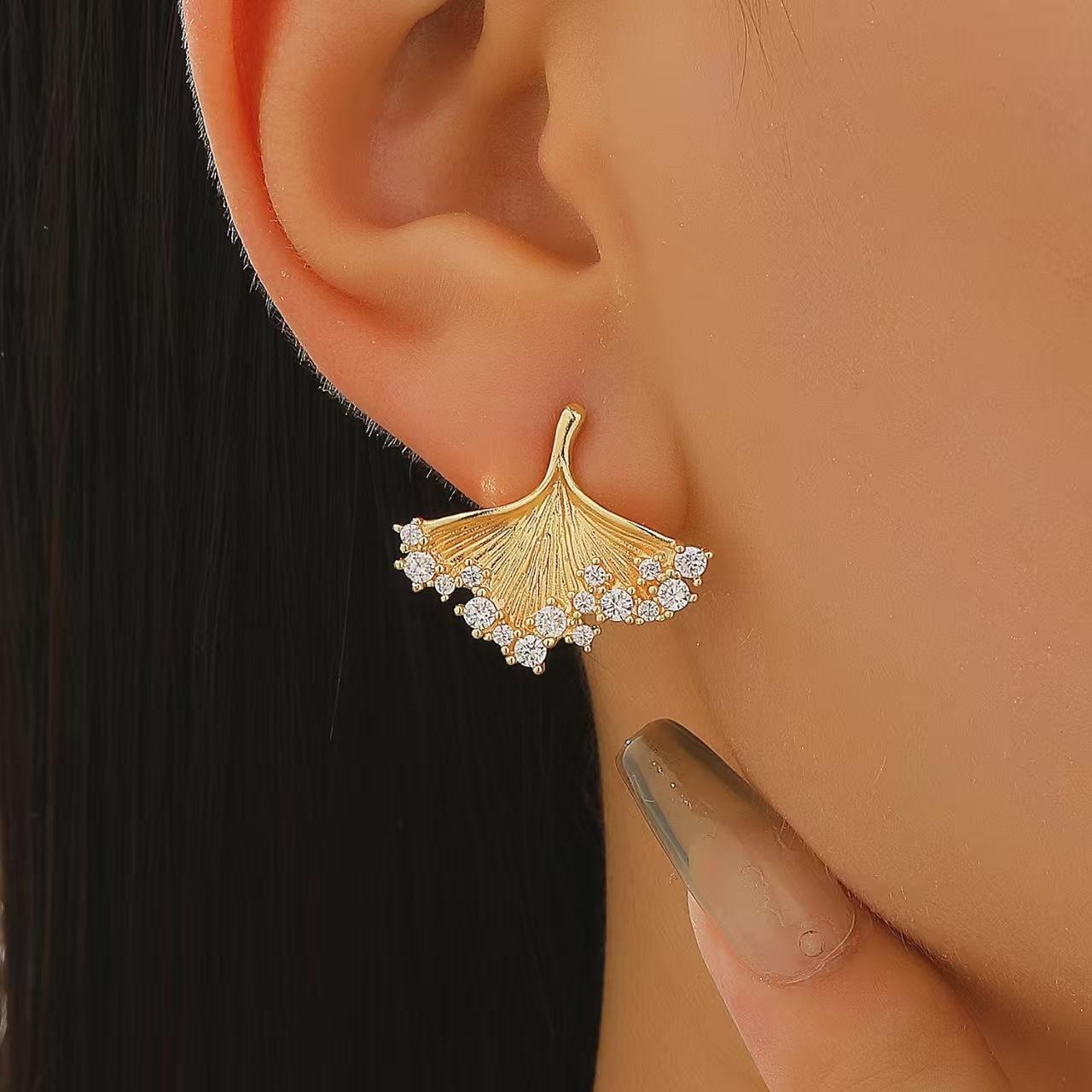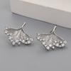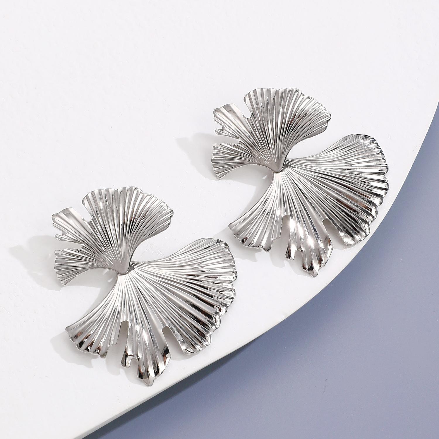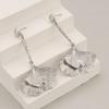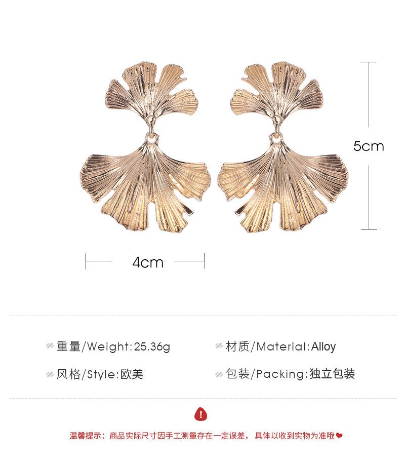 Aretes de hoja de ginkgo larga de aleación con textura de hoja europea y americana, personalidad exagerada, moda, aretes de gancho para la oreja de red para mujer