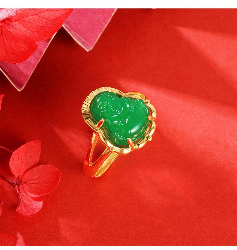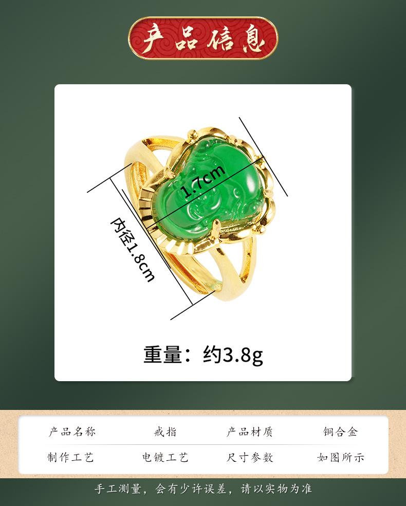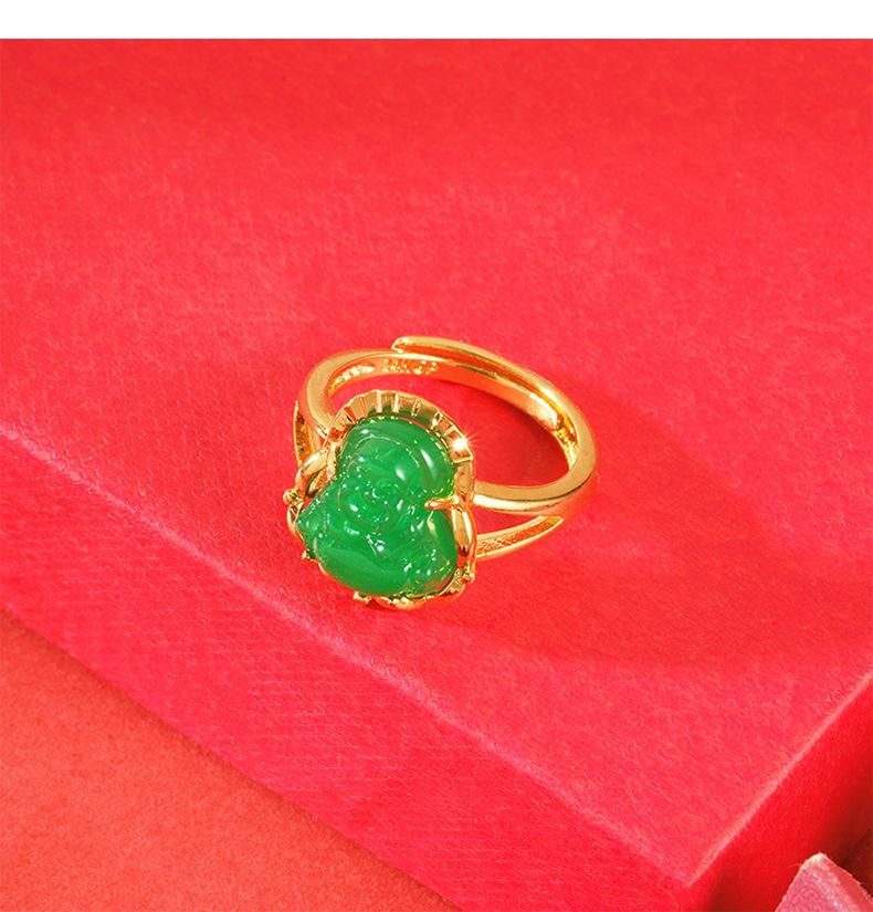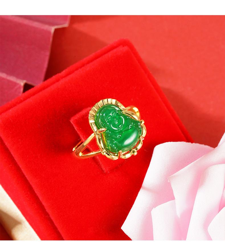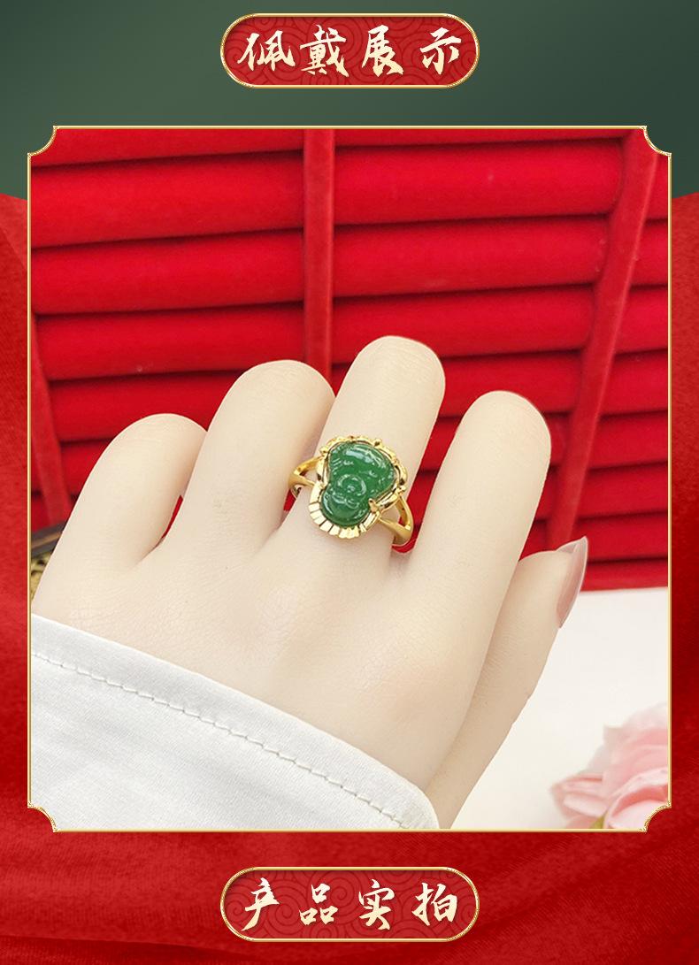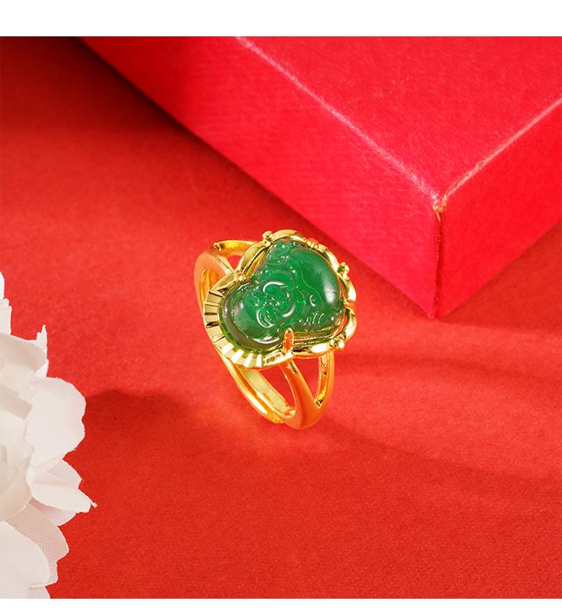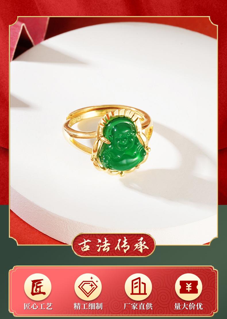 Anillo abierto de calcedonia con Buda Maitreya, herencia antigua, oro de arena de Vietnam, joyería Yiwu, venta al por mayor, temperamento para damas, estilo chino