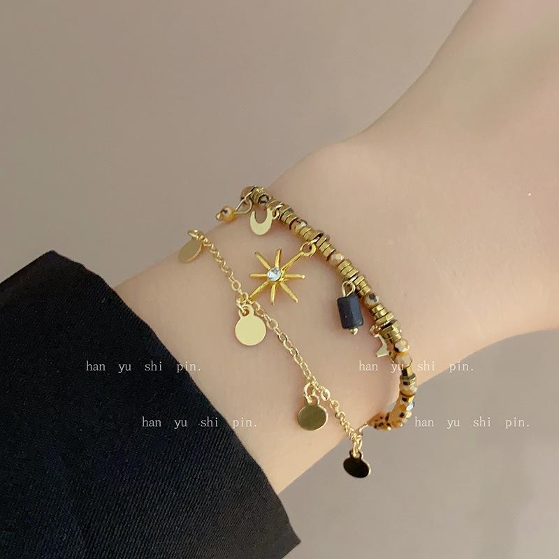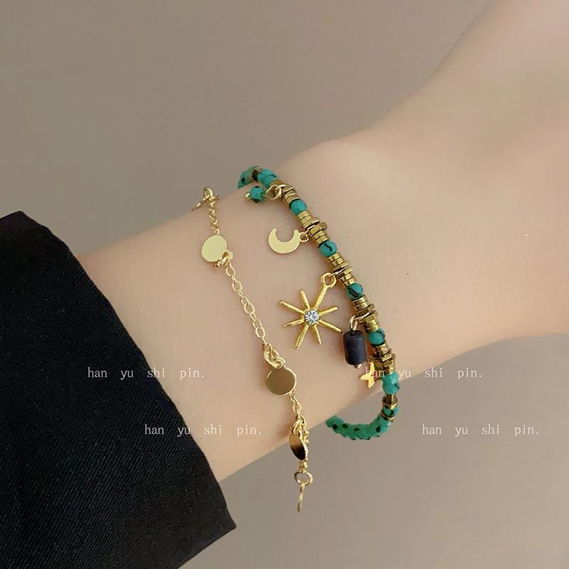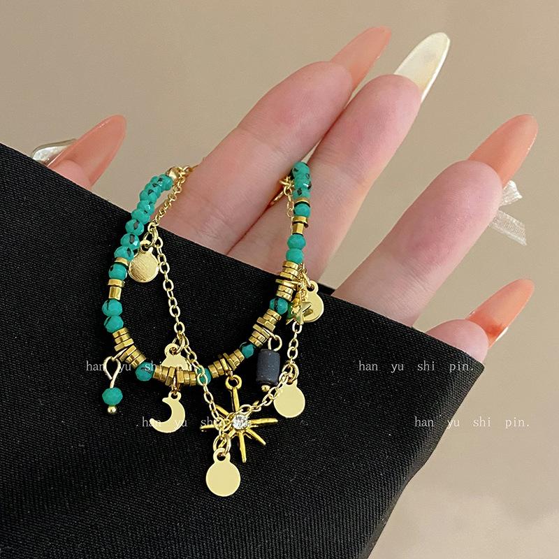 Pulsera de Pareja de Moda con Doble Cuenta de Piedra Natural, Nicho Exquisito de Alta Gama, Nueva Pulsera China Sol Luna