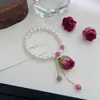 Pulsera de Rosa Natural Sentido del Diseño Colgante de Flor Real Pulsera con Borla Versátil Súper Inmortal Pulsera de Cuentas de Piedra Natural