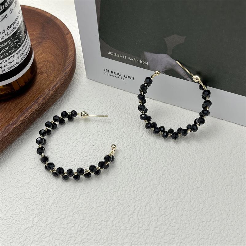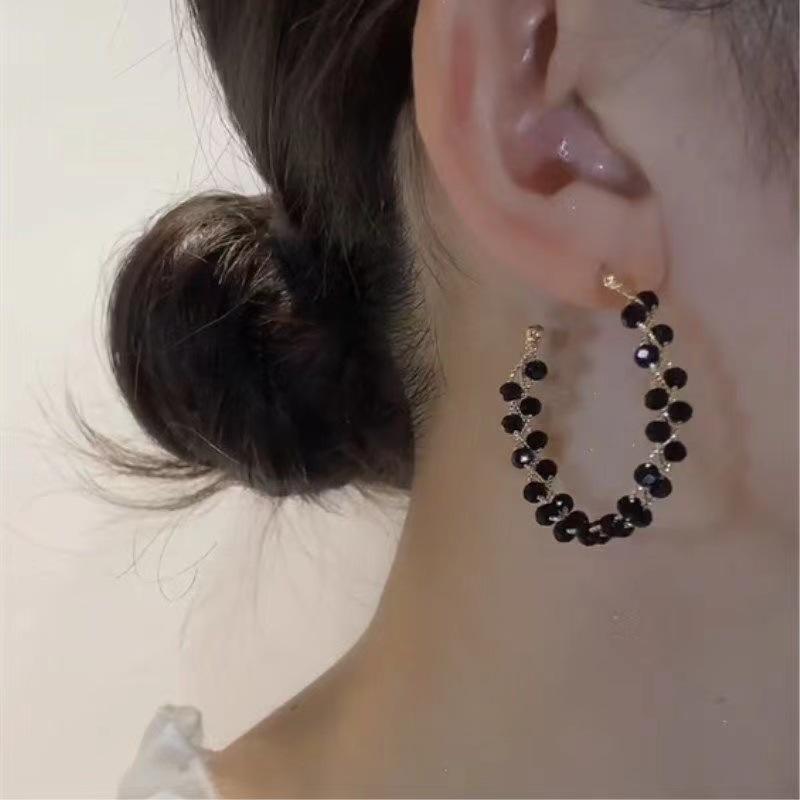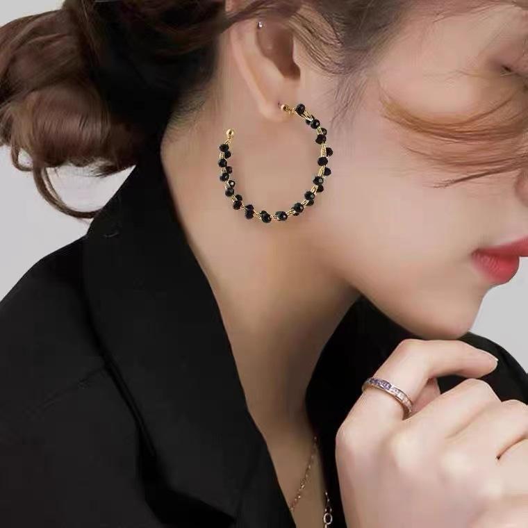 Compra Pendientes 2024 Nuevos pendientes de cristal negro con personalidad exagerada, diseño de nicho de aguja de plata s925, pendientes de alta calidad al por mayor en Joom.pro
