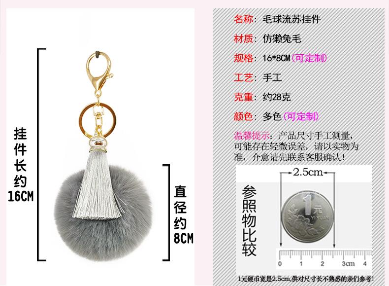 | Llavero con bola de pelo artificial de 8 cm, colgante para equipaje, accesorios de joyería, soporte de procesamiento al por mayor. |