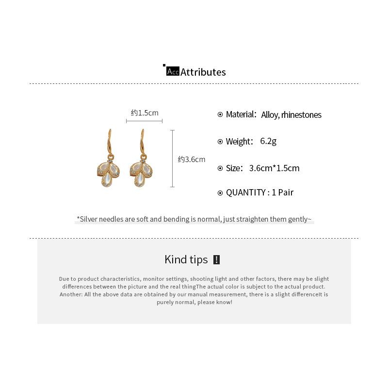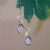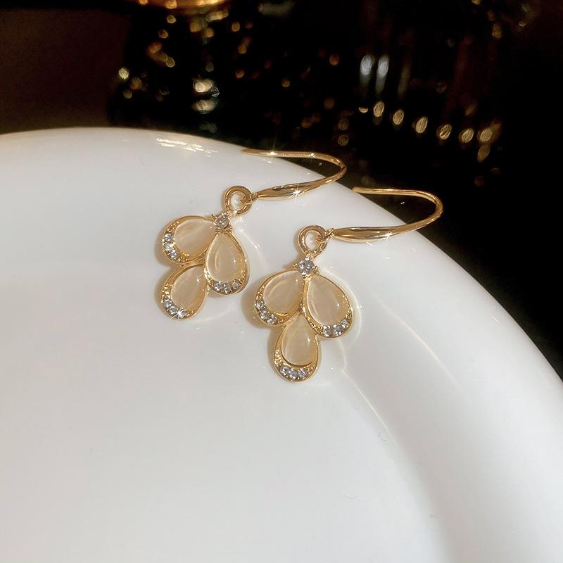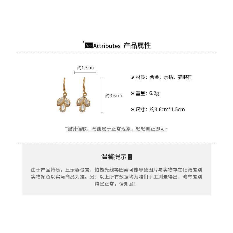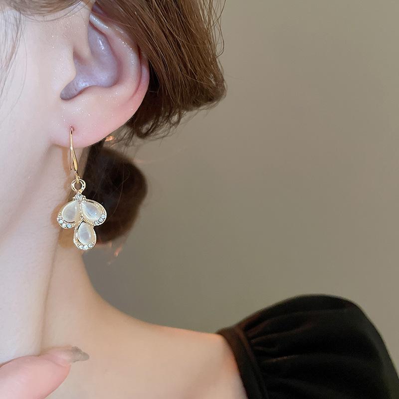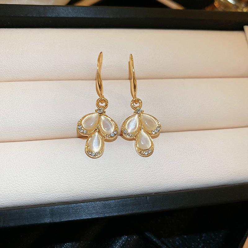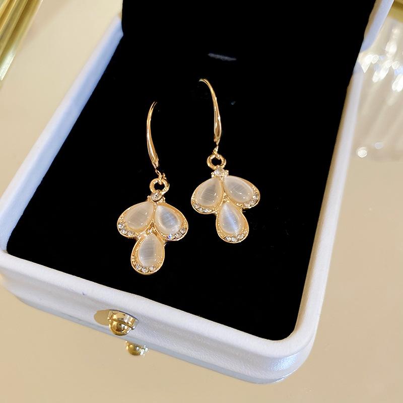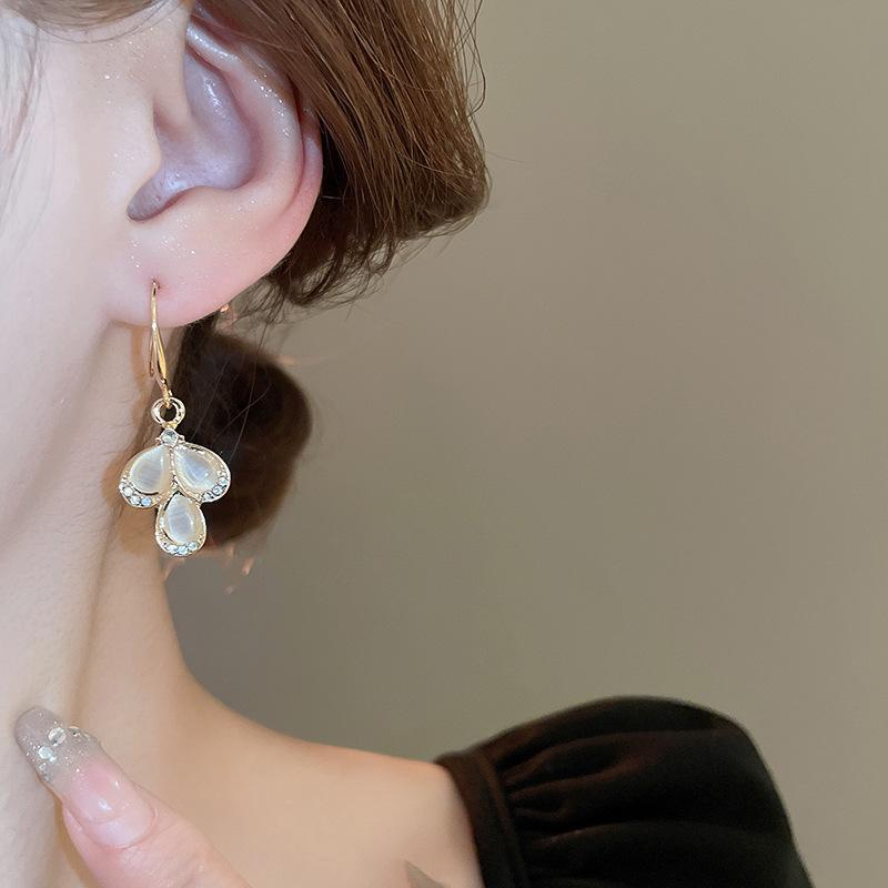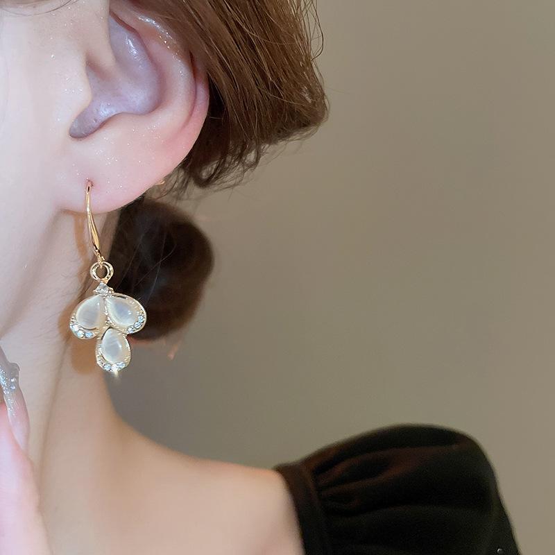 Aretes de Gancho de Pétalo de Gota de Agua de Diamante de Piedra Ojo de Gato de Imitación de Alta Gama Lujo Accesible Exquisitos Nicho Elegantes Populares para Mujer