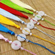 Juego de borlas con hebilla de paz de jade blanco con nudo de seis placas de color puro, colgante de jade DIY, cordón de joyería tejido a mano