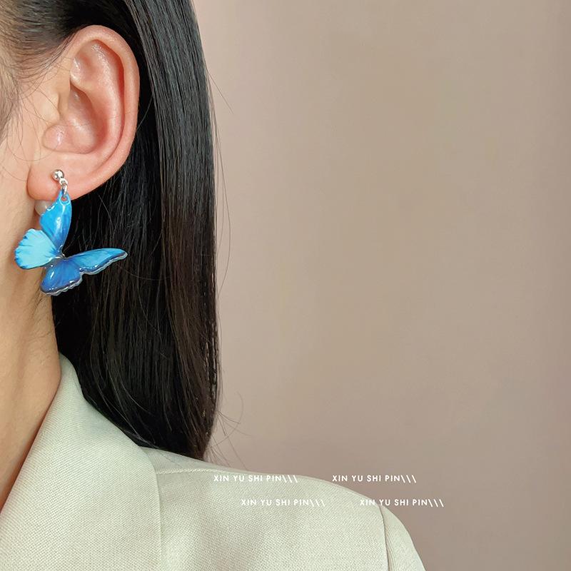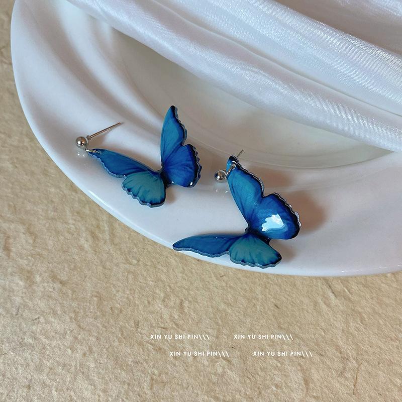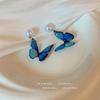 Pendientes de mariposa azul de hadas con diseño de nicho, elegantes y a la moda, con perlas que combinan con todo, con un toque de sentido avanzado para mujer.