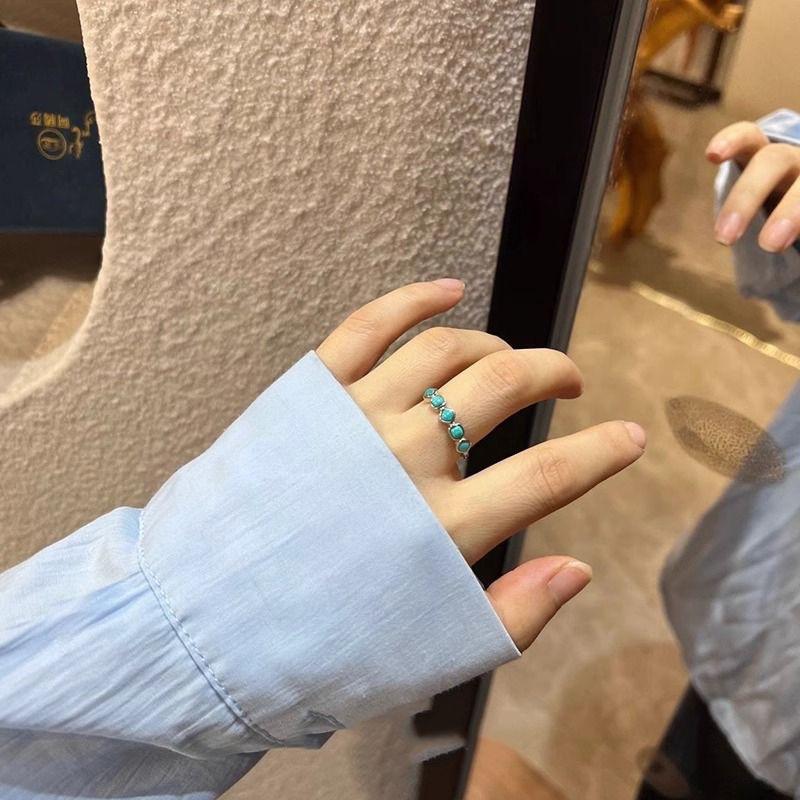 Anillo de estilo étnico de abeto turquesa, nuevo anillo de estilo antiguo de nicho con elementos mongoles de alta calidad y a la moda.