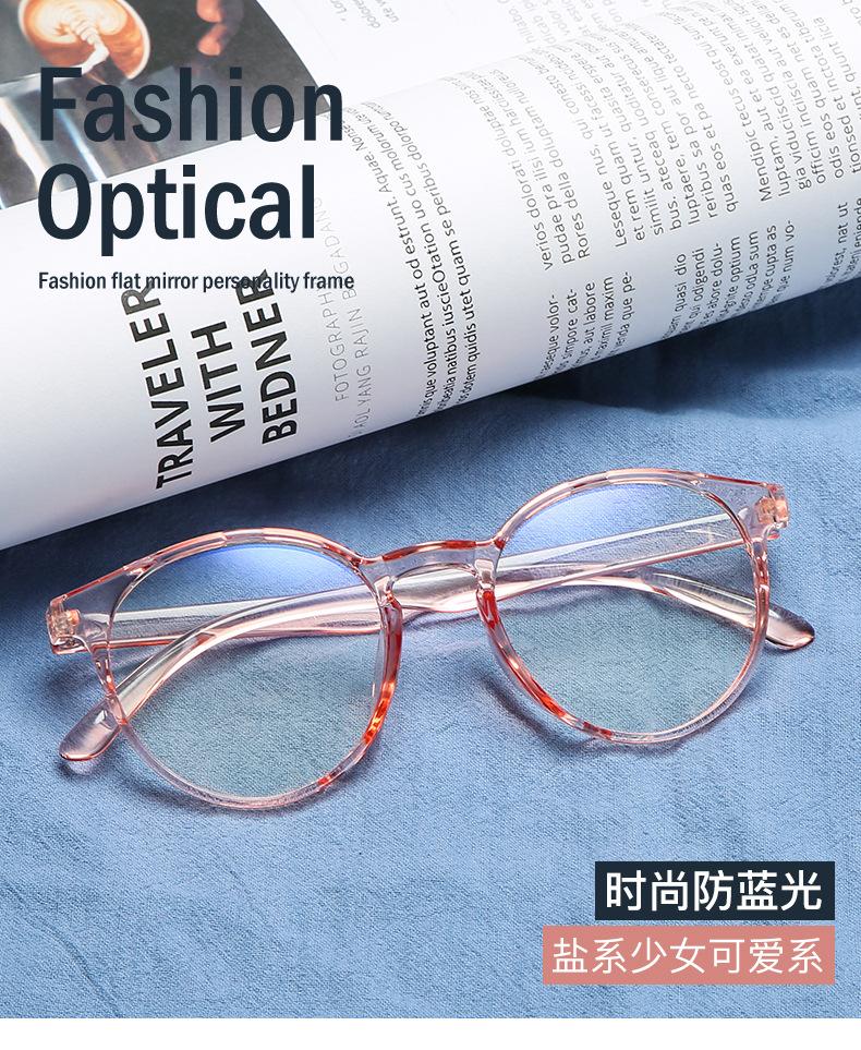Nuevas gafas planas anti-luz azul para mujer, montura redonda de alta calidad para miopía para hombre, montura de gafas retro de celebridades de internet a la moda.