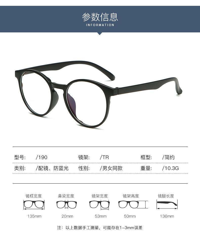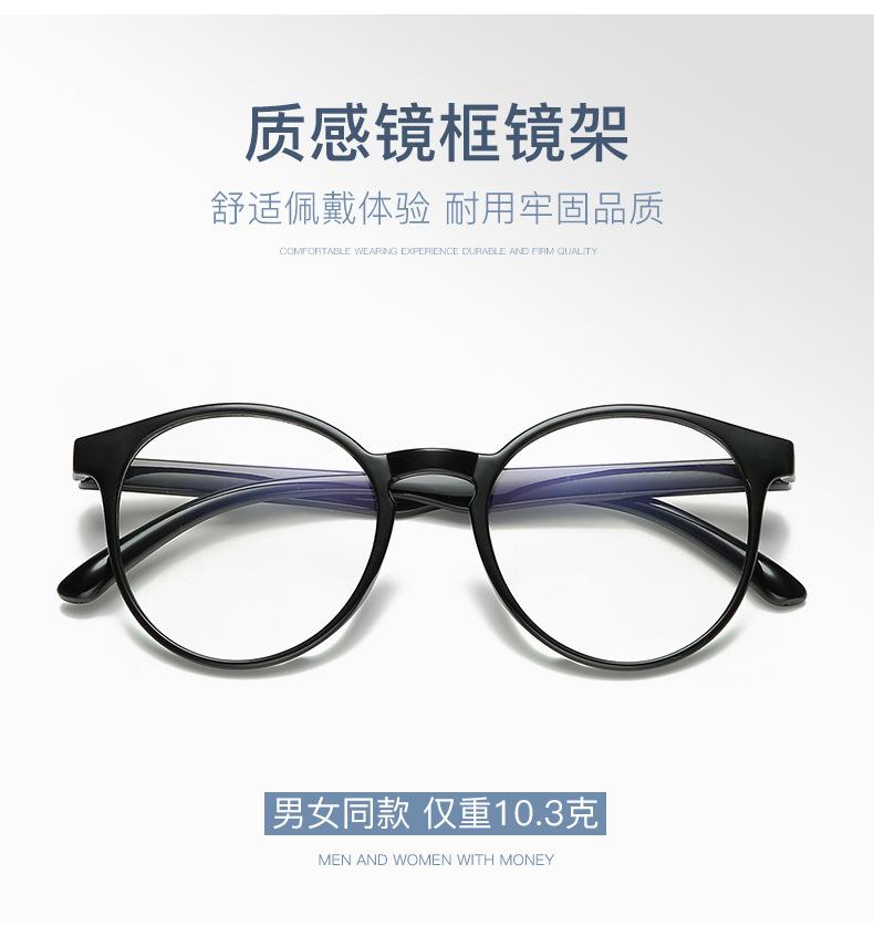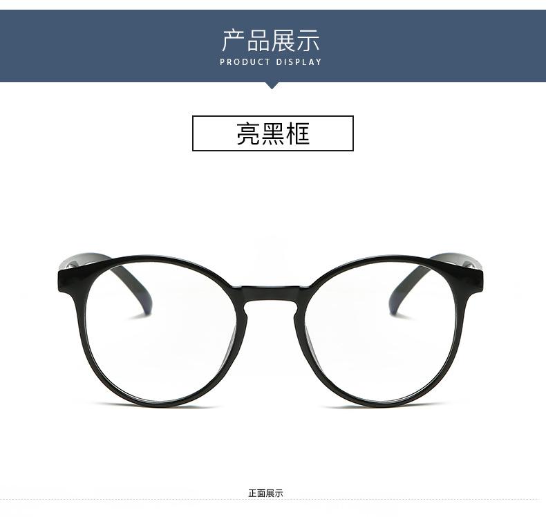 Gafas planas con protección contra la luz azul para mujer, montura negra lisa, gafas para hombre, montura redonda de moda, flecha Xiaohongshu net celebrity, mismo estilo