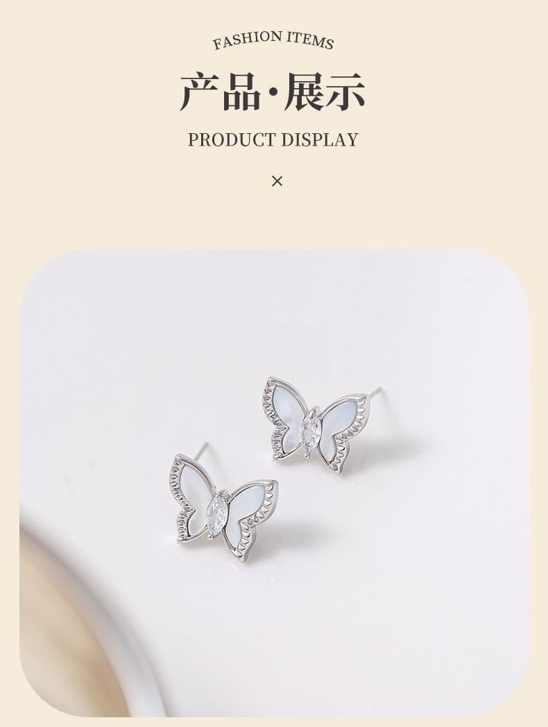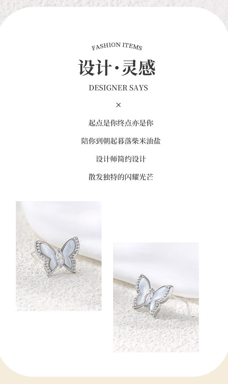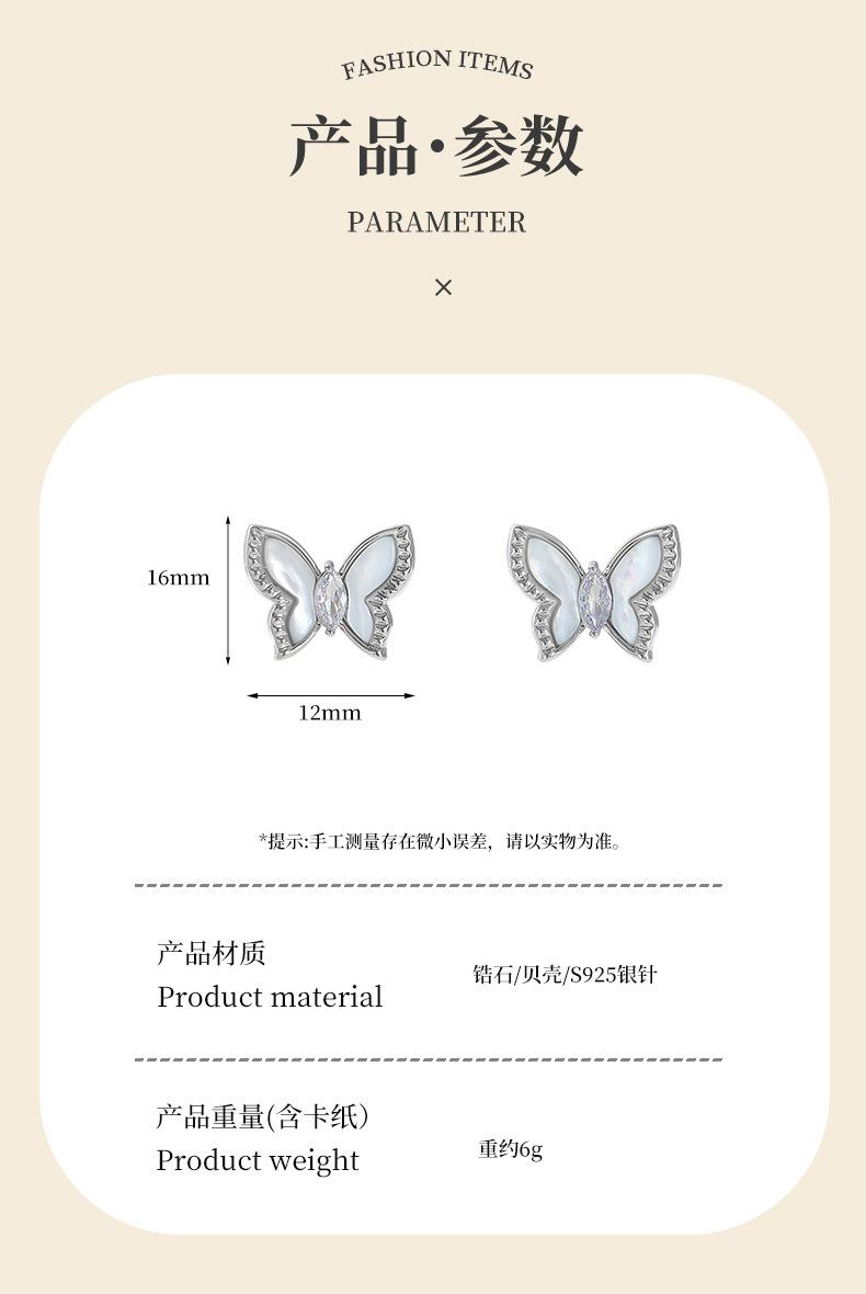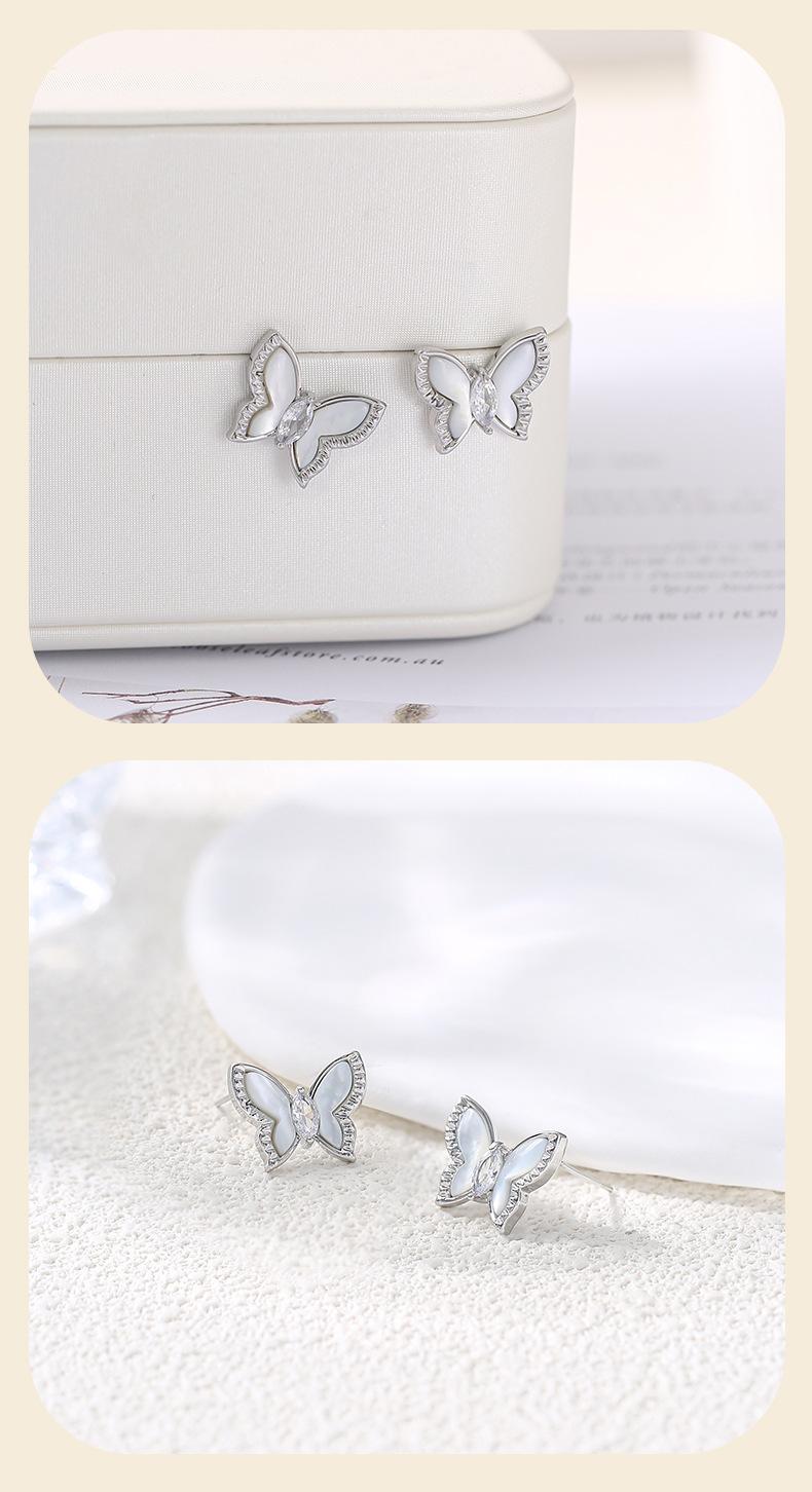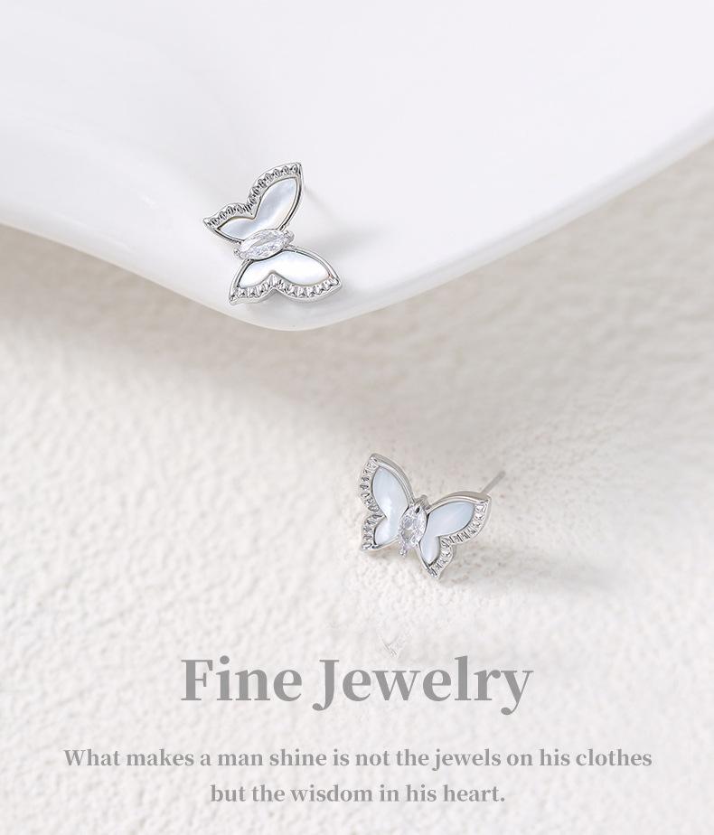 Pendientes pequeños de mariposa fresca de plata de ley 925, pendientes de concha curva blanca, pendientes de nicho de alta gama para damas, dulces, de verano