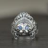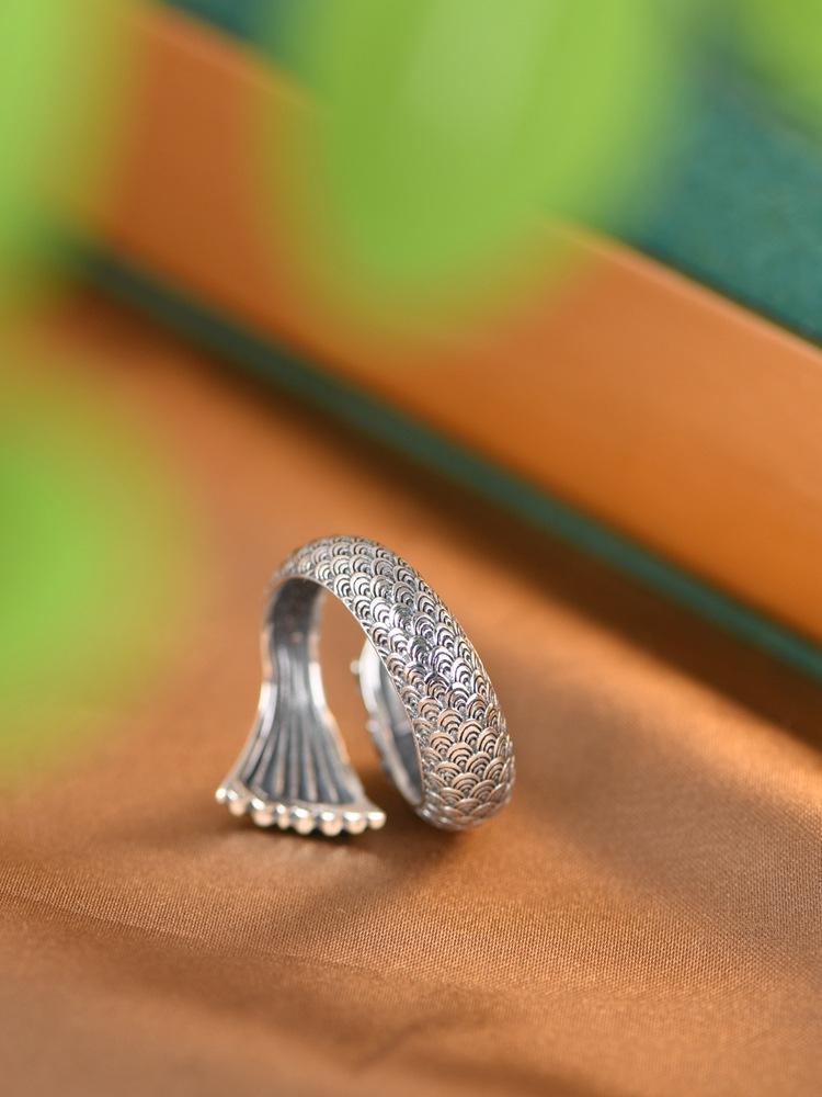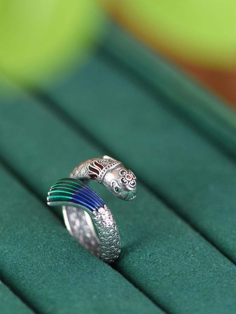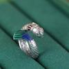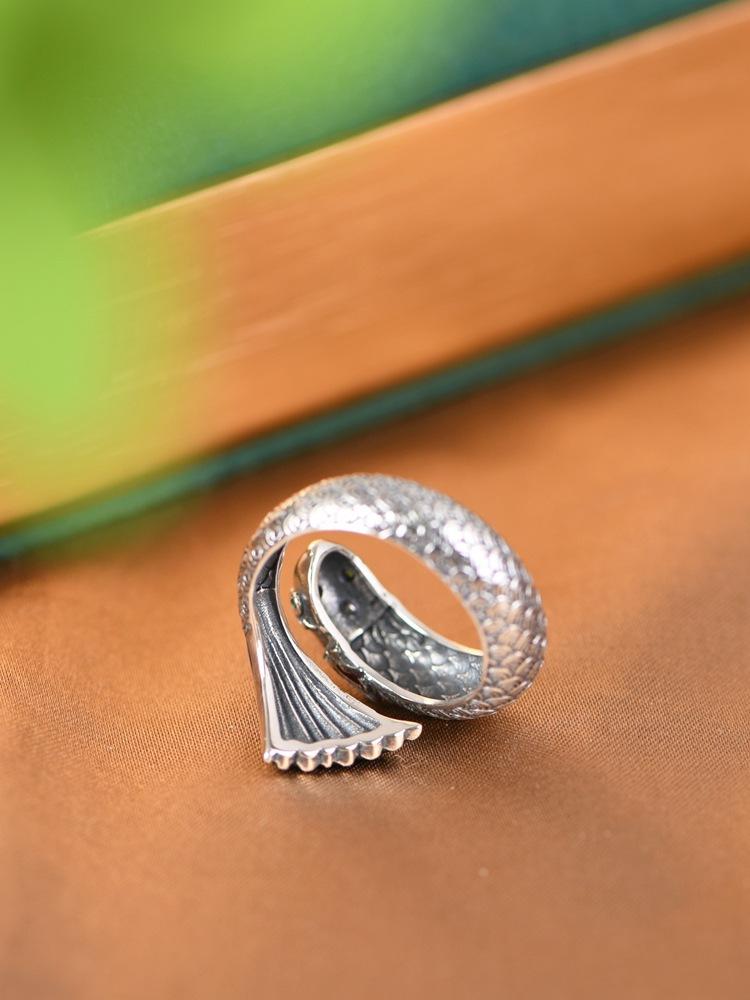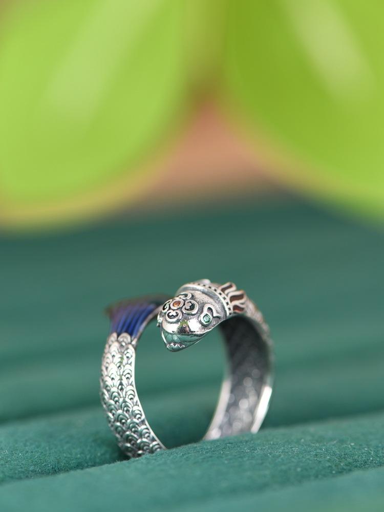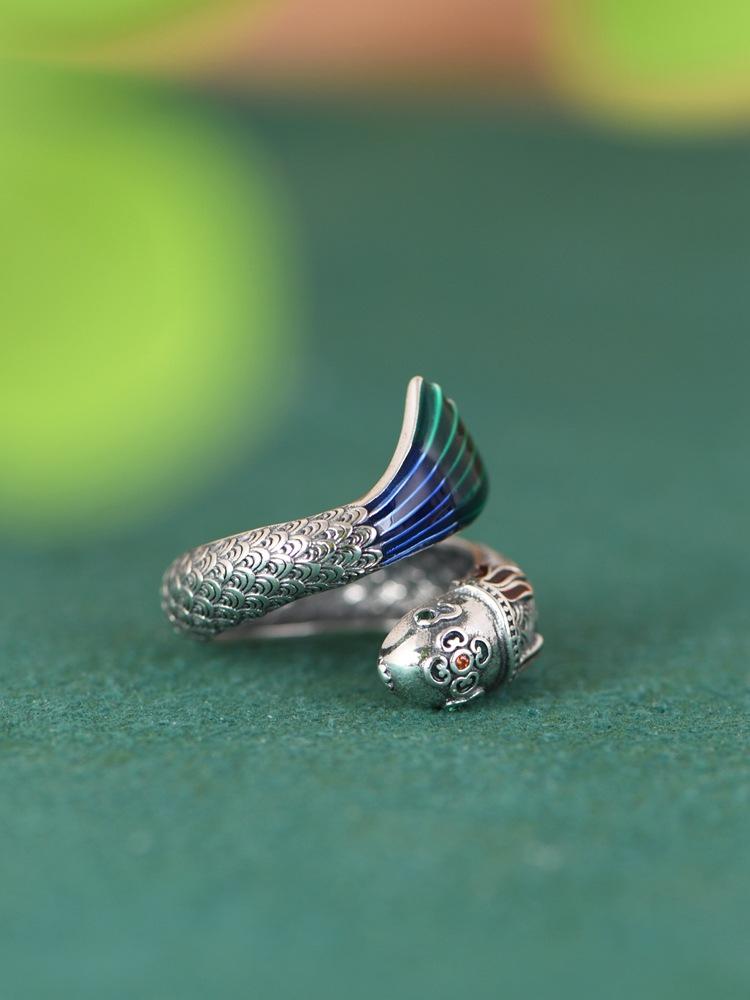 Anillo de plata S925 con diseño vintage de Koi con diseño de ciervo dorado y pez koi, anillo abierto para mujer, joyería