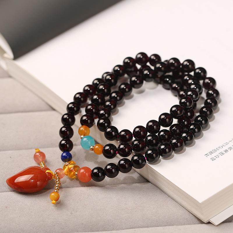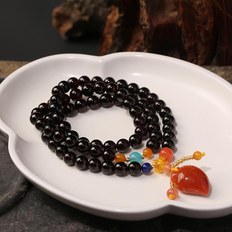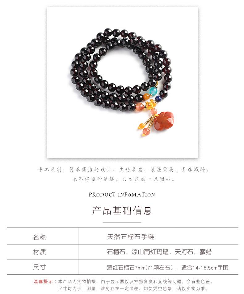 Granate burdeos 7mm (aproximadamente 71 piezas), adecuado para circunferencia de muñeca 14-16.5cm |