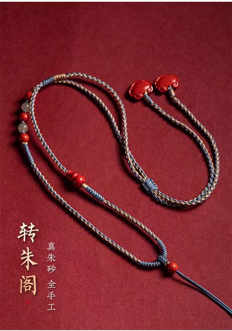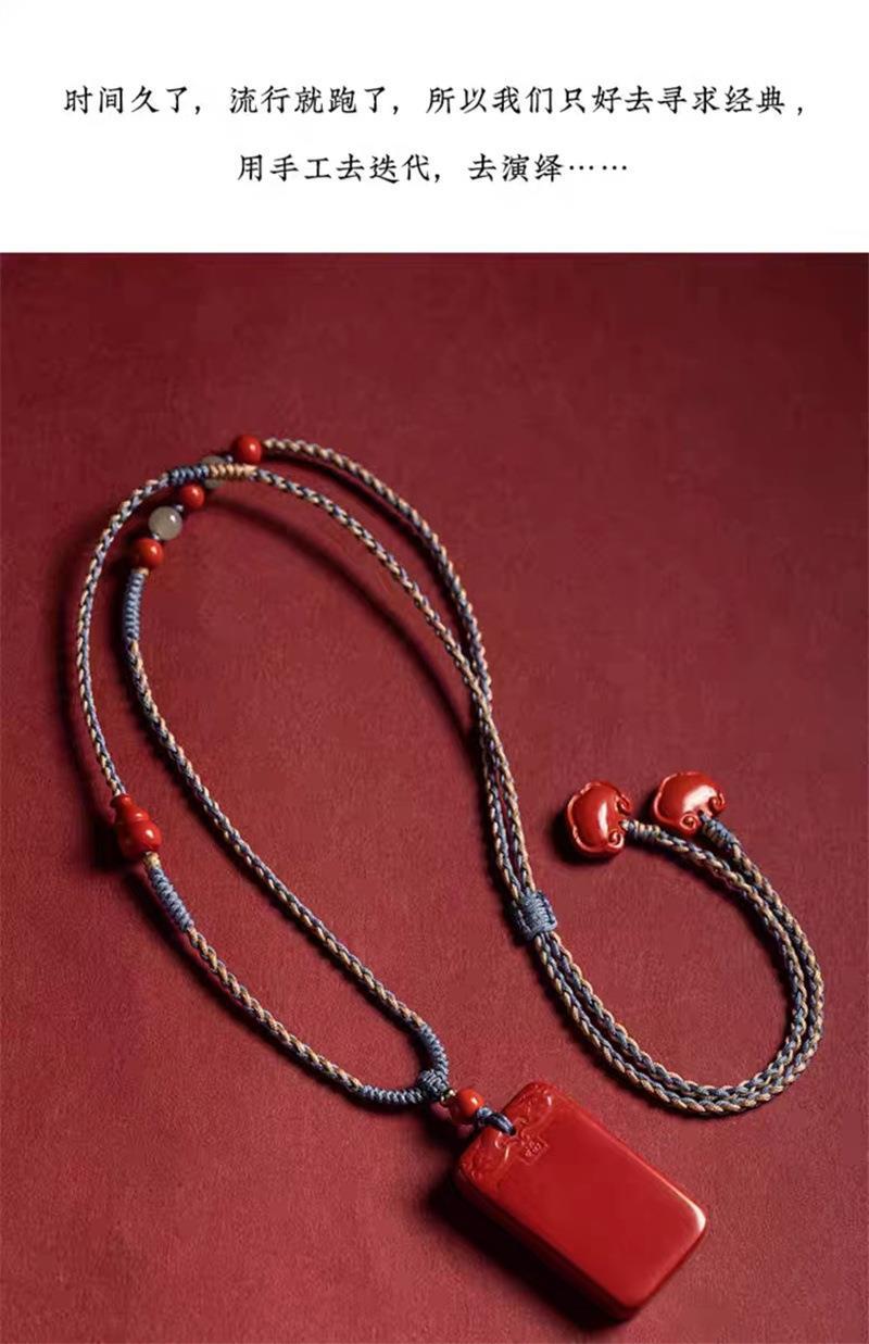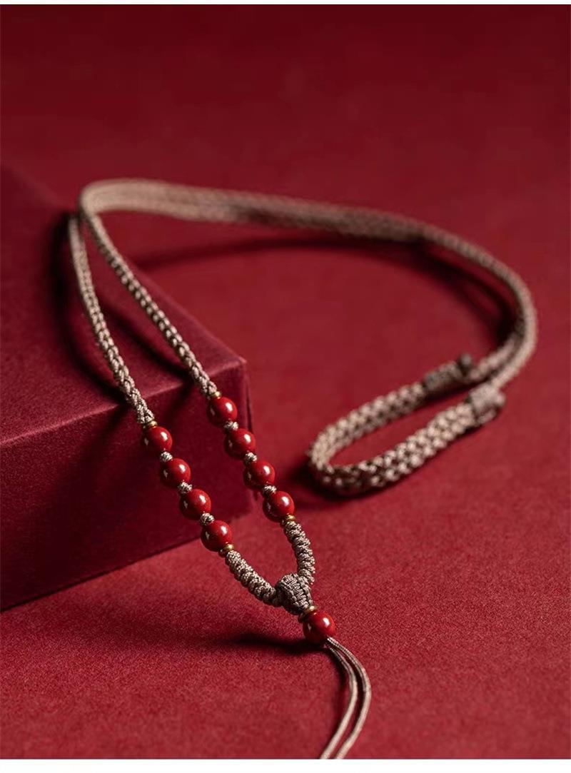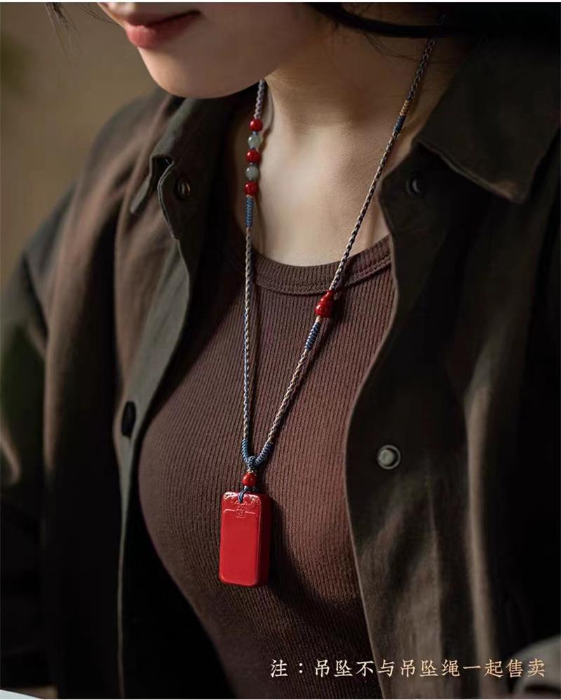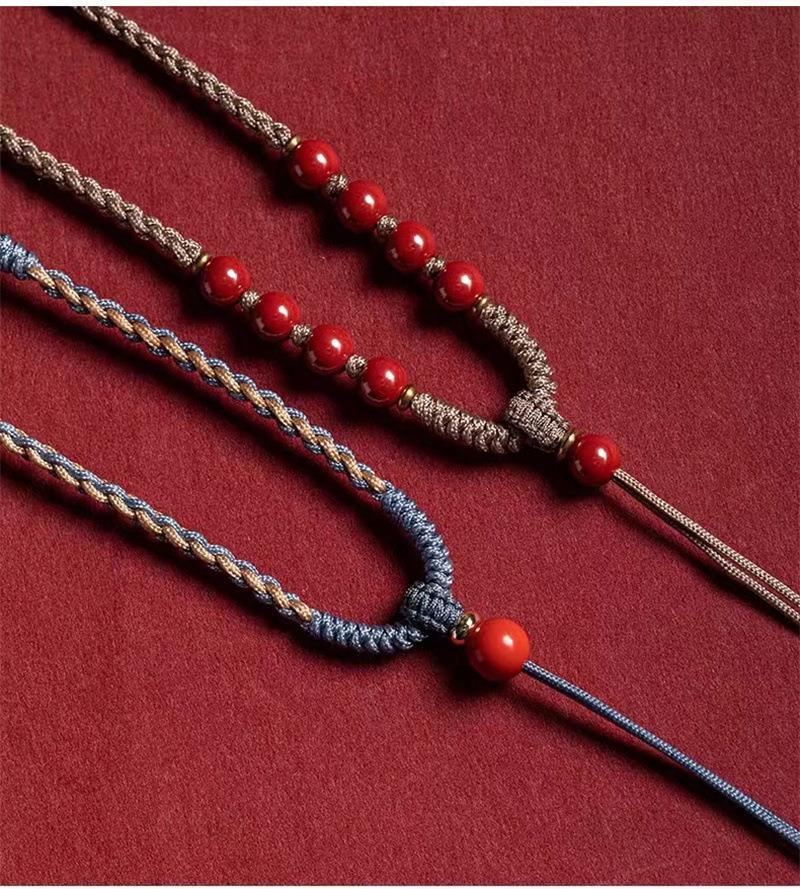 Colgante de cinabrio tejido a mano, cuerda colgante para el cuello, para hombres y mujeres, con hebilla de seguridad de buena suerte, cuerda colgante de jade Pei.