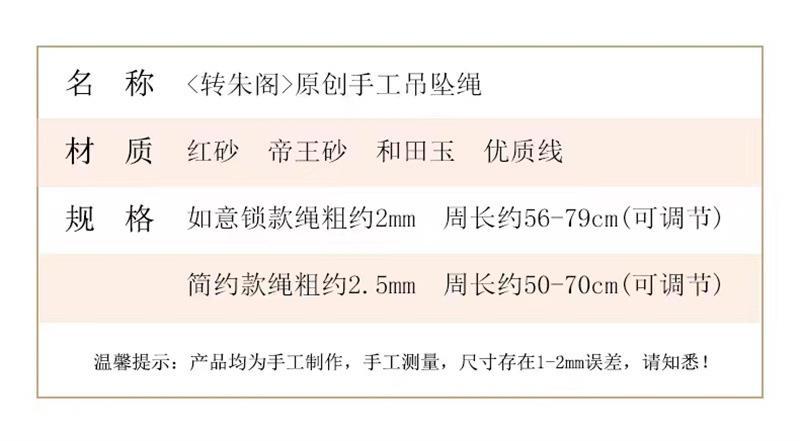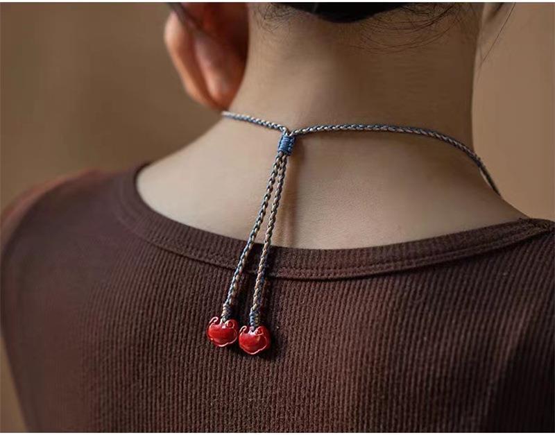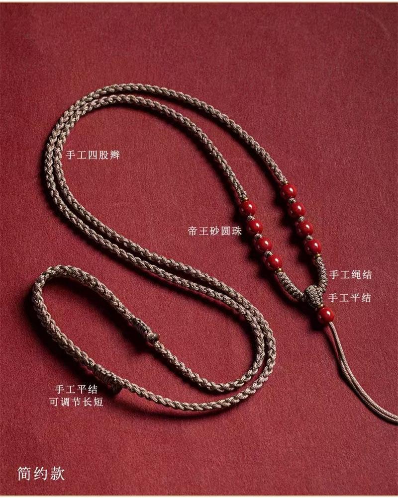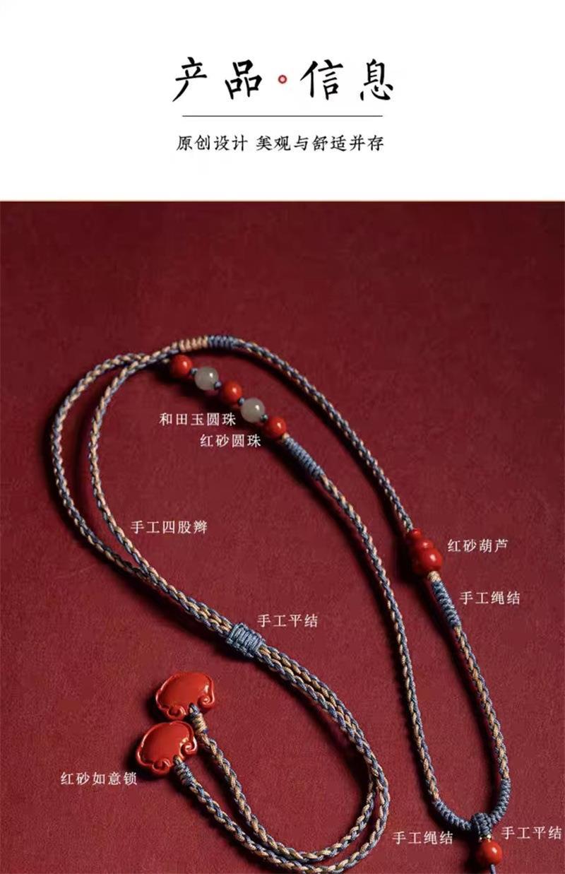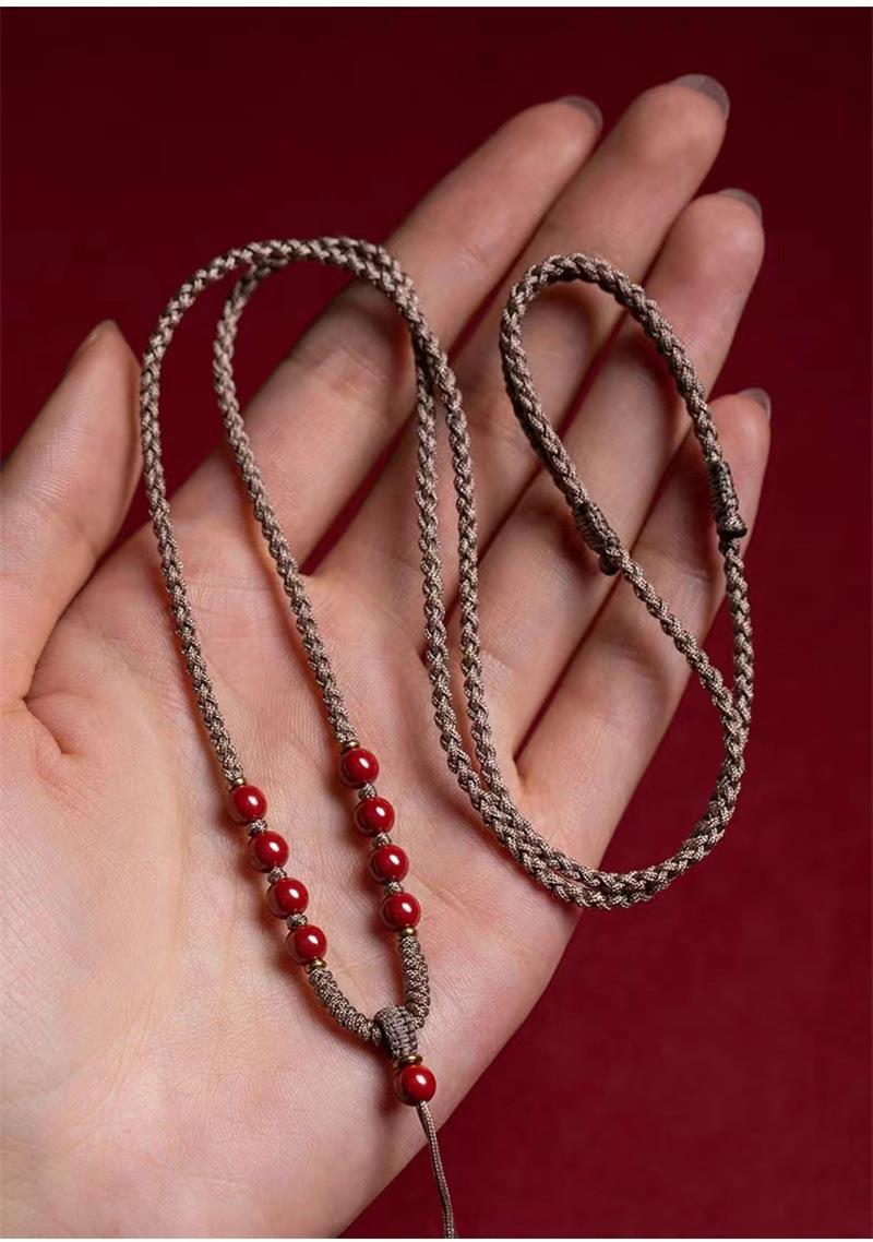 Colgante de cinabrio tejido a mano, cuerda colgante para el cuello, para hombres y mujeres, con hebilla de seguridad de buena suerte, cuerda colgante de jade Pei.