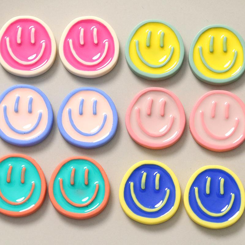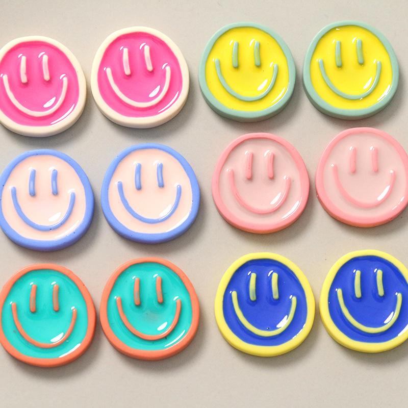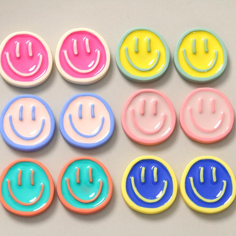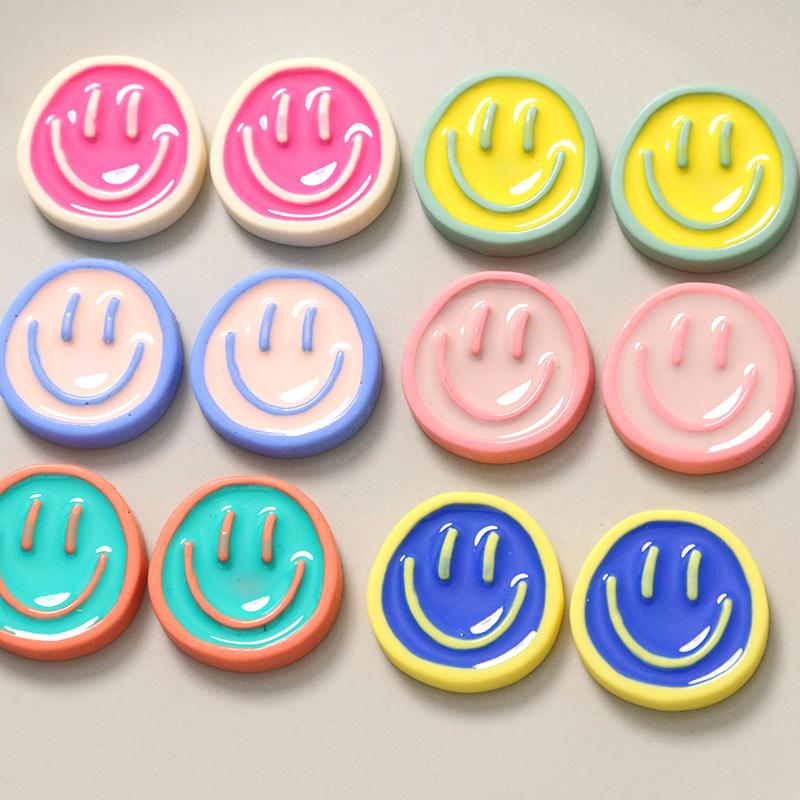 Lindos pendientes de resina con forma de emoticono de dos colores que caen al óleo, accesorios para manualidades, horquillas para el pelo, fundas para teléfono, material colgante, venta al por mayor