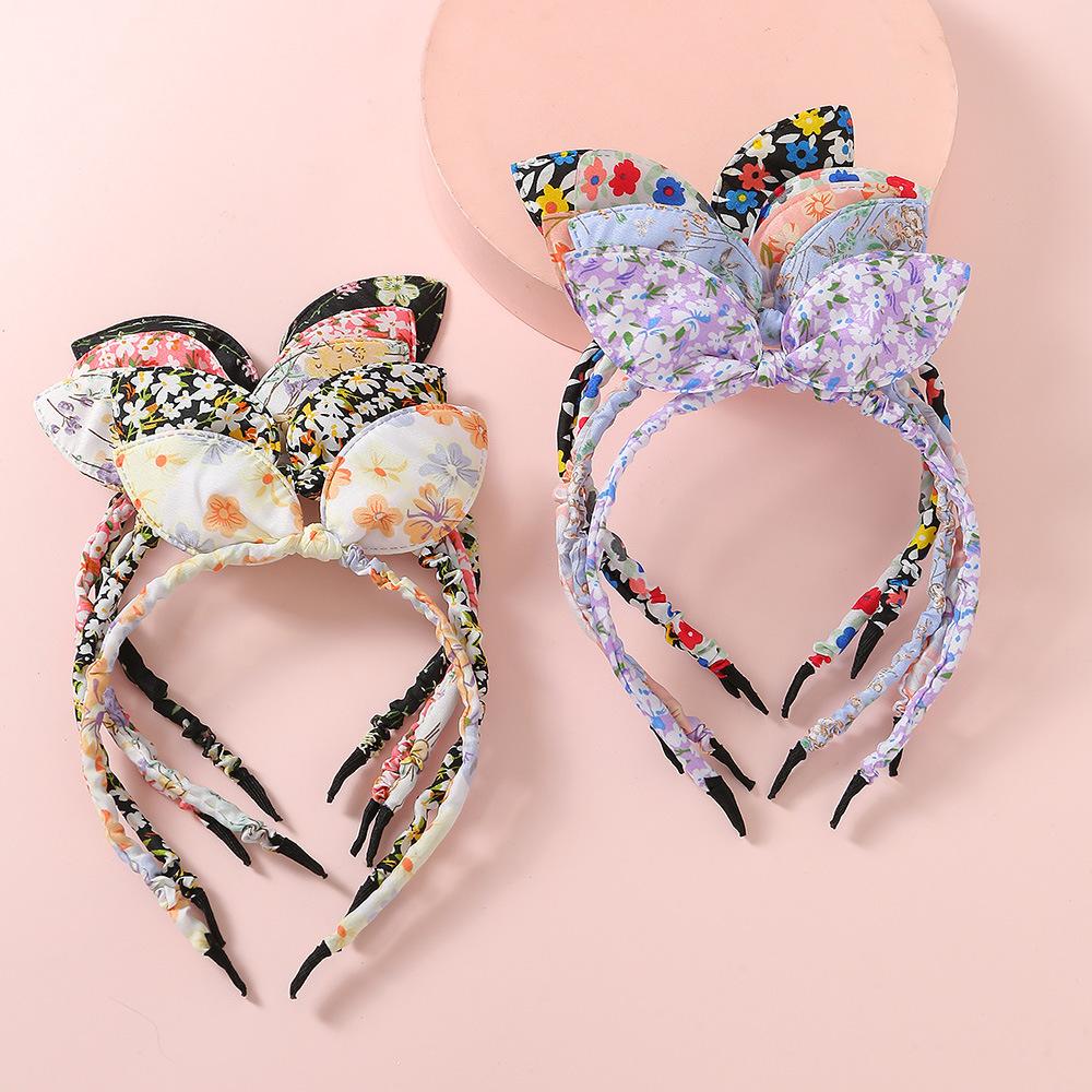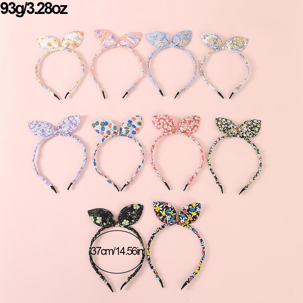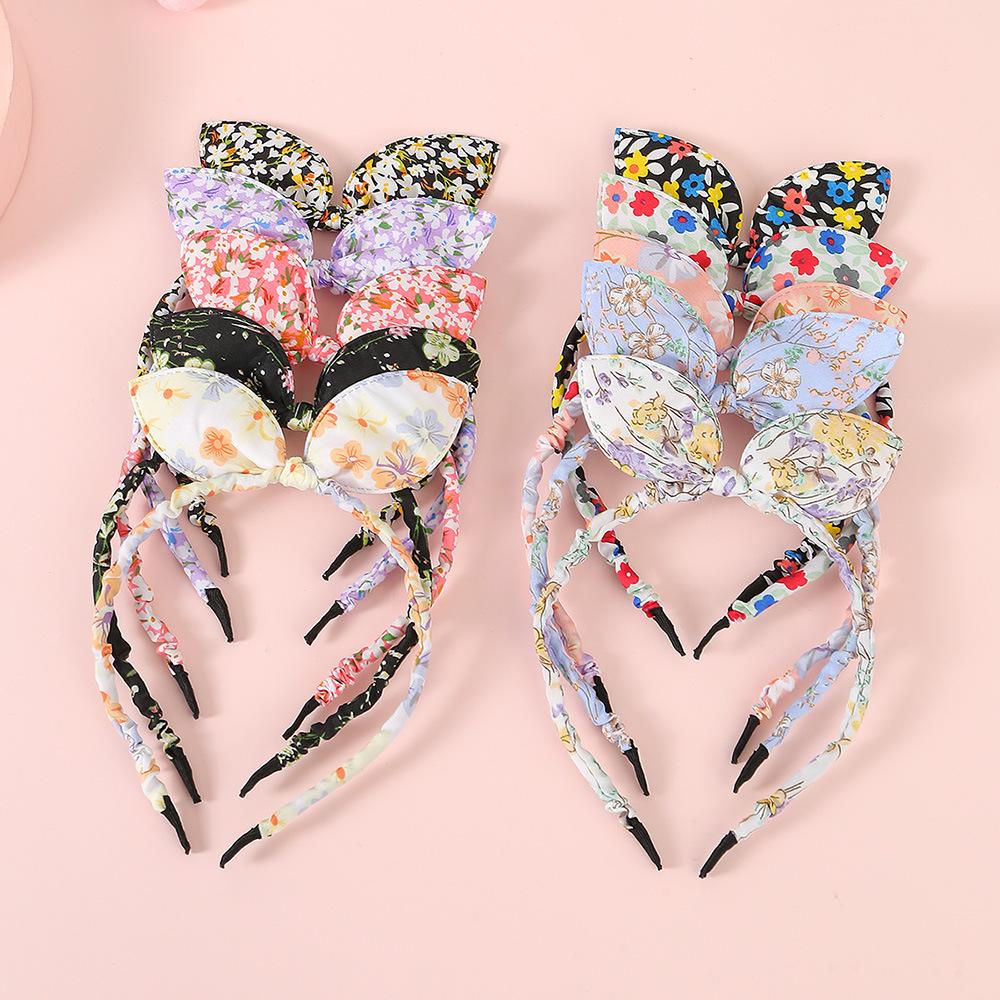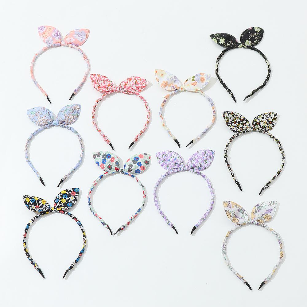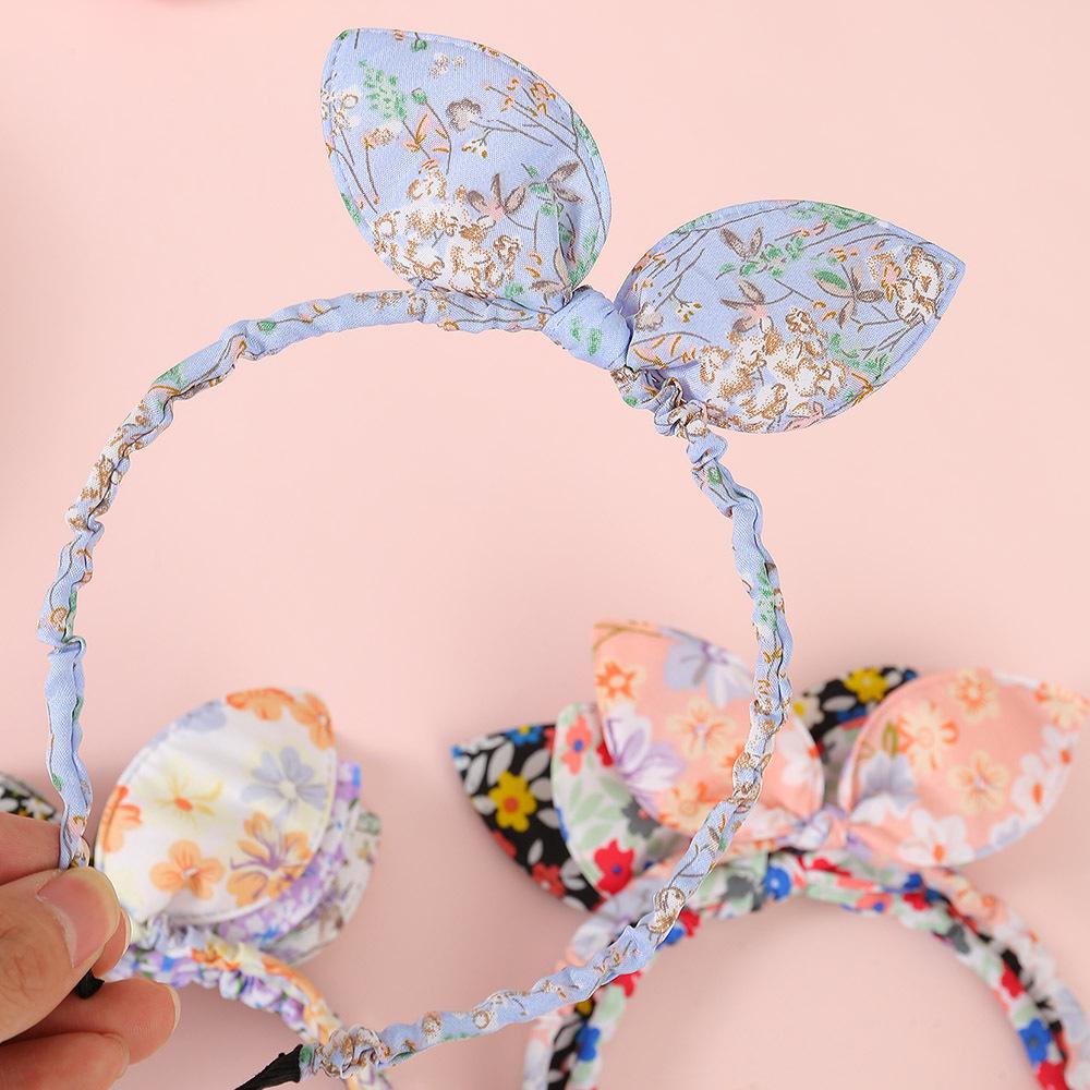 Diadema infantil transfronteriza con orejas de conejo y flores de tela, accesorio para el cabello con lazo, dulce y bonito.