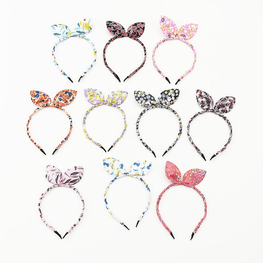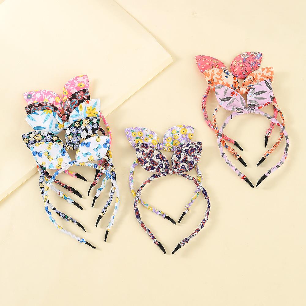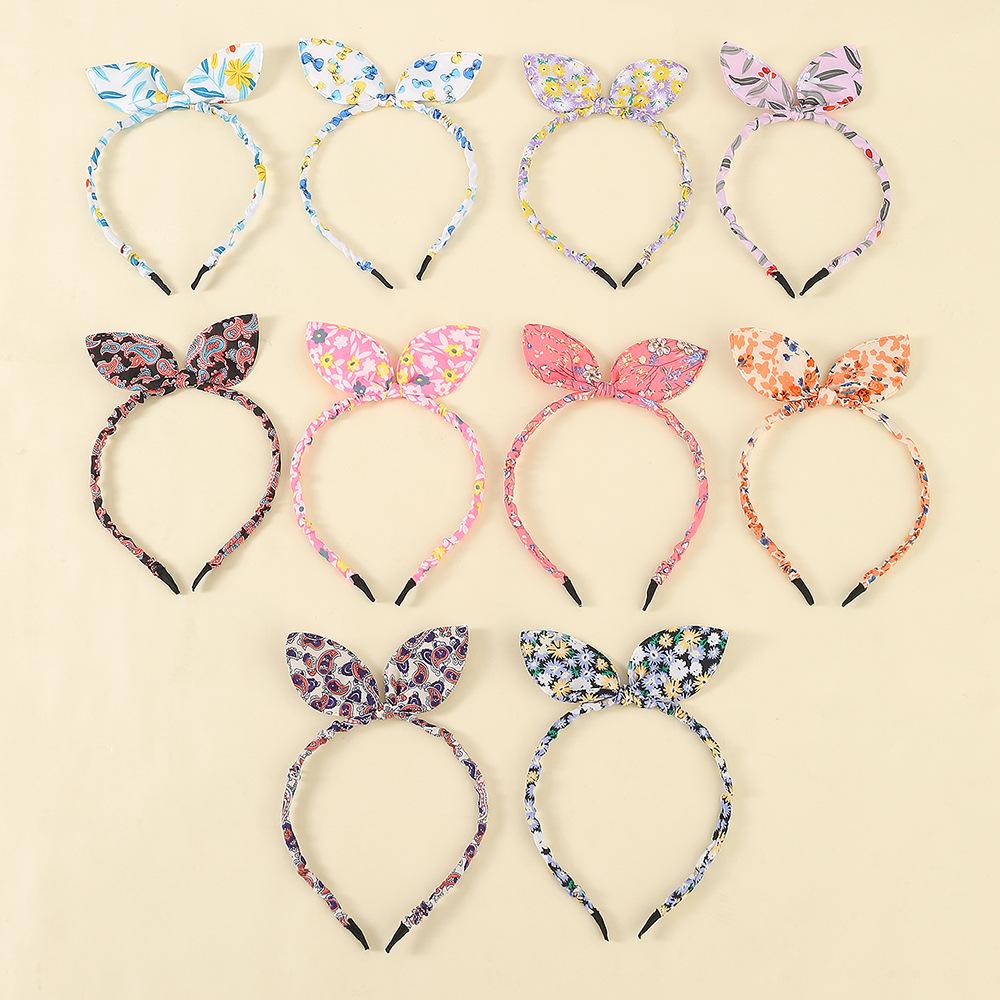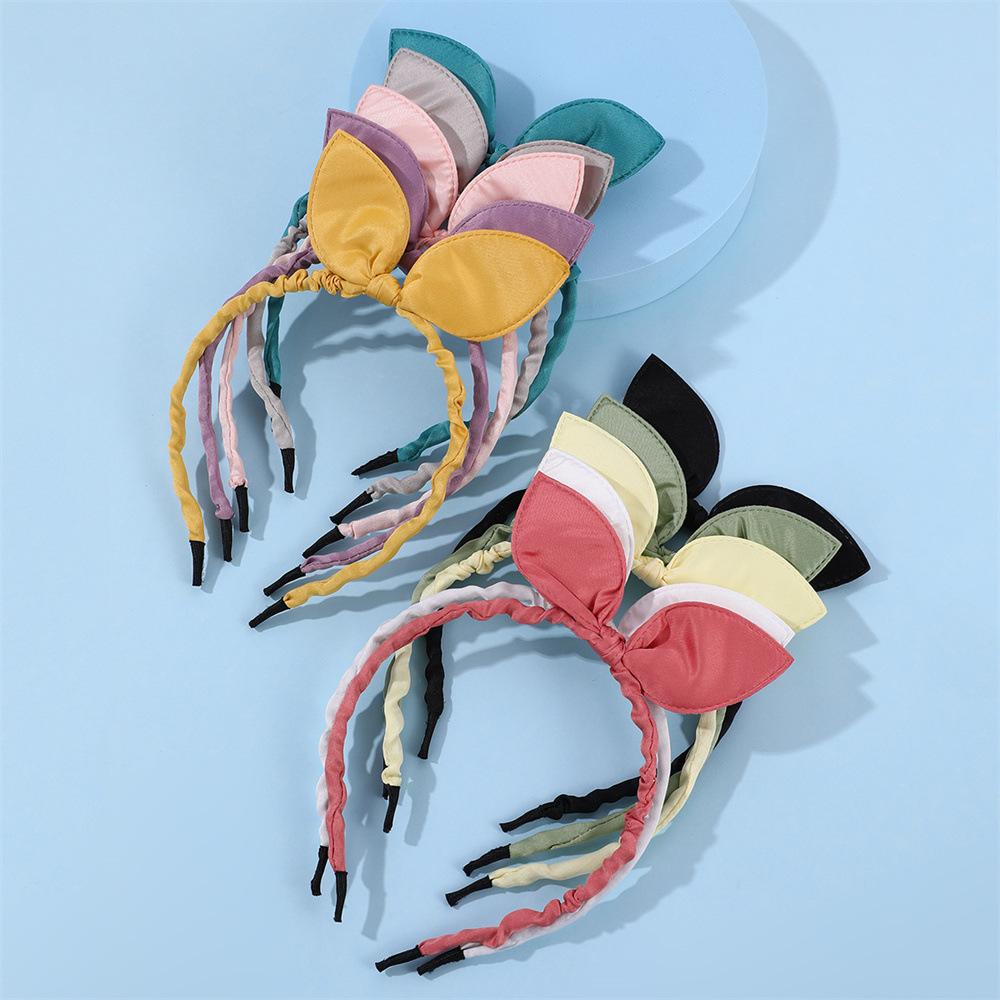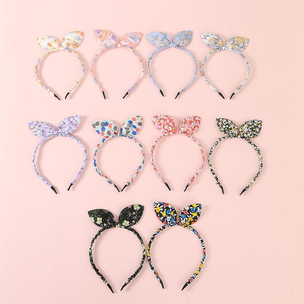 Diadema infantil transfronteriza con orejas de conejo y flores de tela, accesorio para el cabello con lazo, dulce y bonito.