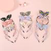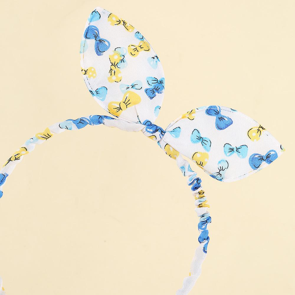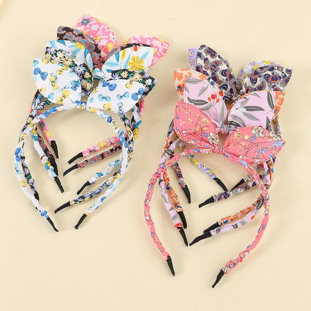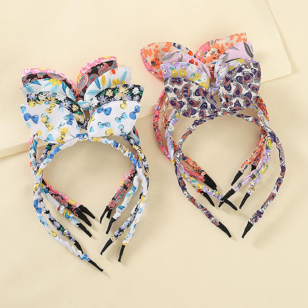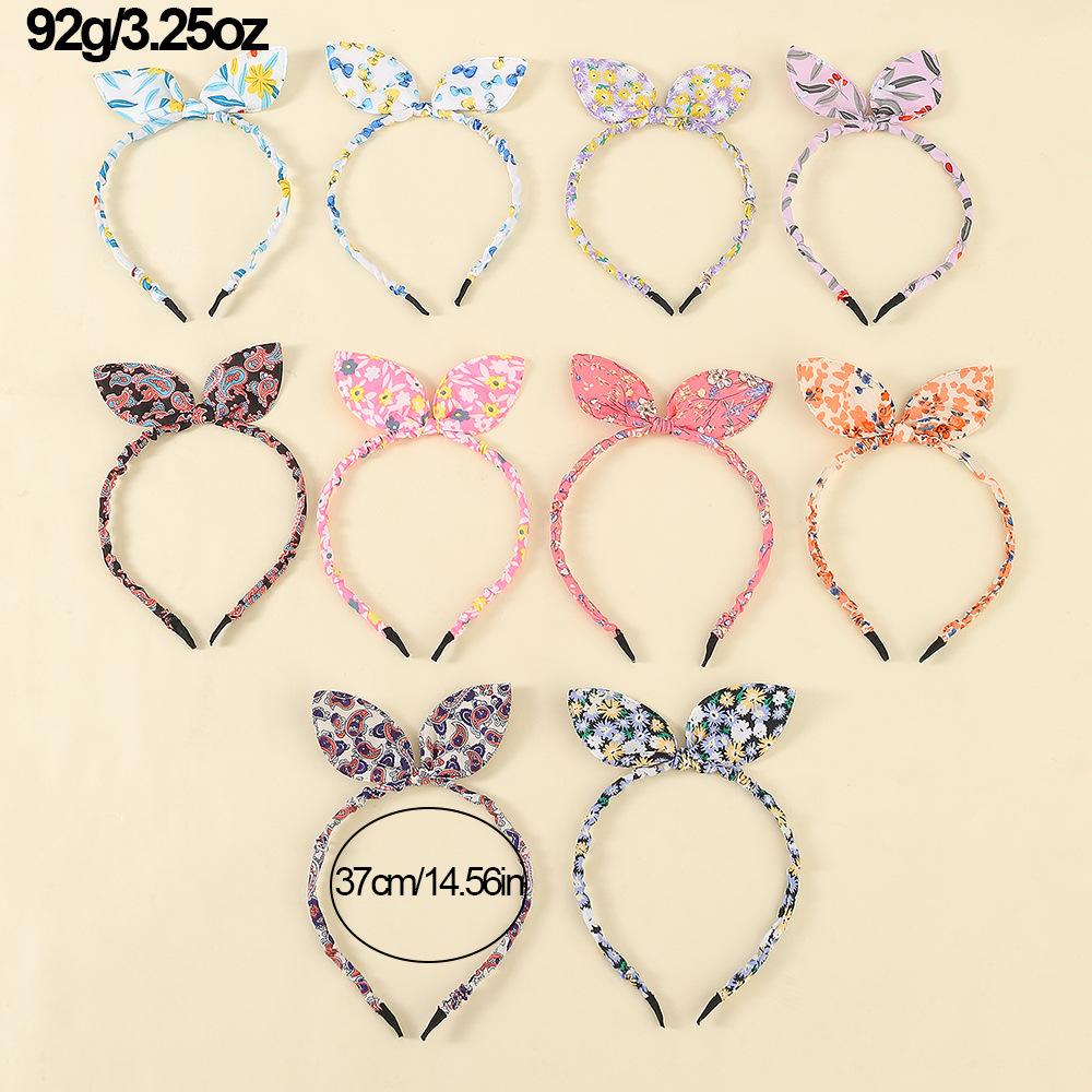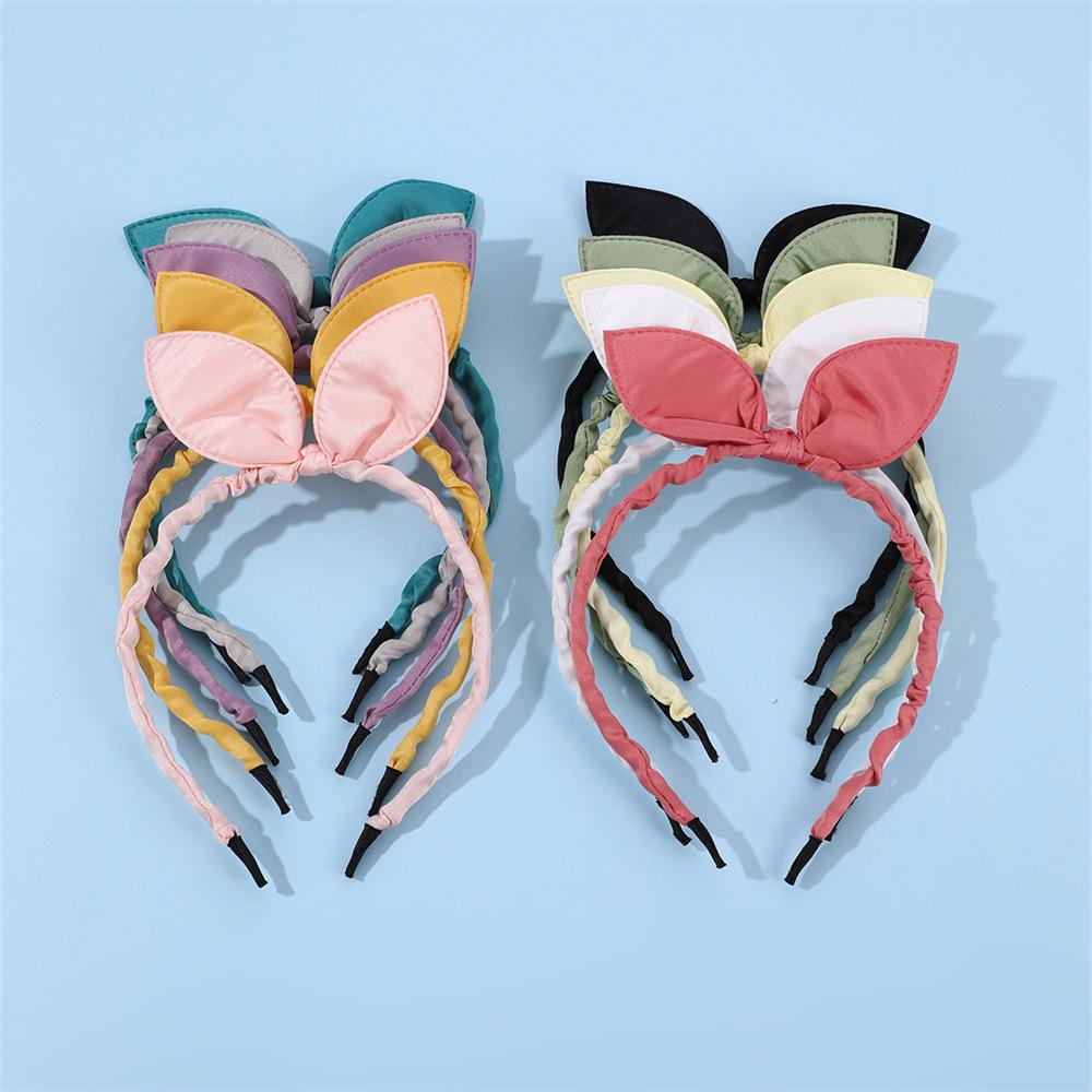 Diadema infantil transfronteriza con orejas de conejo y flores de tela, accesorio para el cabello con lazo, dulce y bonito.