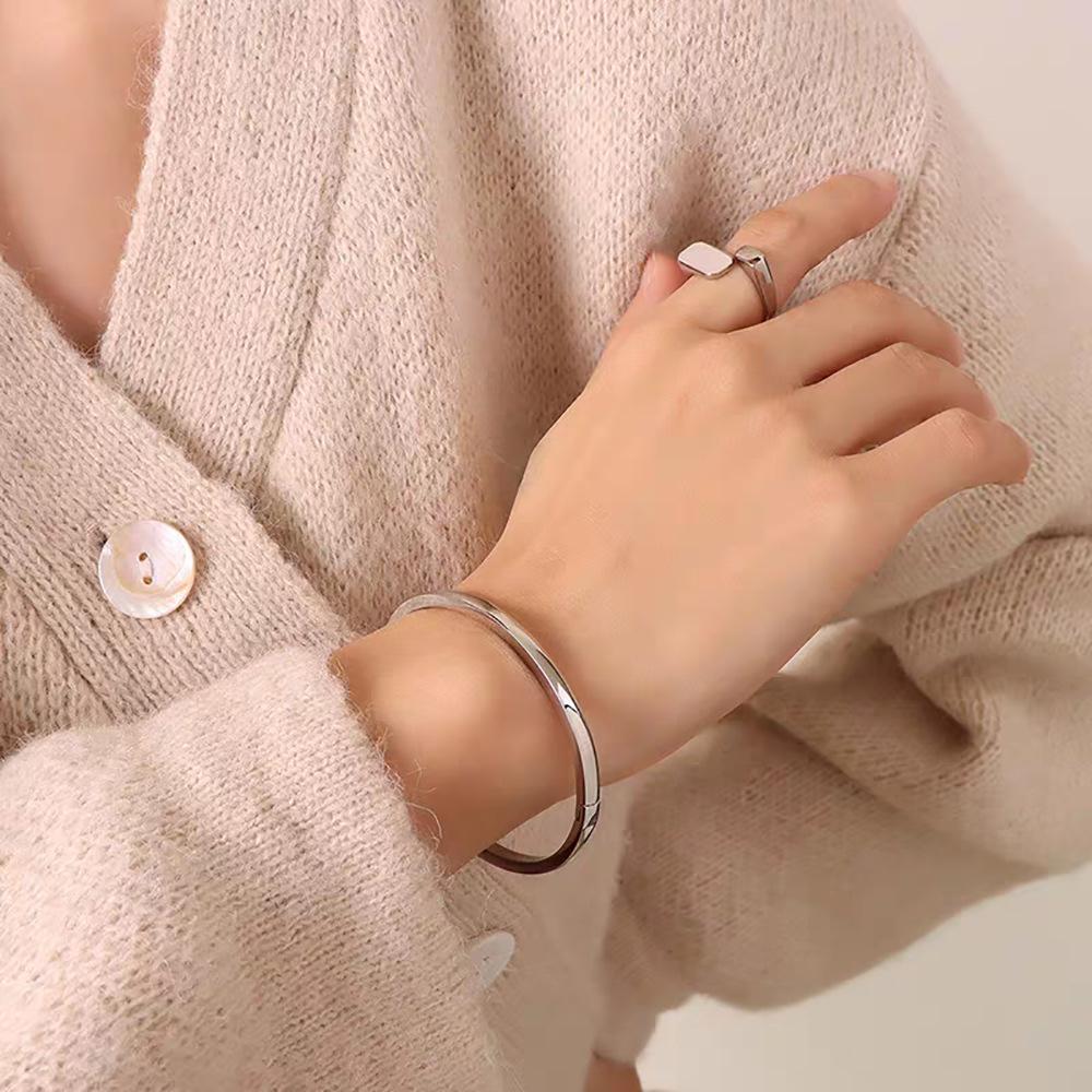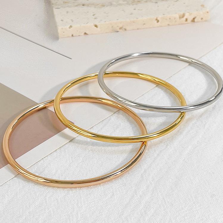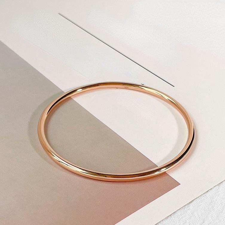 Pulsera de círculo de acero de titanio con personalidad europea y americana, acero chapado en oro rosa, pulsera sencilla para damas, pulsera de moda al por mayor