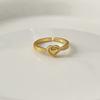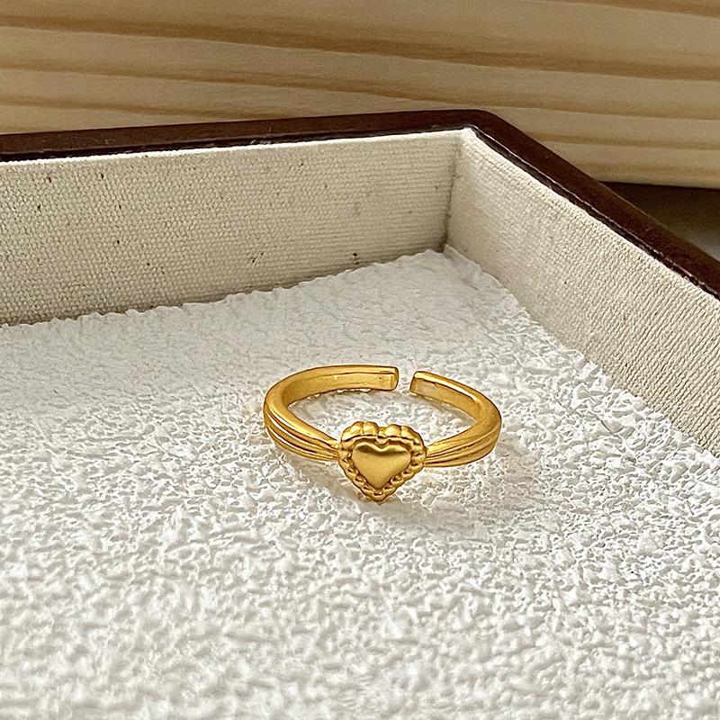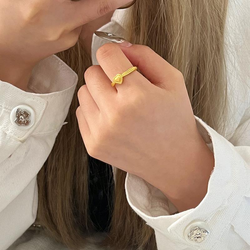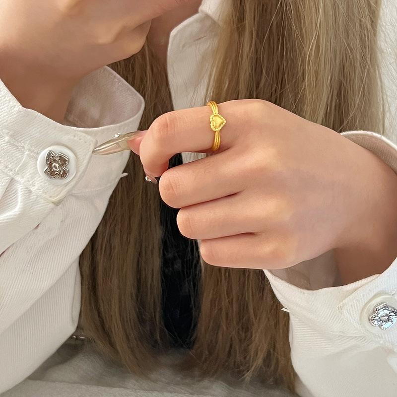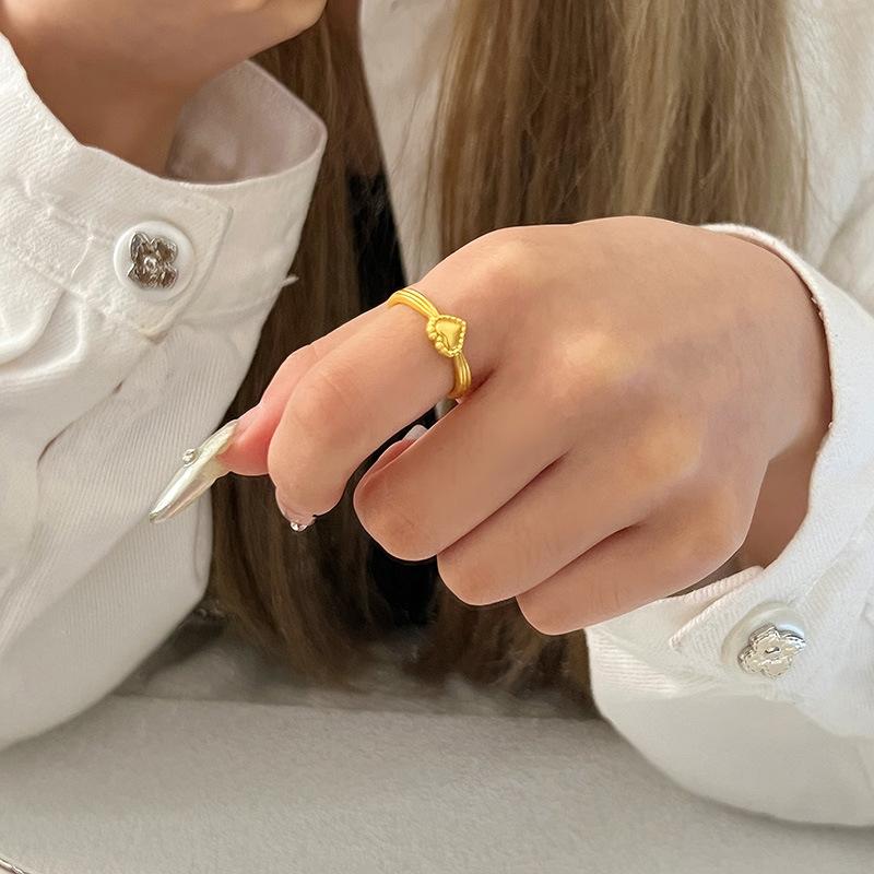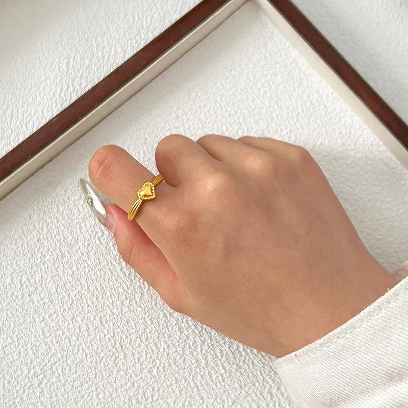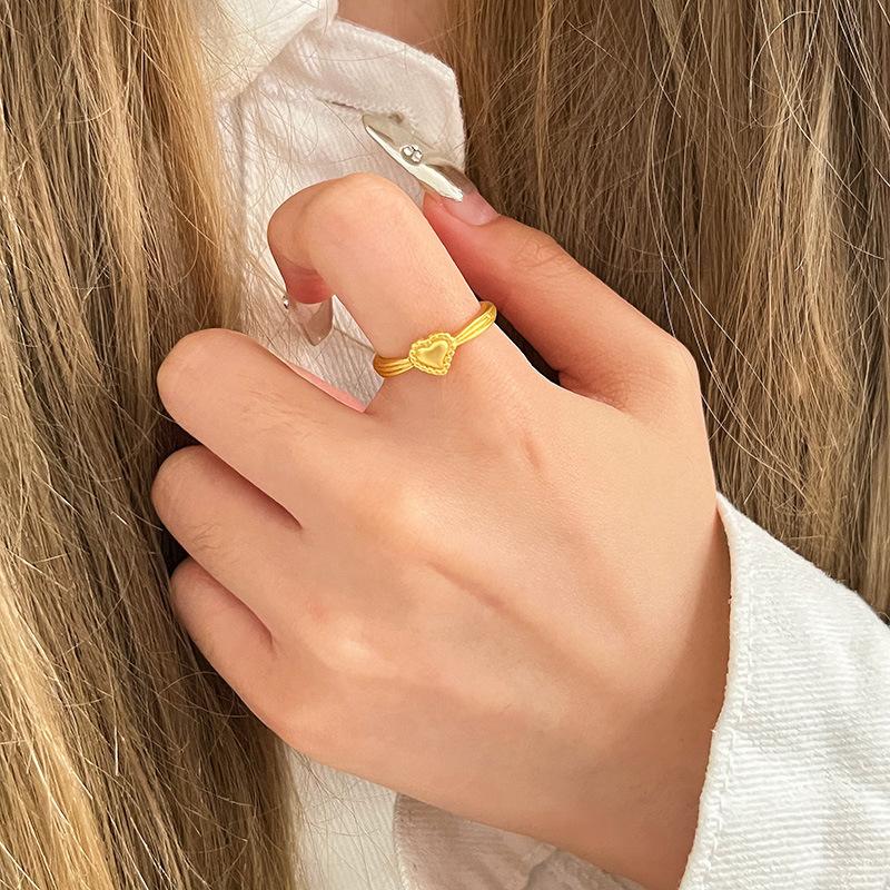 Anillo de amor para mujer, anillo verde de nicho, de alto nivel, sencillo, combinable, dorado, con apertura, ajustable, en forma de corazón, elegante anillo para dedo.