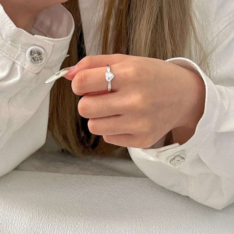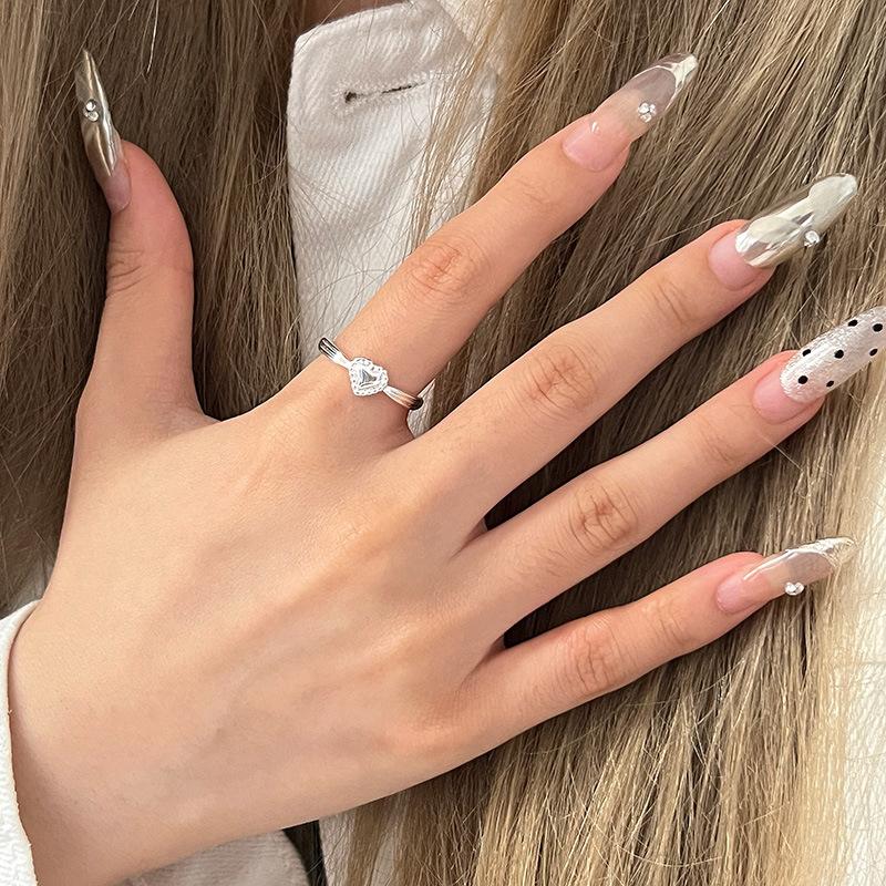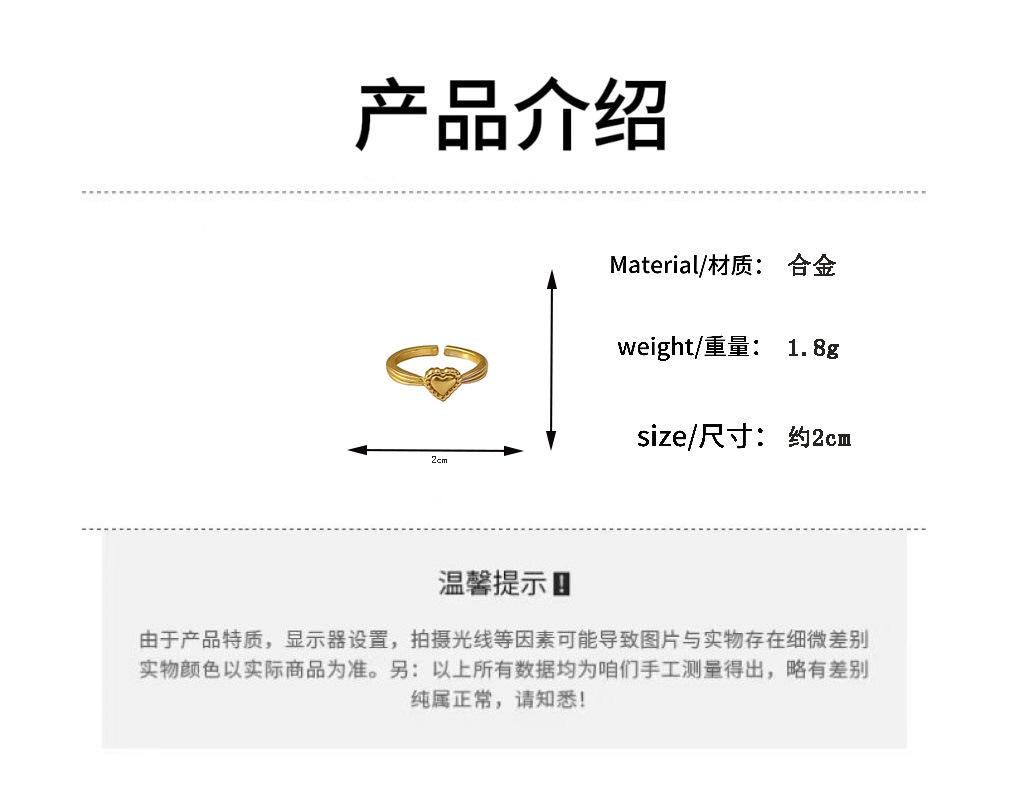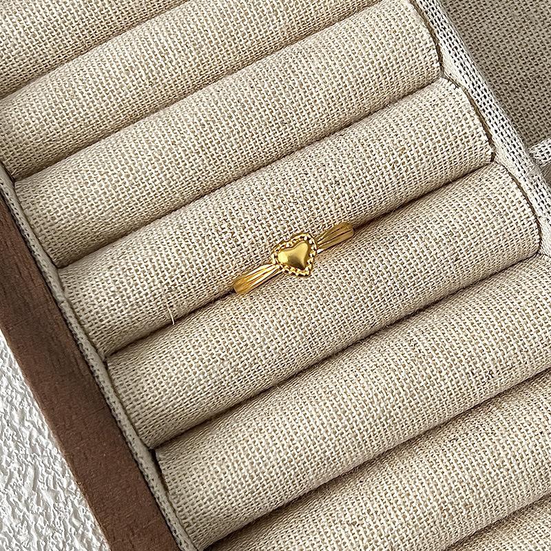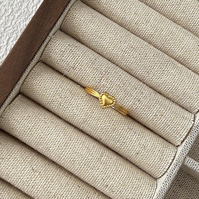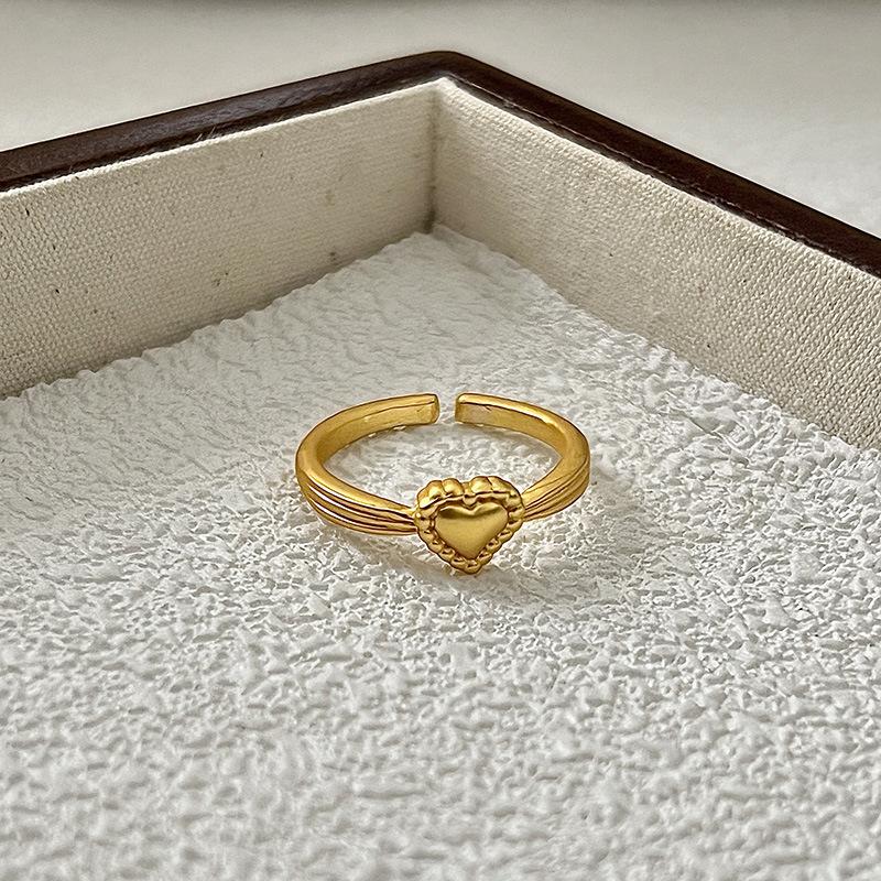 Anillo de amor para mujer, anillo verde de nicho, de alto nivel, sencillo, combinable, dorado, con apertura, ajustable, en forma de corazón, elegante anillo para dedo.