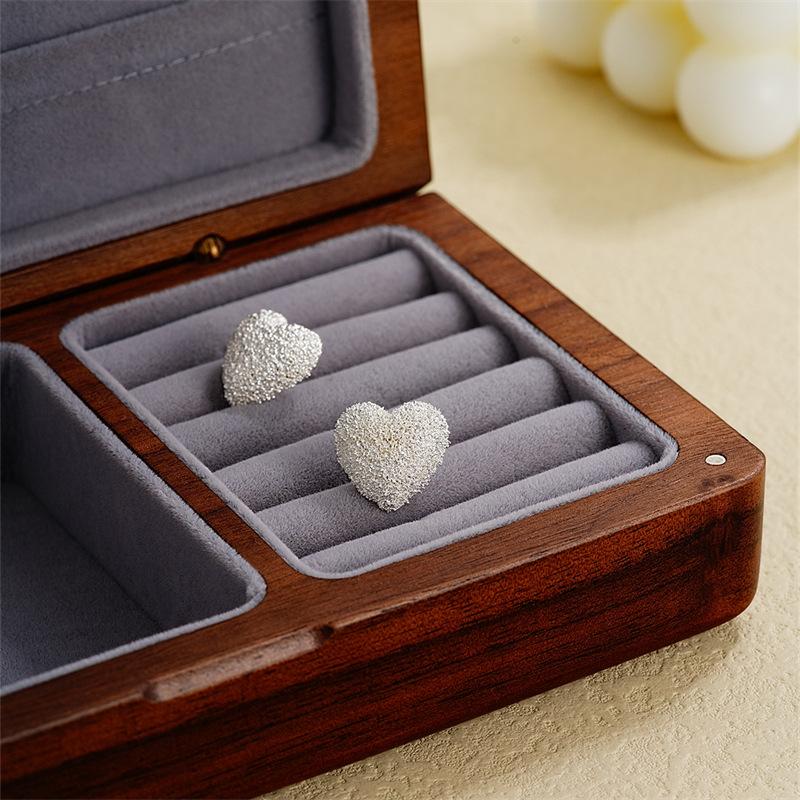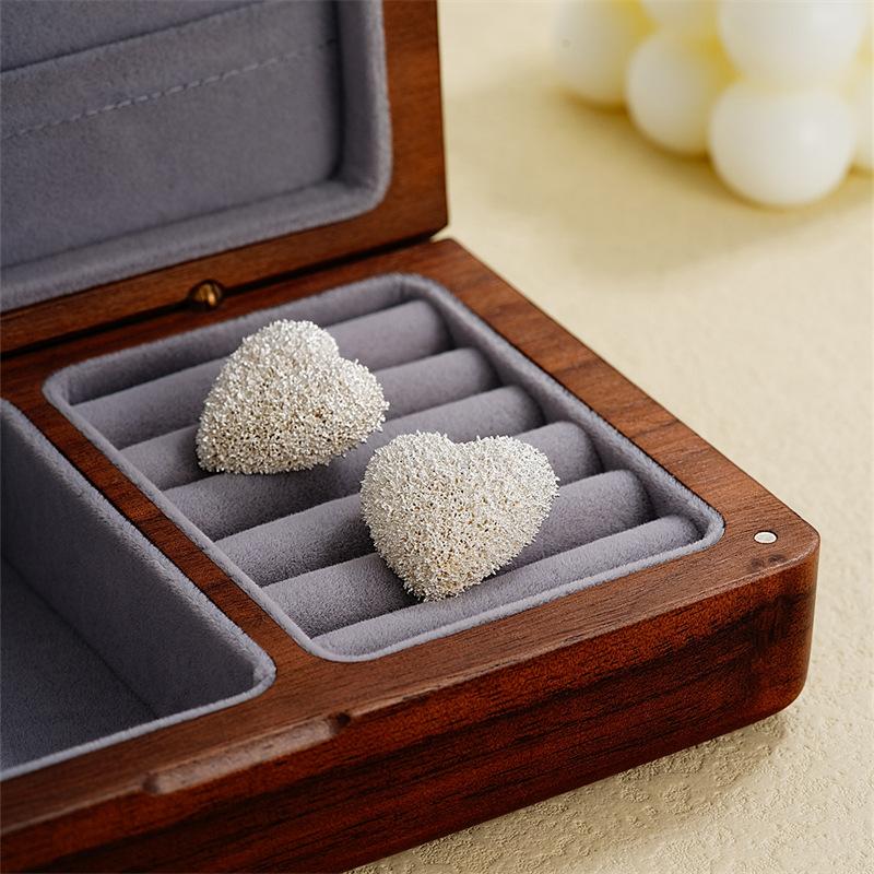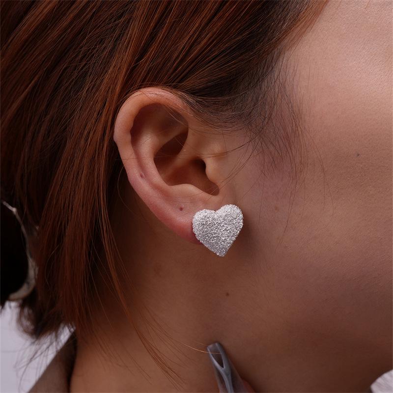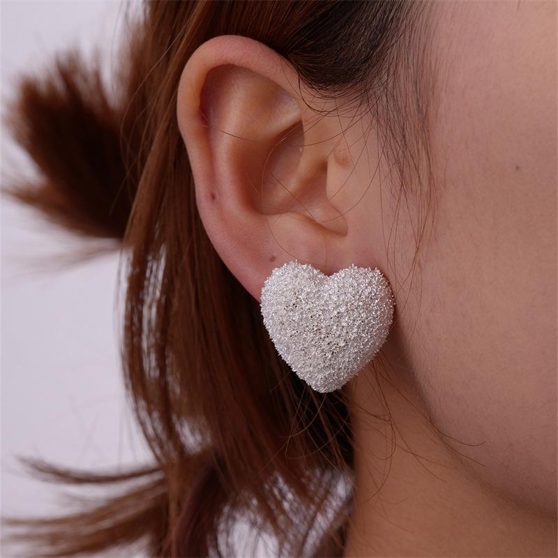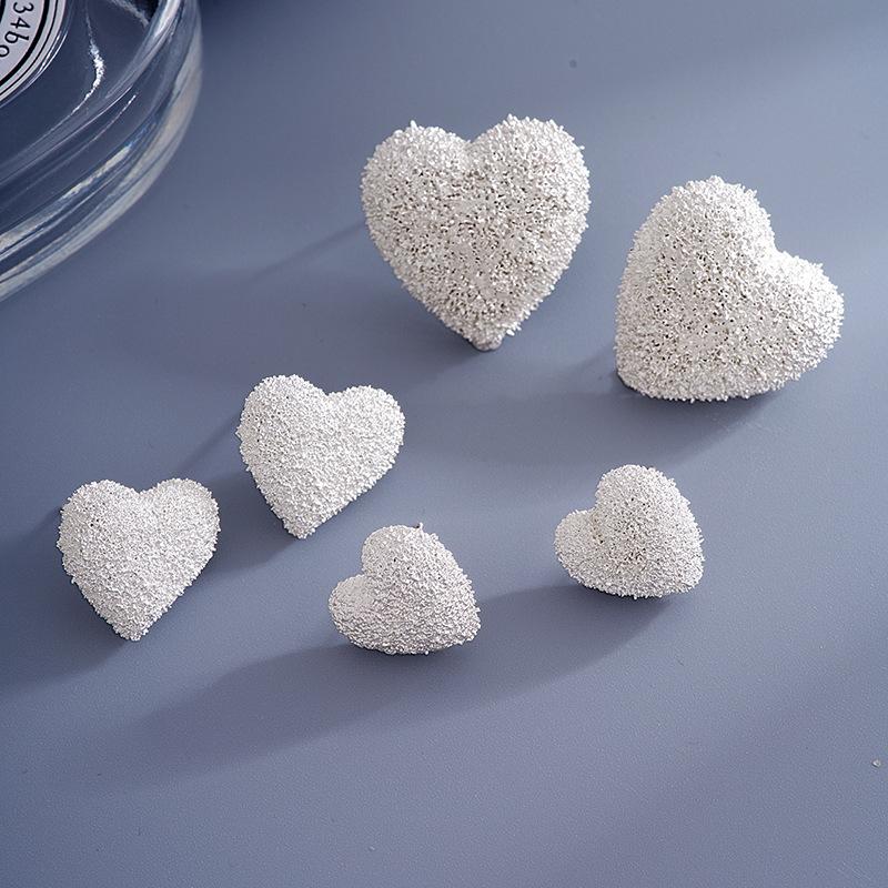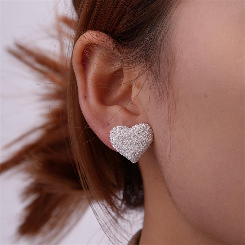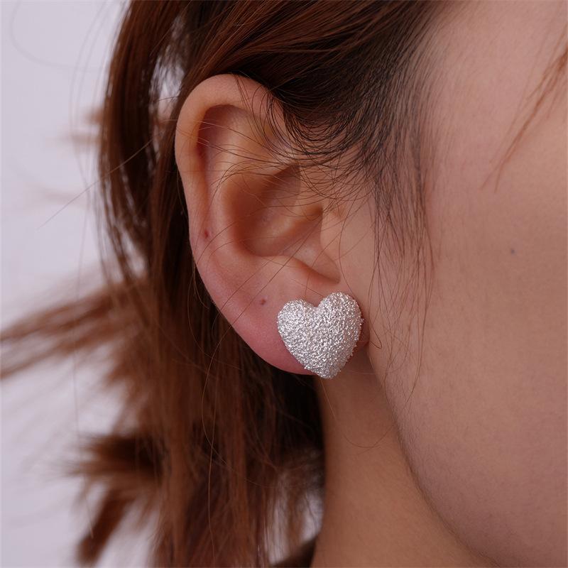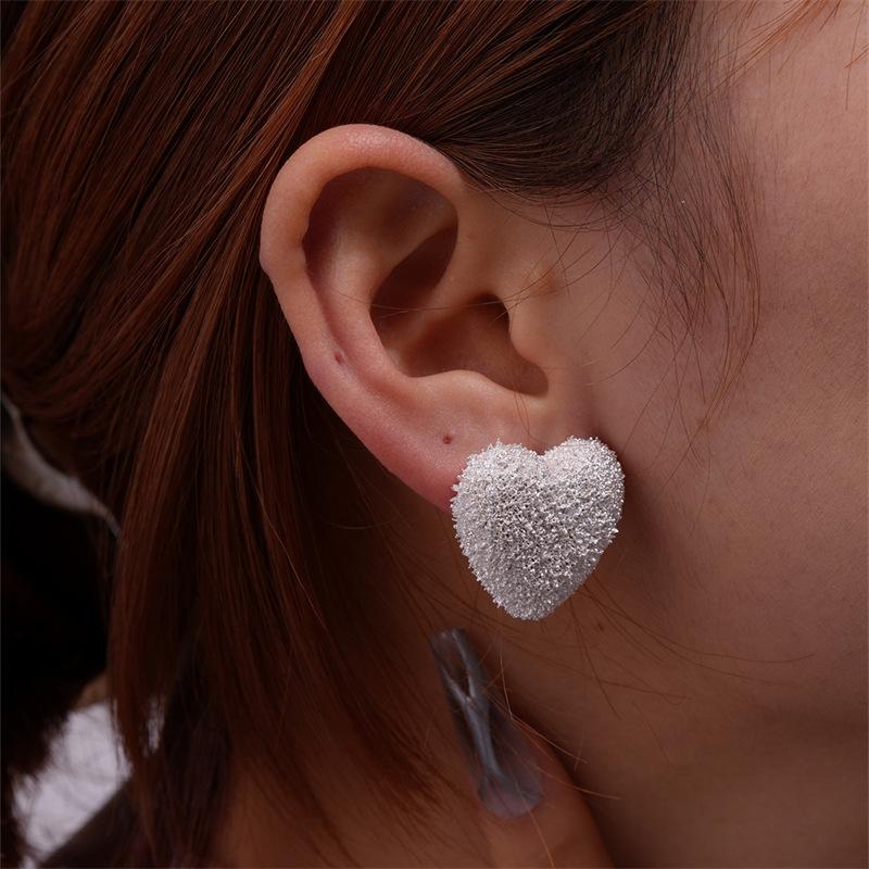 Pendientes de botón de plata con forma de corazón esmerilado de venta caliente transfronteriza para mujer, pendientes retro de moda de alta calidad que combinan con todo, pendientes al por mayor